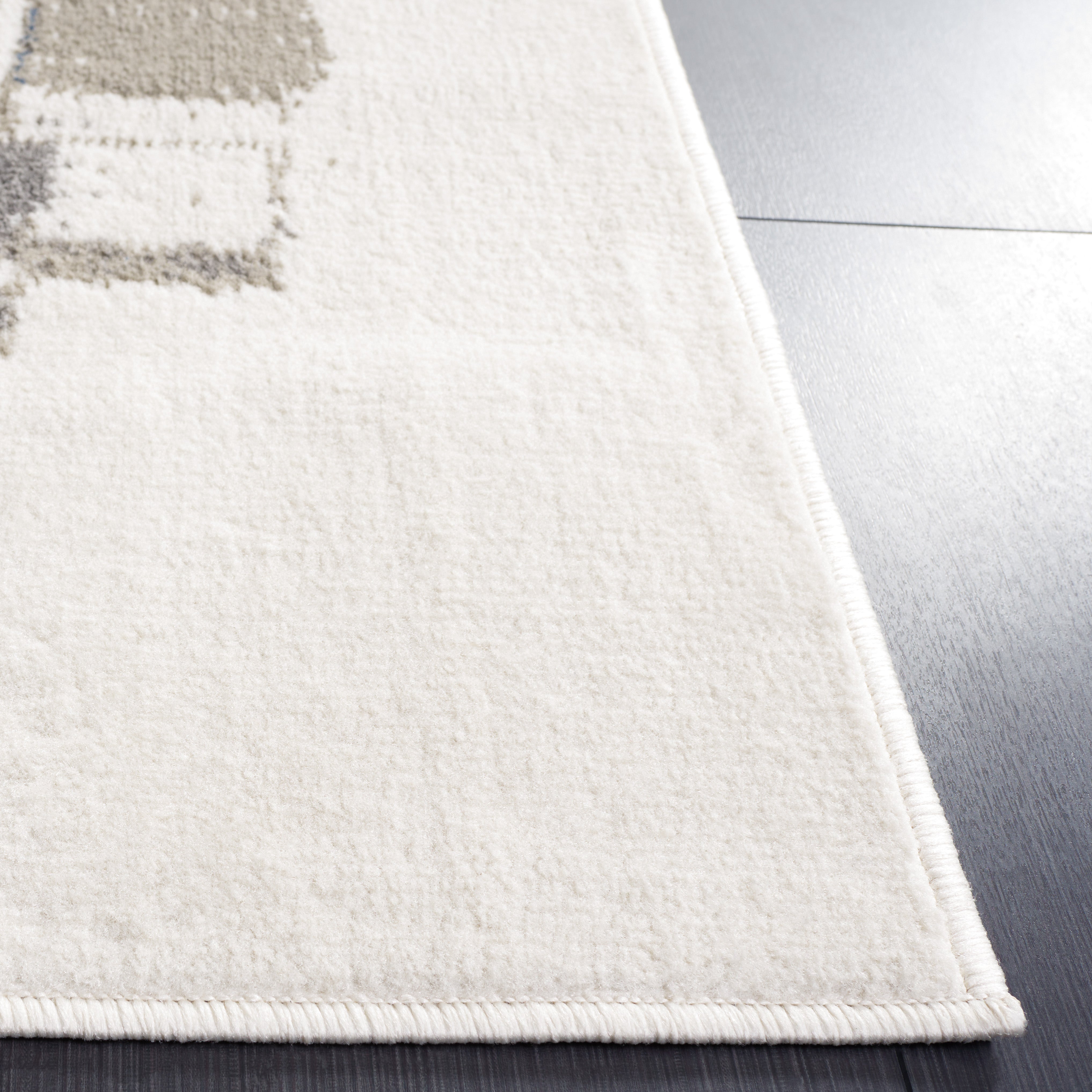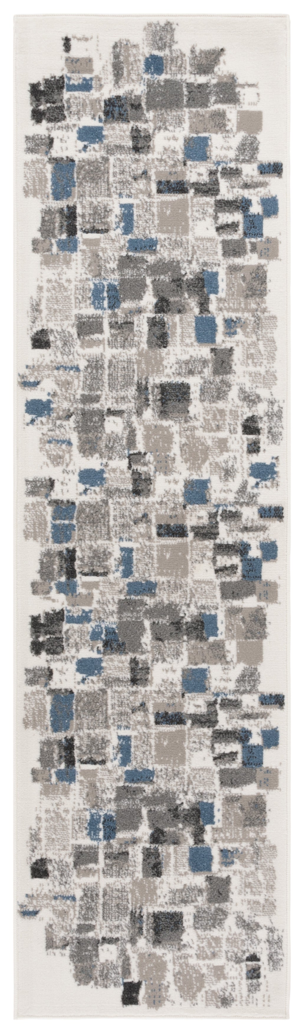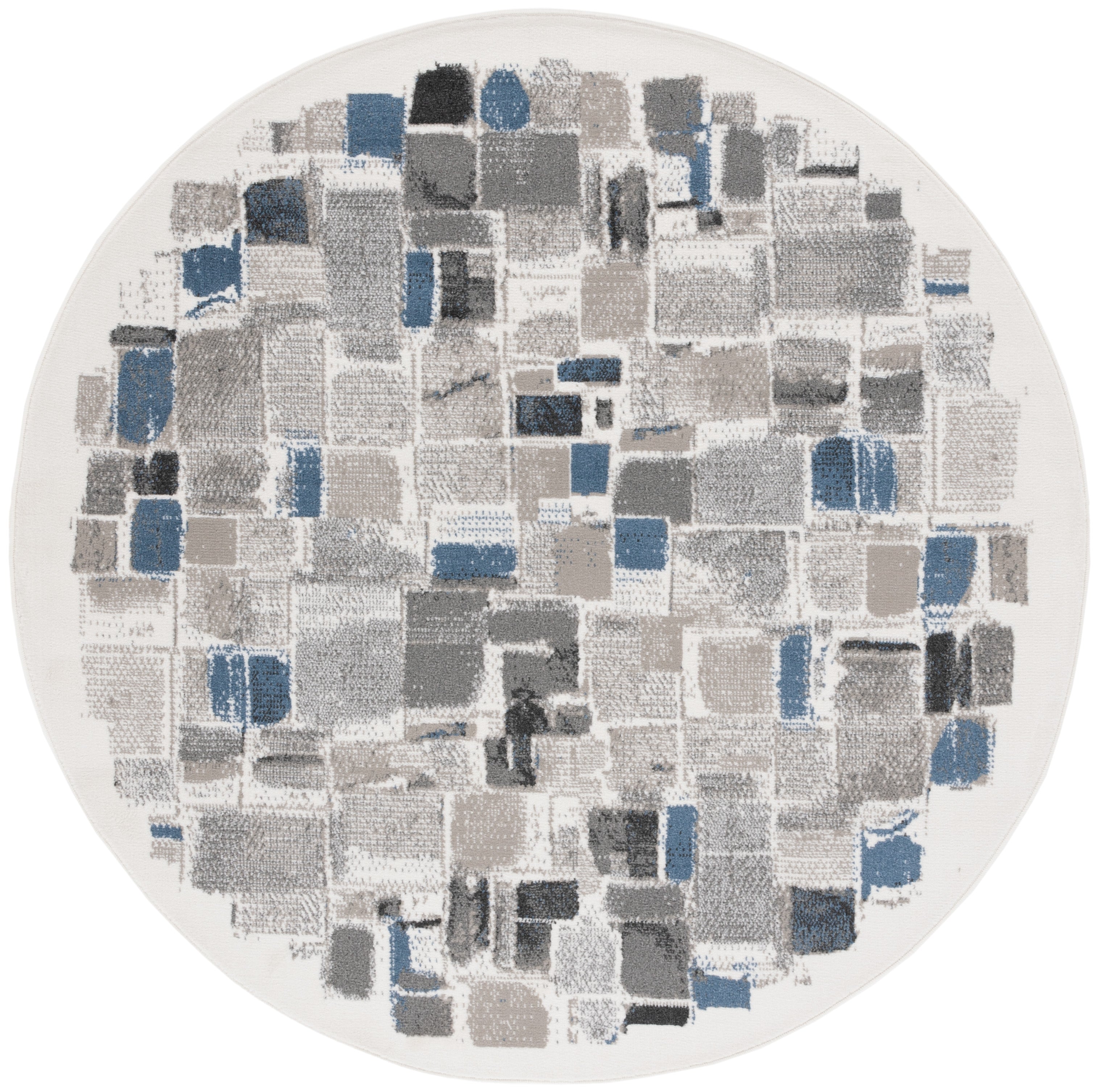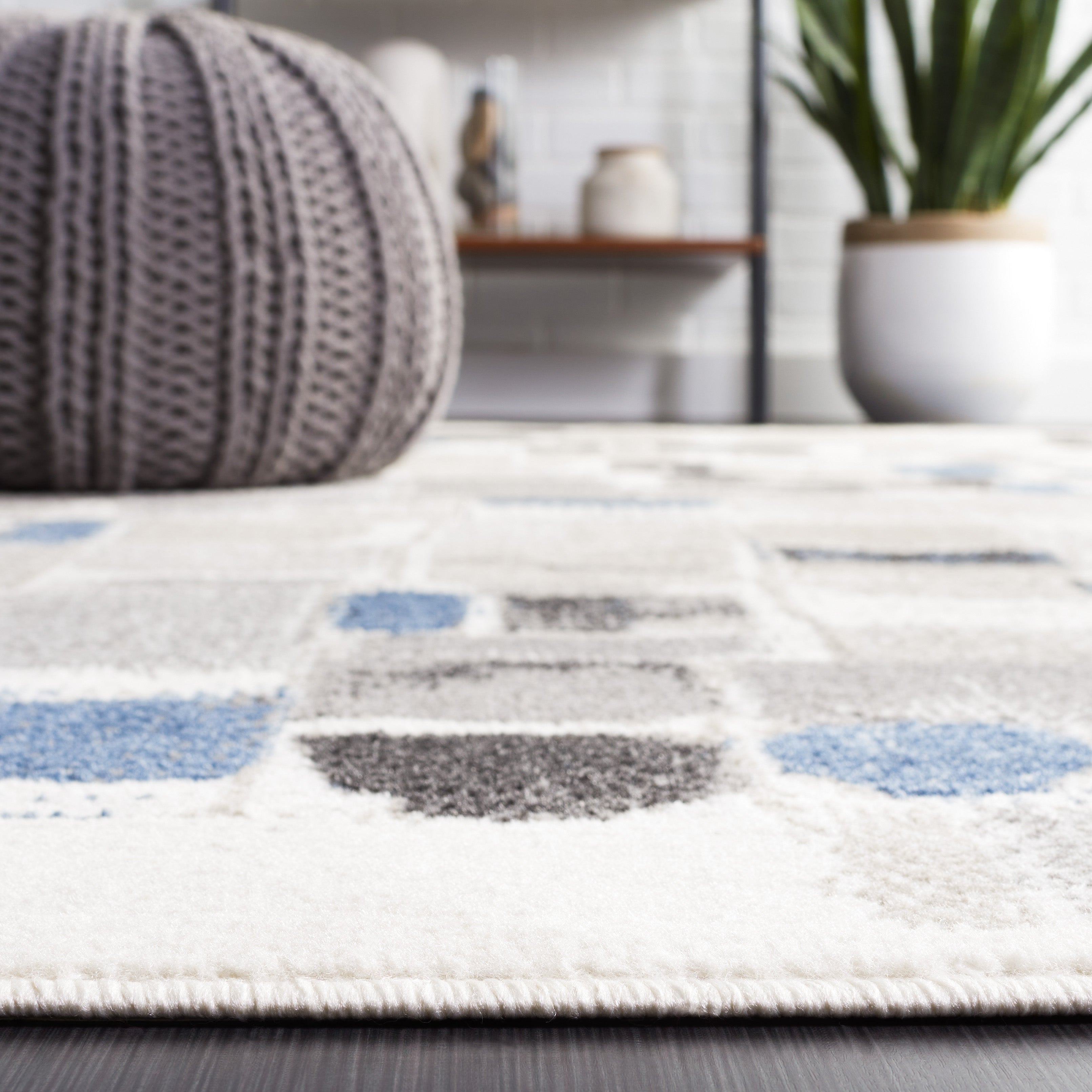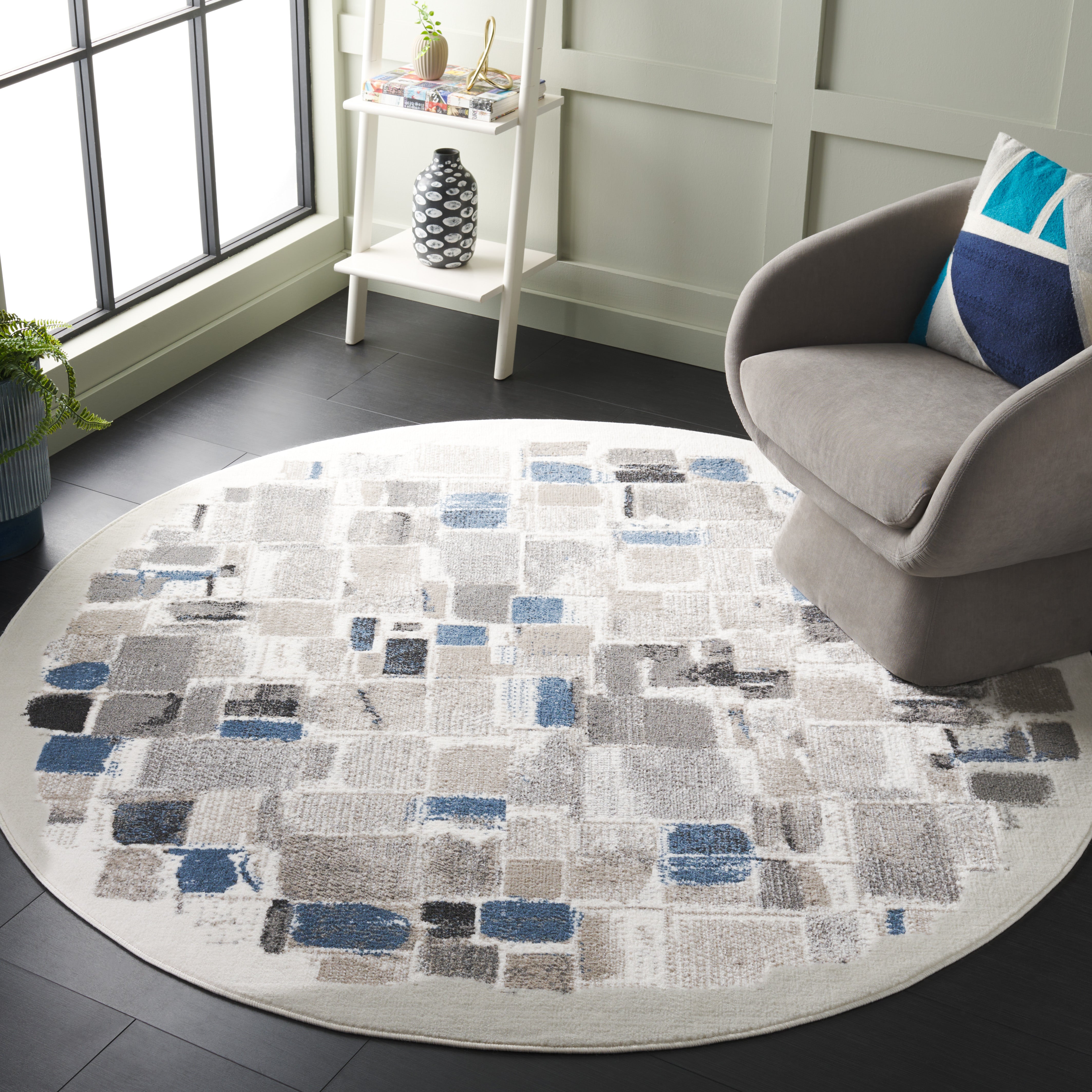 The rug features a captivating ivory and grey navy color palette that effortlessly complements diverse interior designs. Its array of abstract patterns offers a modern touch that can pull together any room's decor. The varied shades of blue, combined with neutral tones, make this rug a statement piece that's both bold and subtle.