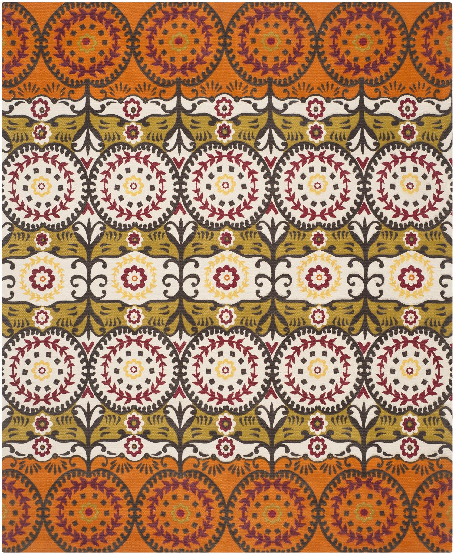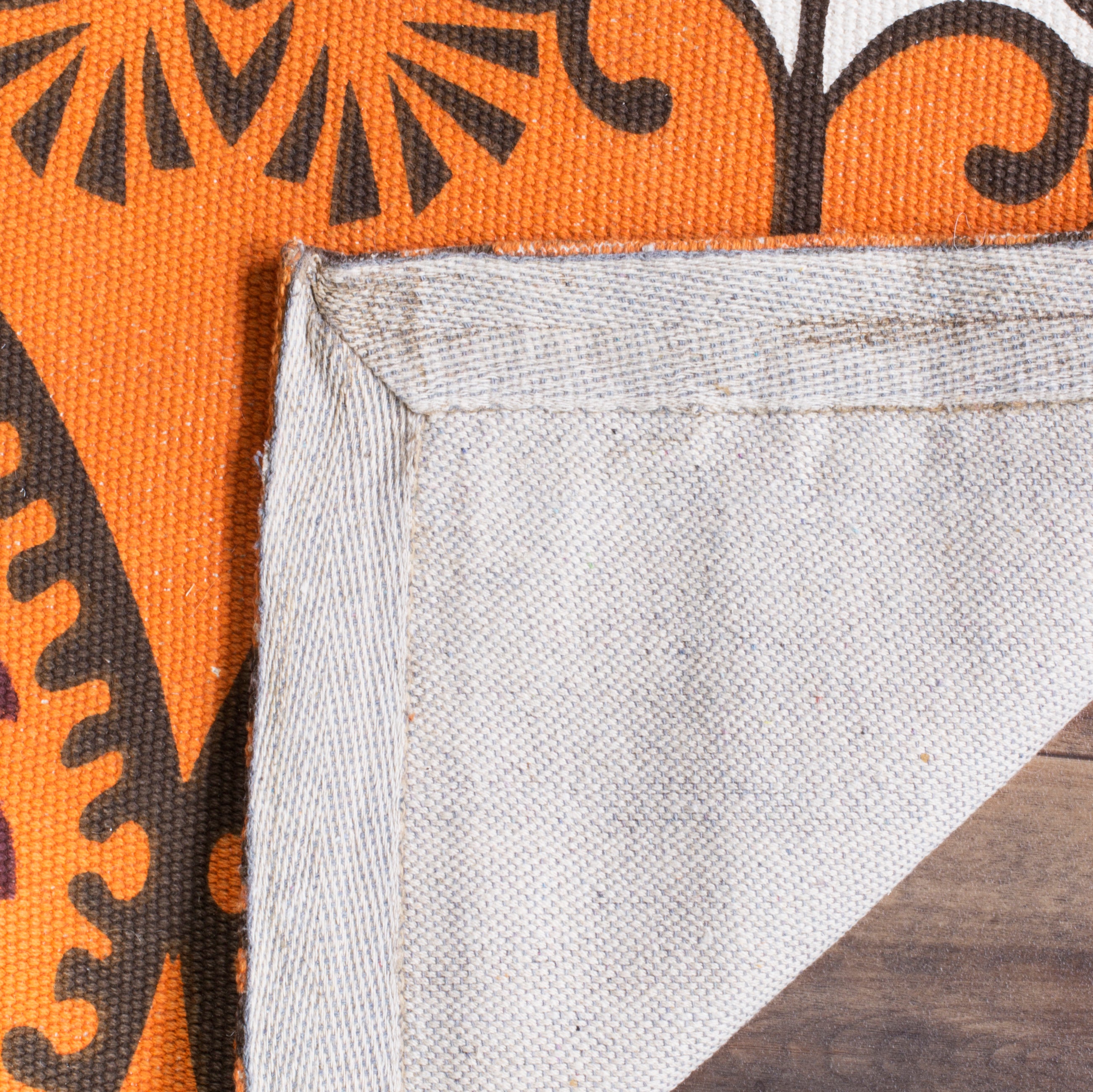 Safavieh celebrates globalism with a brilliantly-hued rug inspired by vintage folk art embroidery from Uzbekistan and Turkey.?Suzani Stripe from the Cedar Brook collection is a transitional cotton print multicolor rug with predominant tones of orange and red.