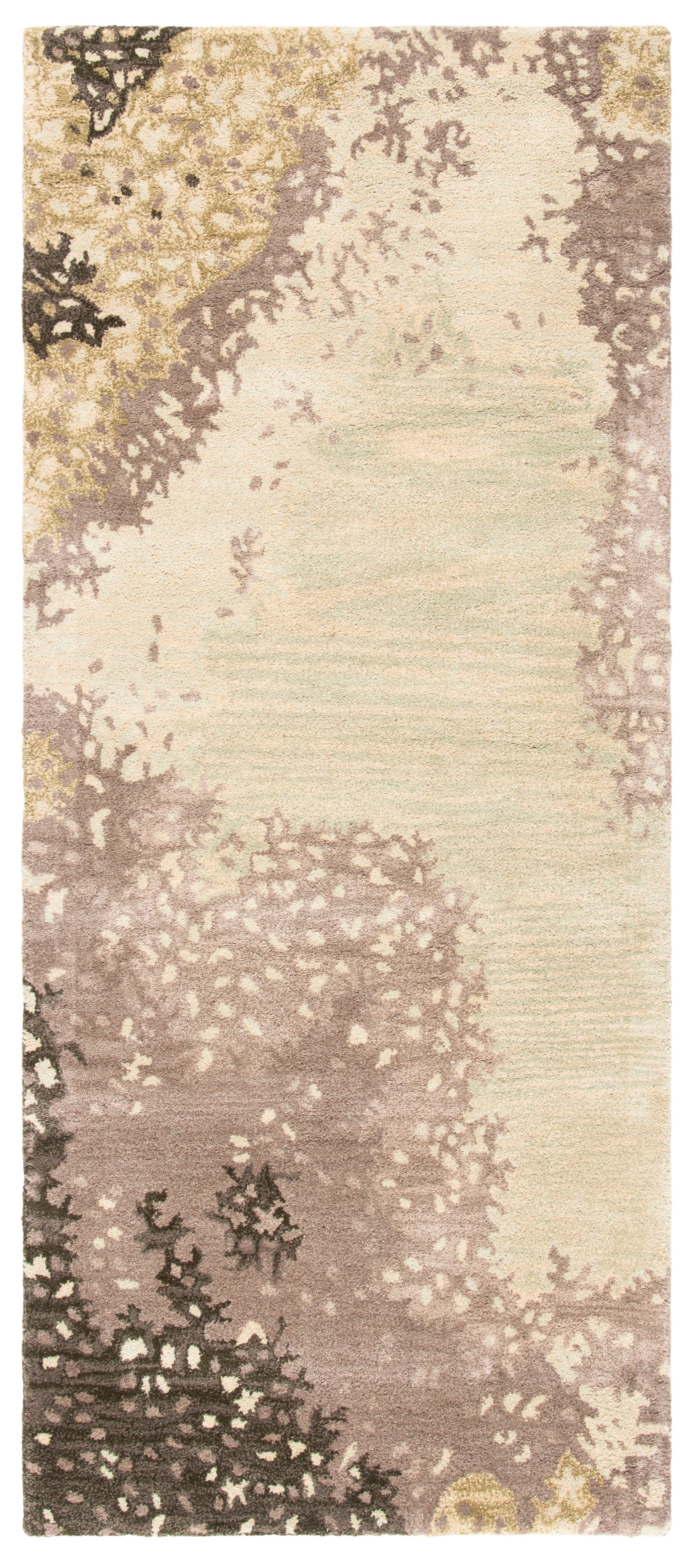 The artful design features a complex pattern resembling organic silhouettes and botanic shadows, which contributes to its timeless charm. The harmonious blend of colors effortlessly captures the tranquil essence of nature while providing a plush underfoot experience.