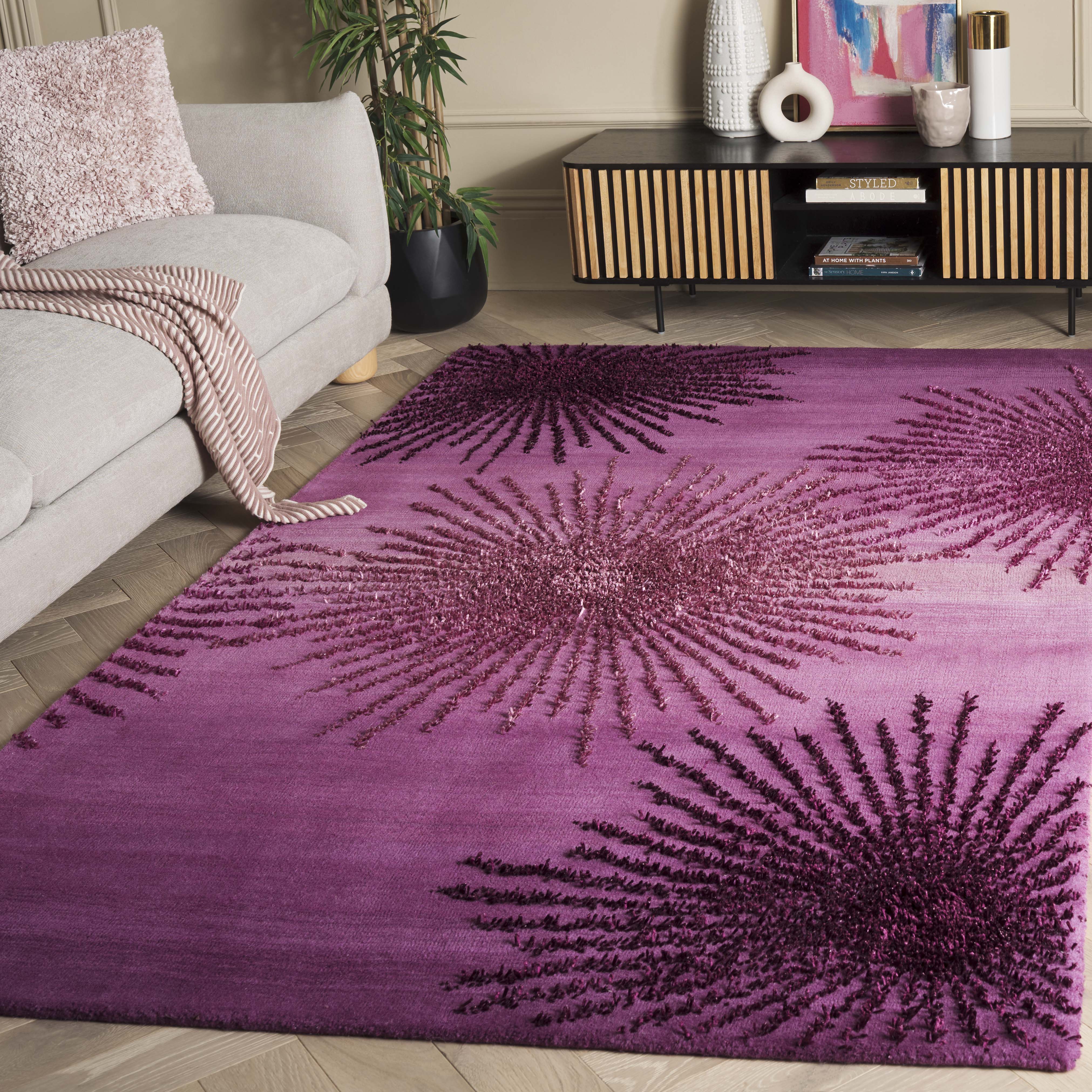 Whether you're looking to add a pop of color to a neutral space or complement an already vibrant decor, this wool and viscose hand tufted rug is the perfect choice. Its exquisite craftsmanship and captivating pattern will make it a beloved addition to your home decor collection.
