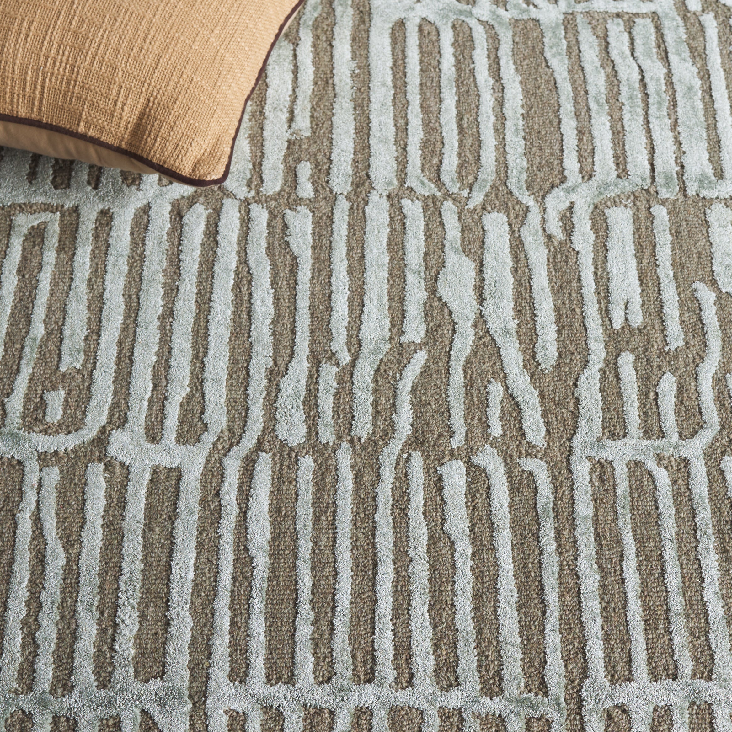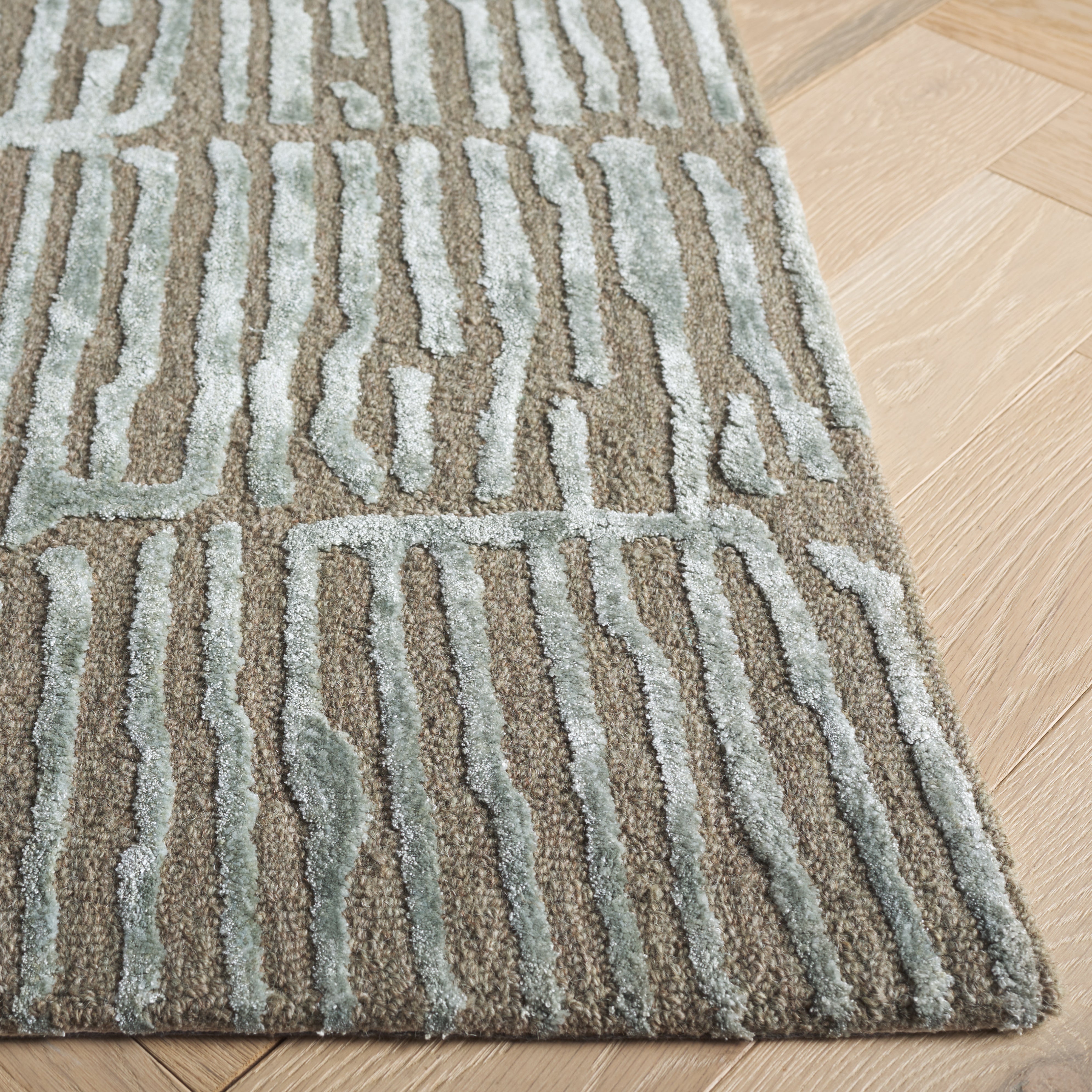 Elevate your hallway with this beautifully crafted runner area rug. Measuring 2 feet 3 inches by 8 feet, this runner showcases a harmonious blend of green and brown tones, perfect for adding a touch of nature to your space. Its modern style is complemented by a hand-tufted weave technique, offering an artisanal touch from India. Made from a blend of 70 percent Viscose and 30 percent Wool, this rug provides a soft feel underfoot, enhancing comfort and warmth in any hallway or narrow space. The rug's 3/8 inch height ensures it fits effortlessly beneath most doors, making it a versatile addition to any home. With no specific pattern, its subtle elegance allows it to blend seamlessly with various decor styles, bringing a sophisticated charm to your interiors.