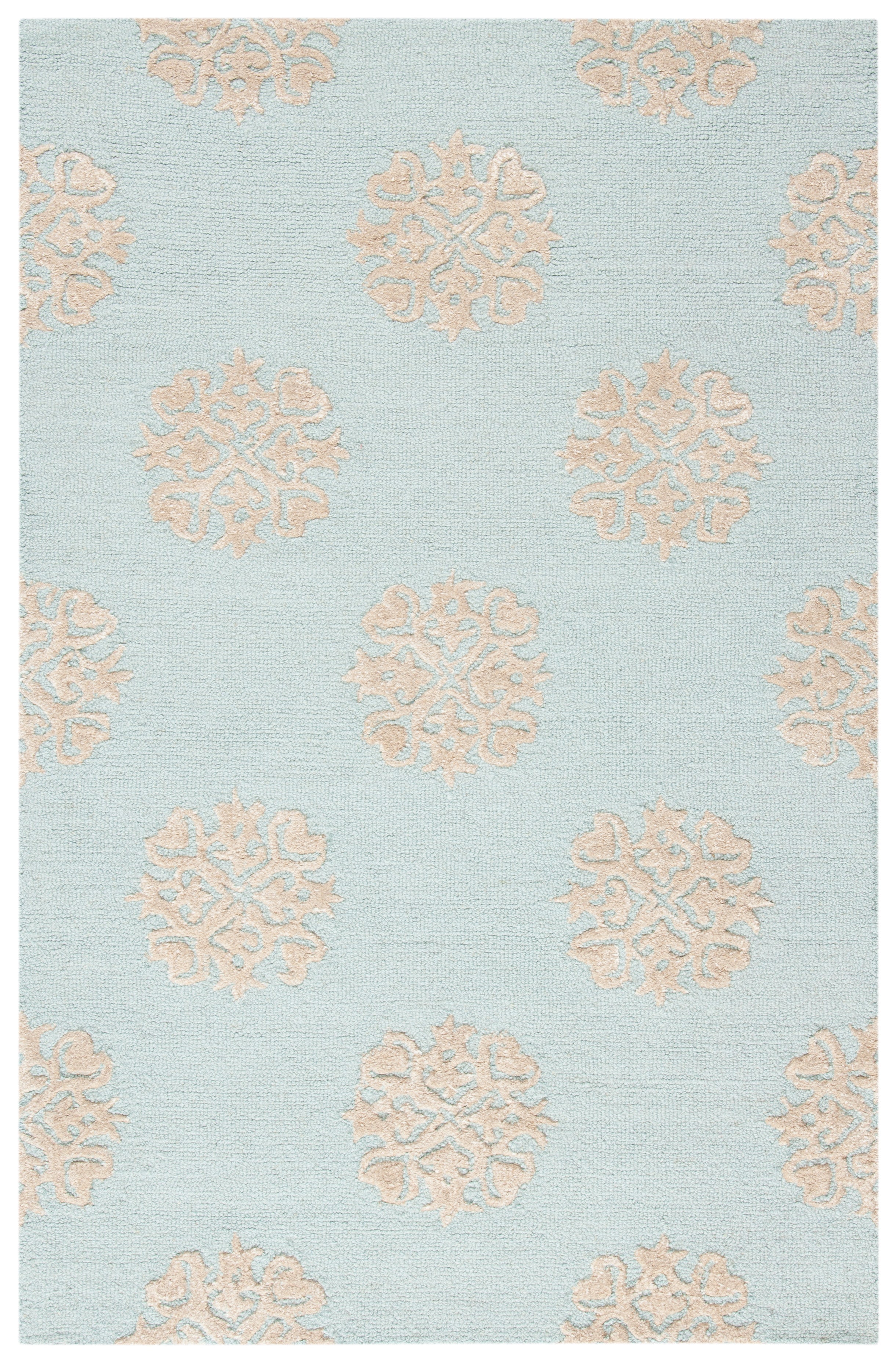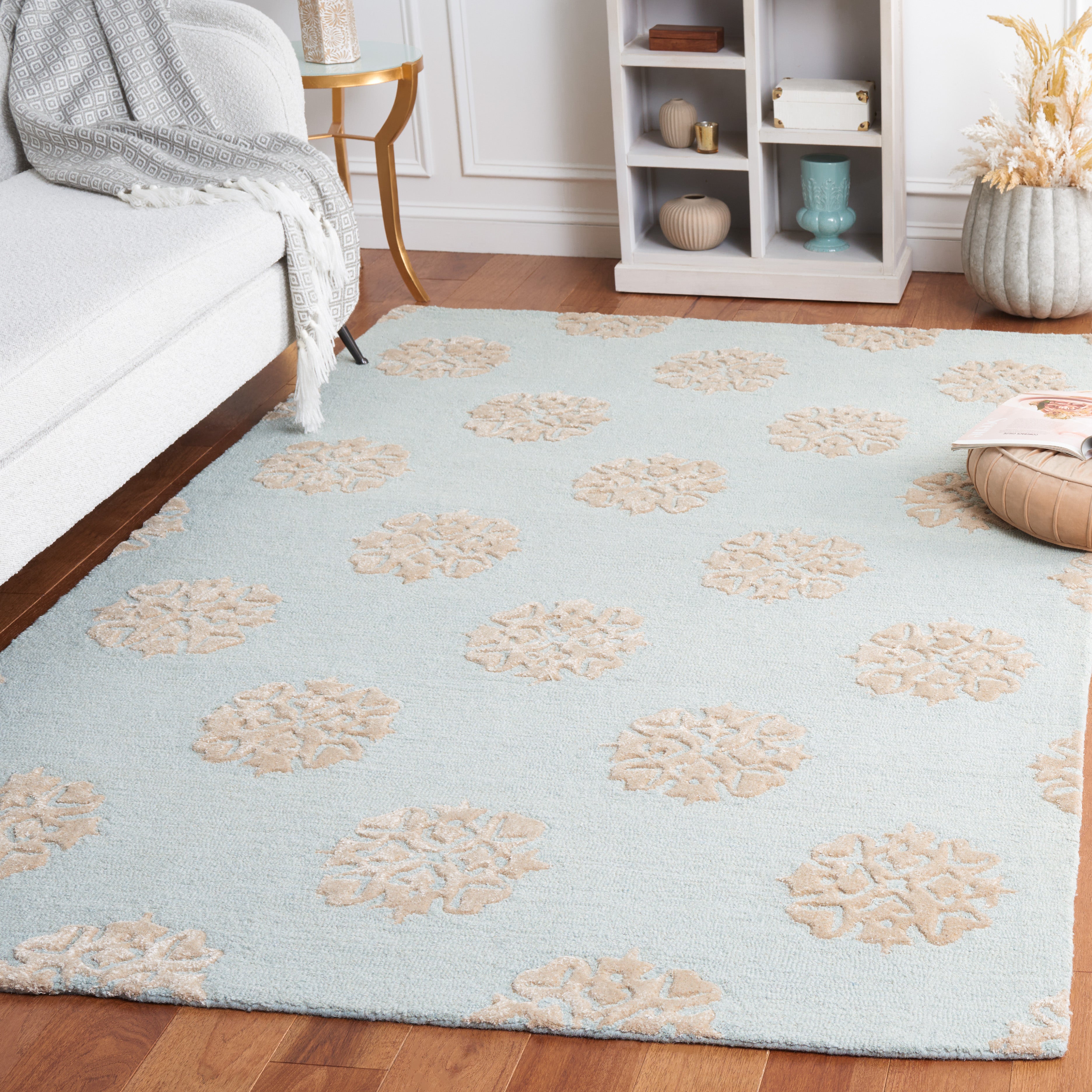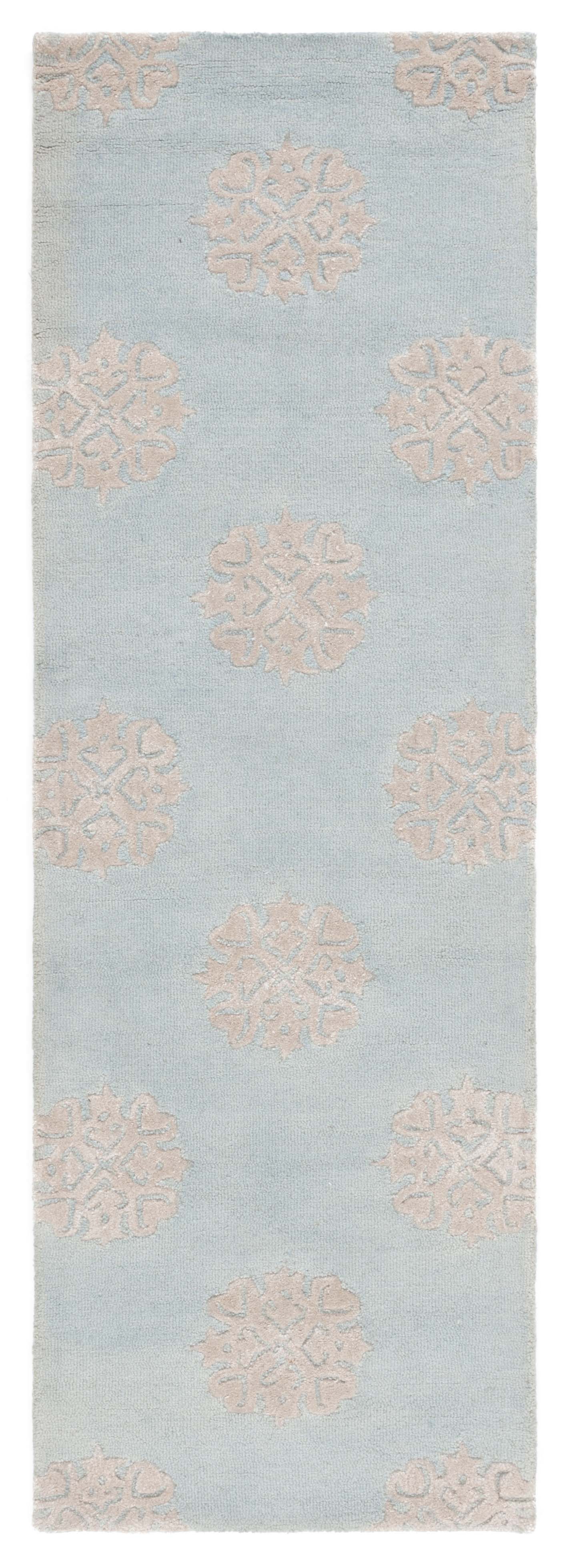 Elevate your living space with this exquisite 2'0" x 3'0" area rug, designed to bring a touch of elegance and warmth to any room. Crafted with care in India, this hand-tufted wool rug features a beautiful floral pattern that blends ivory and light blue hues. Its contemporary style effortlessly complements modern decor, while the accent shape and 3/8 inch height add a subtle layer of dimension. Perfect for adding both texture and style, this rug invites comfort and sophistication into your home. Transform your space with the beauty and craftsmanship of this thoughtfully designed piece.