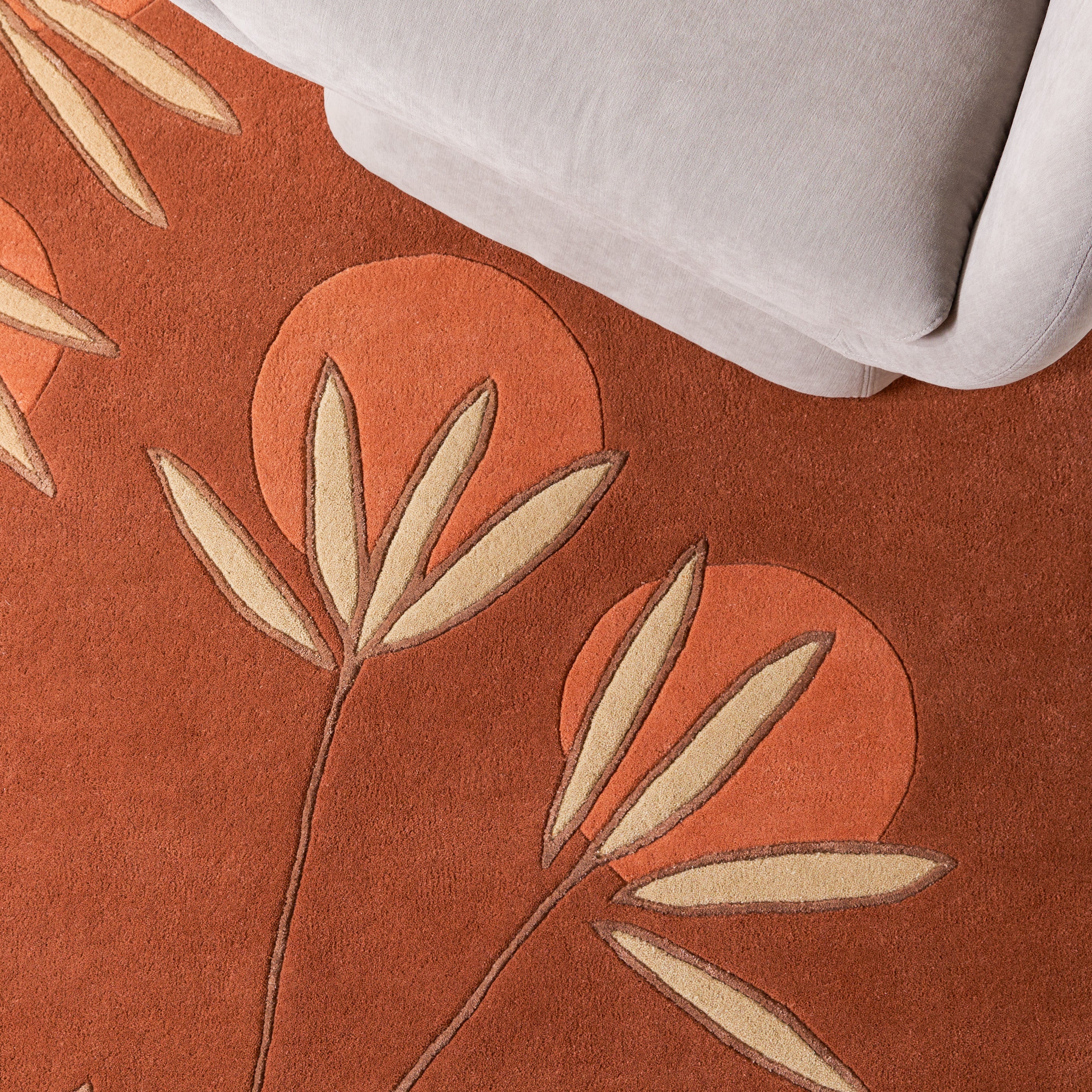 Transform your living space with a stunning area rug that combines artistry with comfort. Measuring 9 feet 6 inches by 13 feet 6 inches, this large rectangle rug in a rich rust color adds warmth and charm to any room. Crafted from wool using a hand tufted technique, this rug exemplifies the skilled craftsmanship of India. Its contemporary style, featuring a floral pattern, seamlessly integrates with modern decor themes, providing a harmonious blend of design and functionality. With a height of 5/8 inch, it offers a plush surface underfoot, enhancing the comfort of your space. Elevate the aesthetic of your home with this elegant rug, a timeless addition designed to complement your unique style.