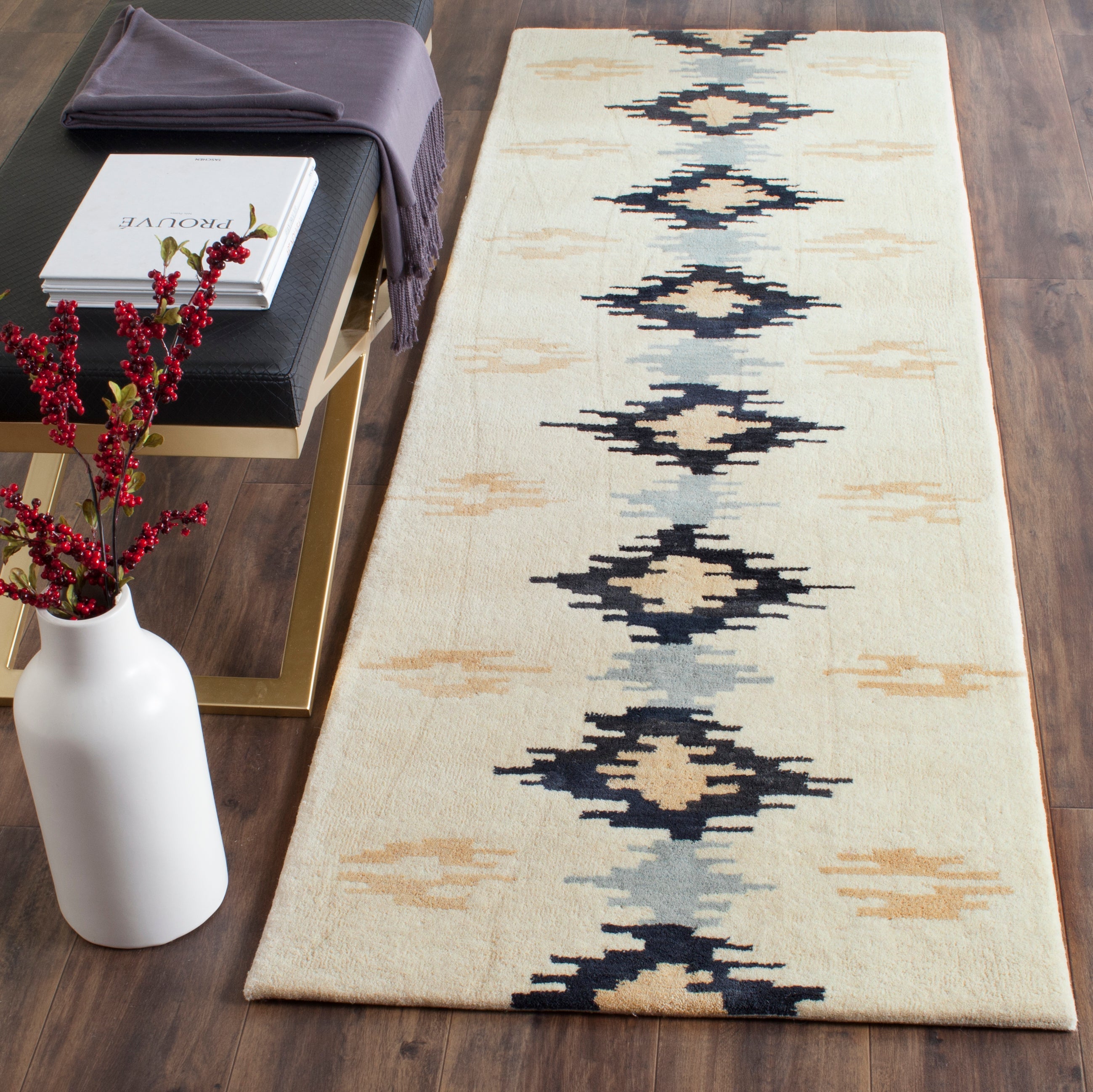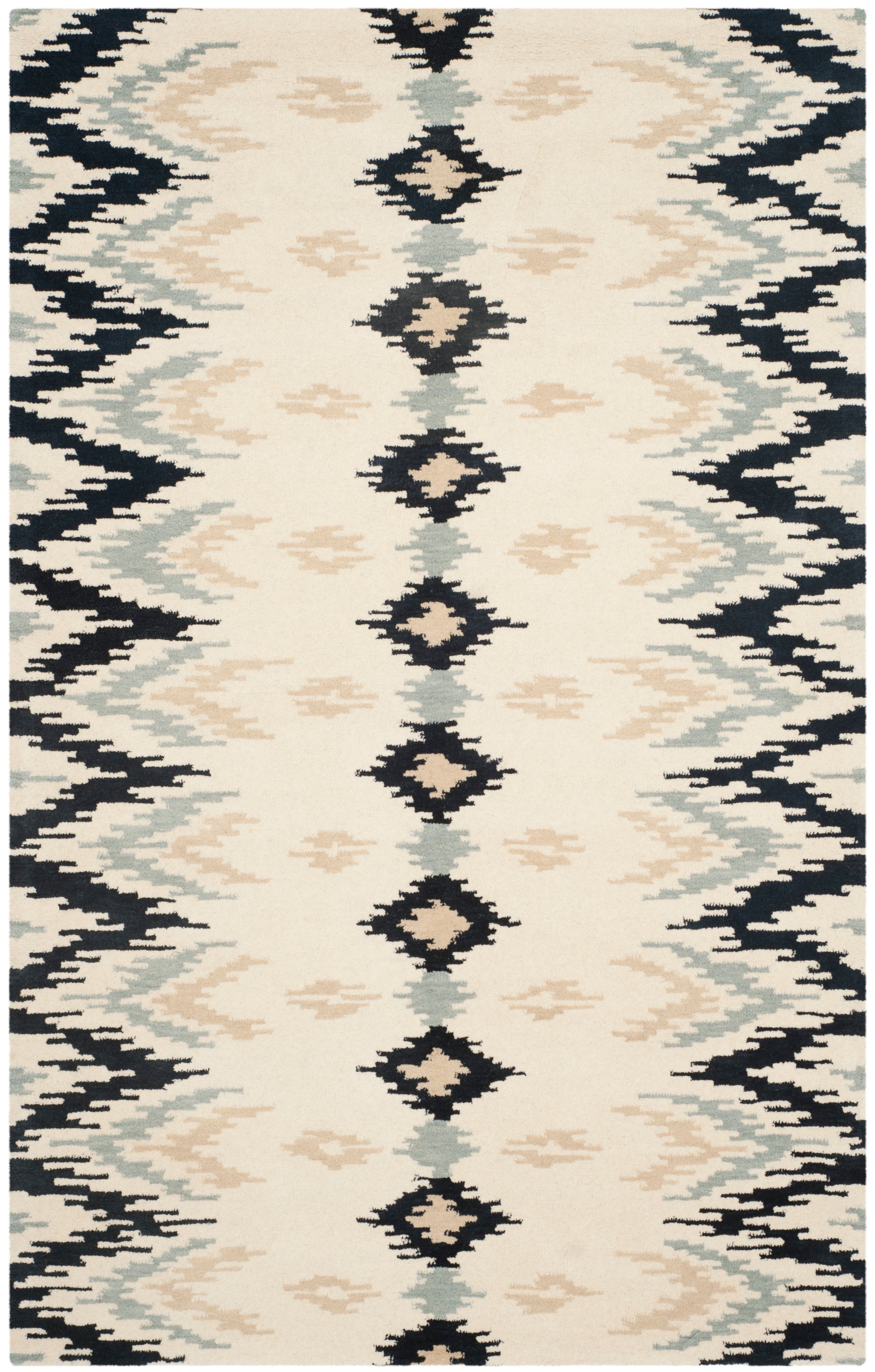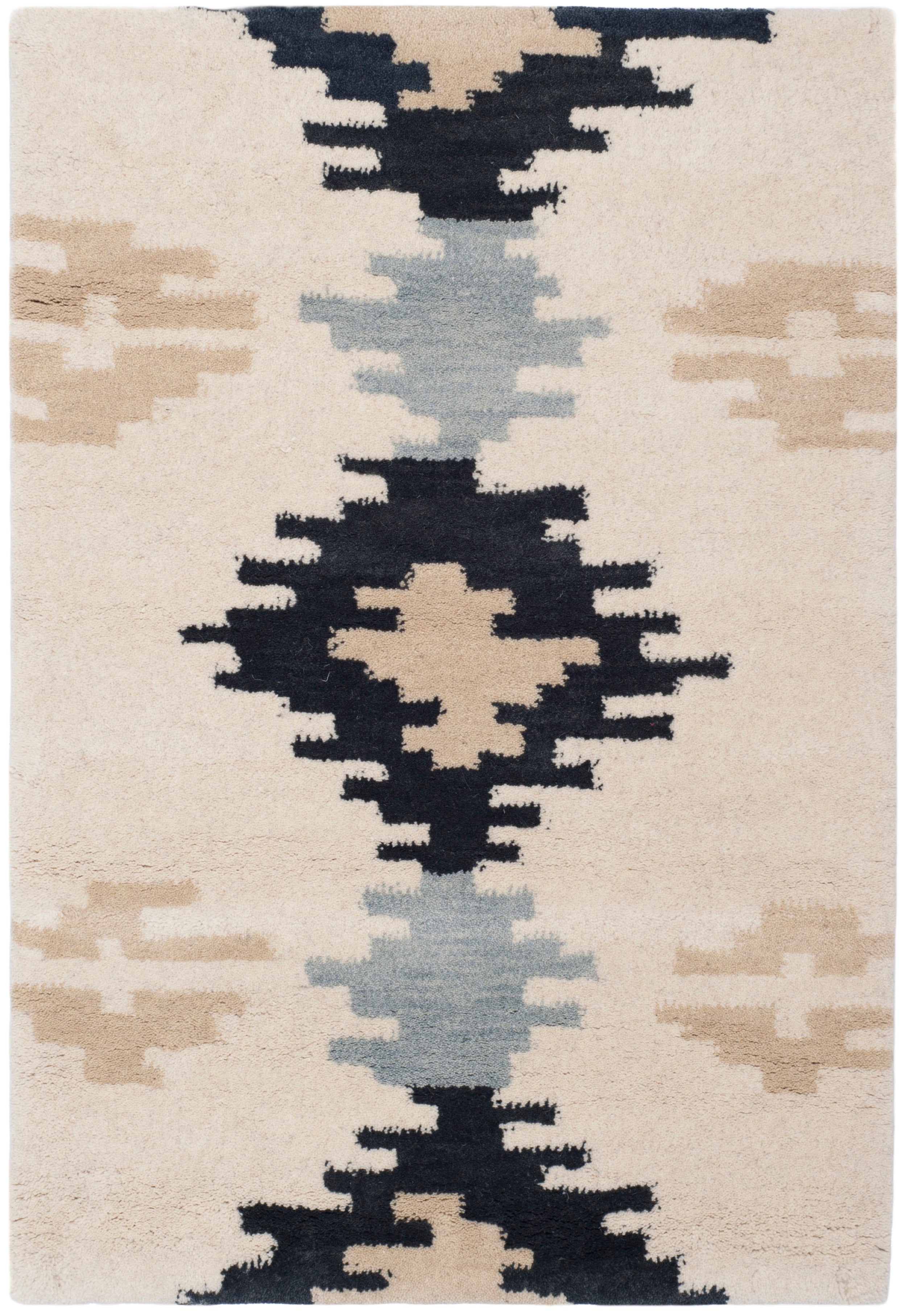 Elevate your space with the bohemian charm of this hand tufted area rug. Crafted in India, this accent piece measures 2 feet by 3 feet and combines the inviting tones of ivory and dark grey. The geometric pattern adds an artistic flair, seamlessly blending sophistication and style. Made with a blend of wool and viscose, this rug offers a soft touch underfoot while bringing texture and depth to any room. Whether placed in an entryway or as a centerpiece in your living space, this piece enhances your decor with its unique design. Add a touch of modern elegance to your home today.
