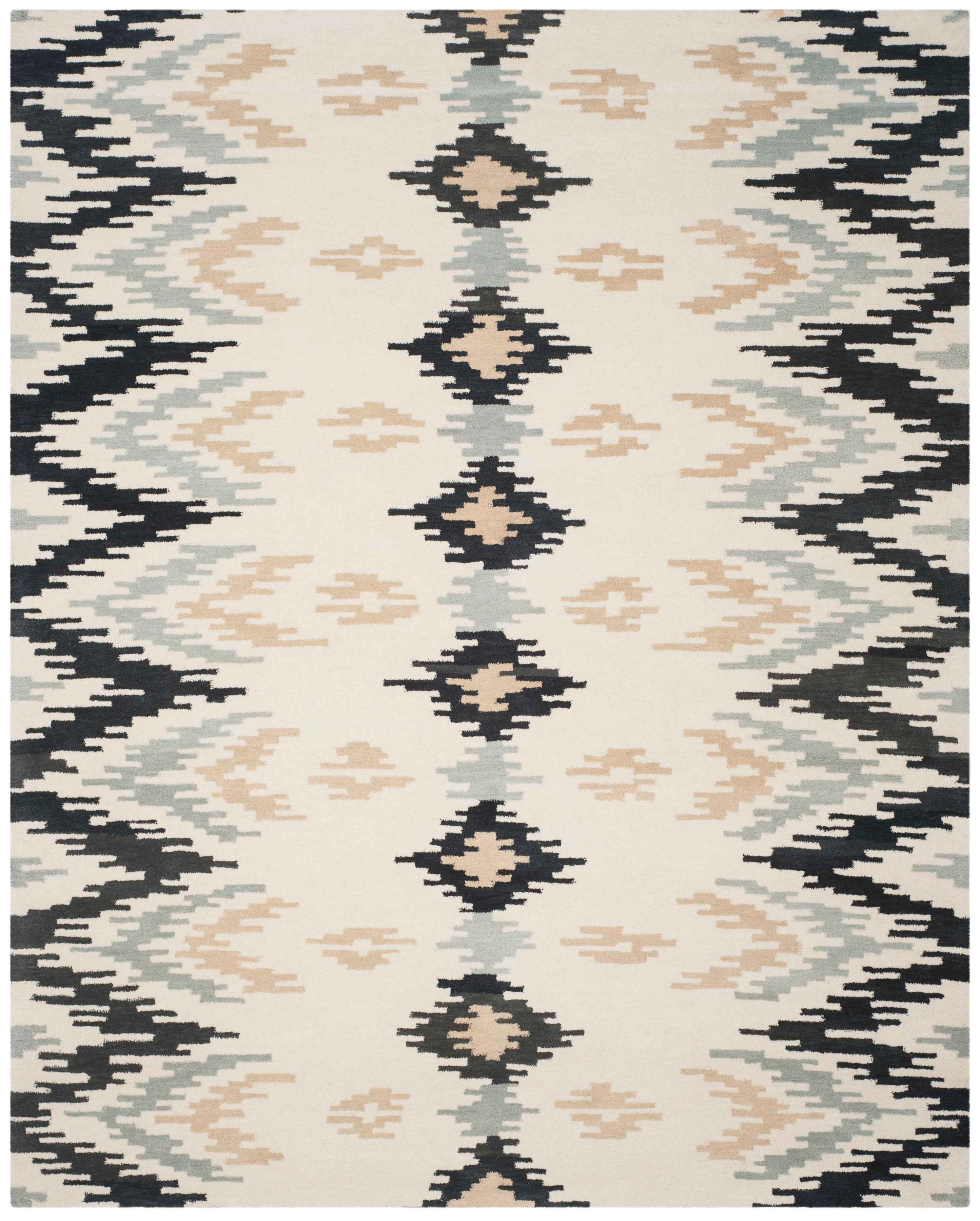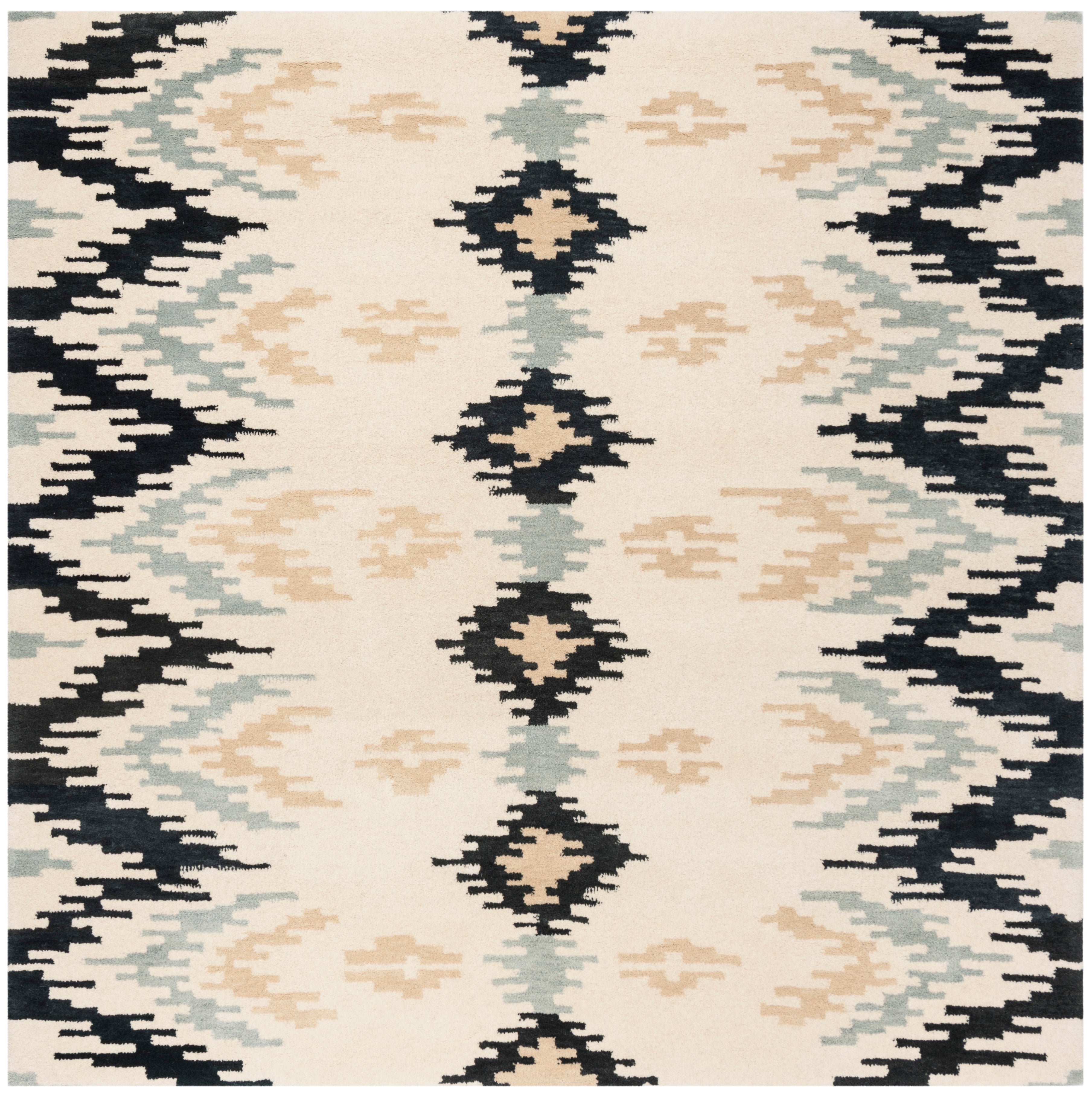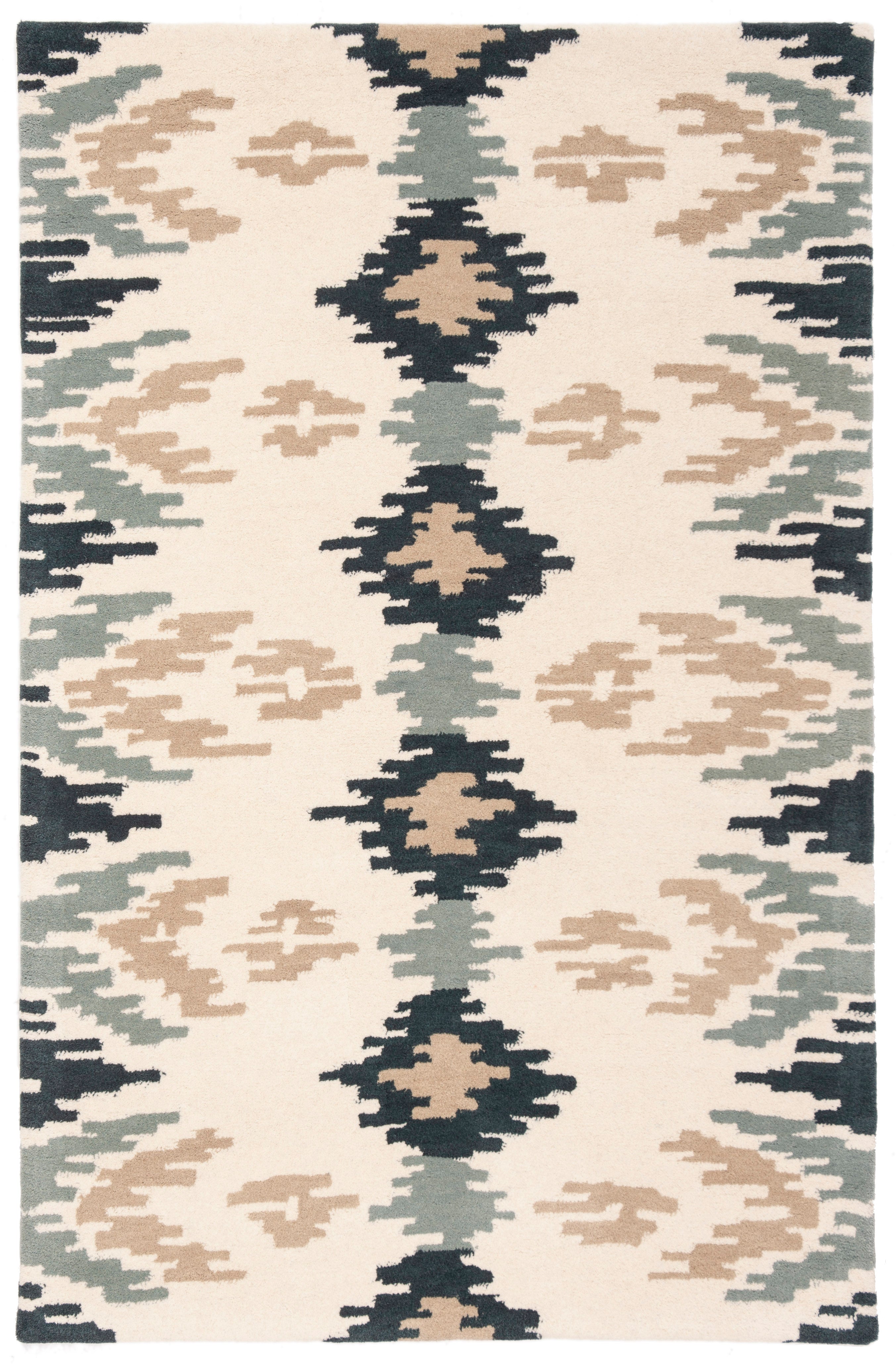 Elevate your space with the bohemian charm of this hand tufted area rug. Crafted in India, this accent piece measures 2 feet by 3 feet and combines the inviting tones of ivory and dark grey. The geometric pattern adds an artistic flair, seamlessly blending sophistication and style. Made with a blend of wool and viscose, this rug offers a soft touch underfoot while bringing texture and depth to any room. Whether placed in an entryway or as a centerpiece in your living space, this piece enhances your decor with its unique design. Add a touch of modern elegance to your home today.