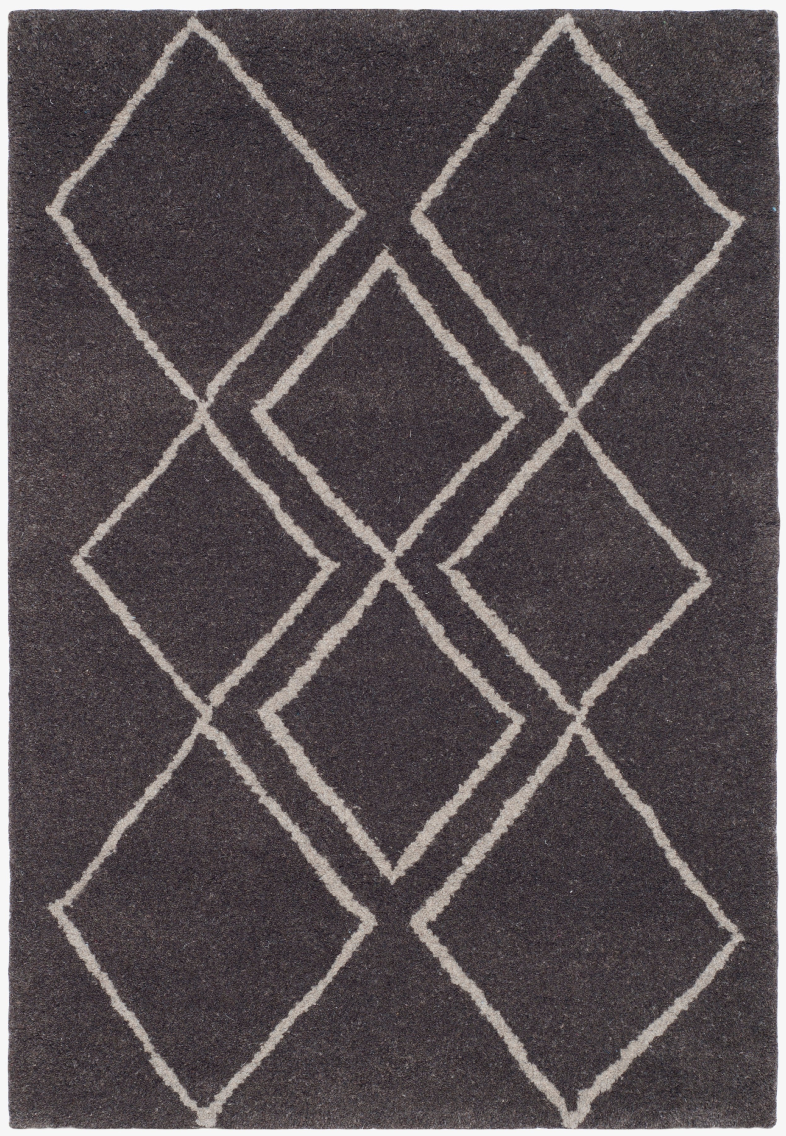 Introducing a stunning accent rug designed to elevate your space with contemporary flair. This 2' 0" x 3' 0" masterpiece combines a refined ivory and dark grey palette with a geometric pattern that adds visual intrigue to any room. Hand tufted in India from a rich blend of wool and viscose, it delivers a touch of elegance and sophistication.