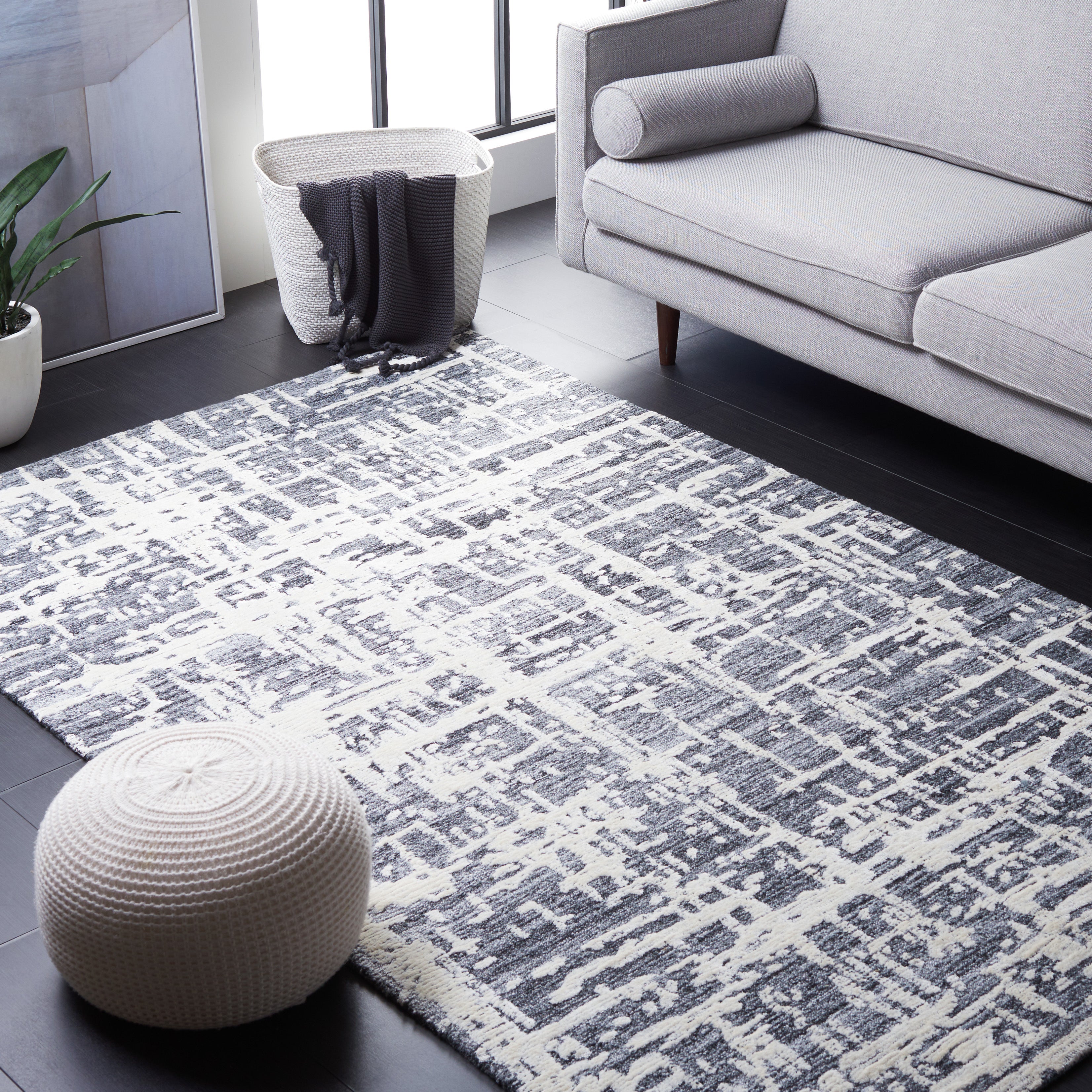Introducing our exquisite Runner area rug, a splendid blend of luxury, durability, and artisanal craftsmanship. This hand-tufted masterpiece proudly presents a modern abstract pattern, reminiscent of serene water reflections or intriguing distressed textures, which converges into a harmonious amalgamation of grey and ivory tones, promising to enhance the sophistication of your home decor.