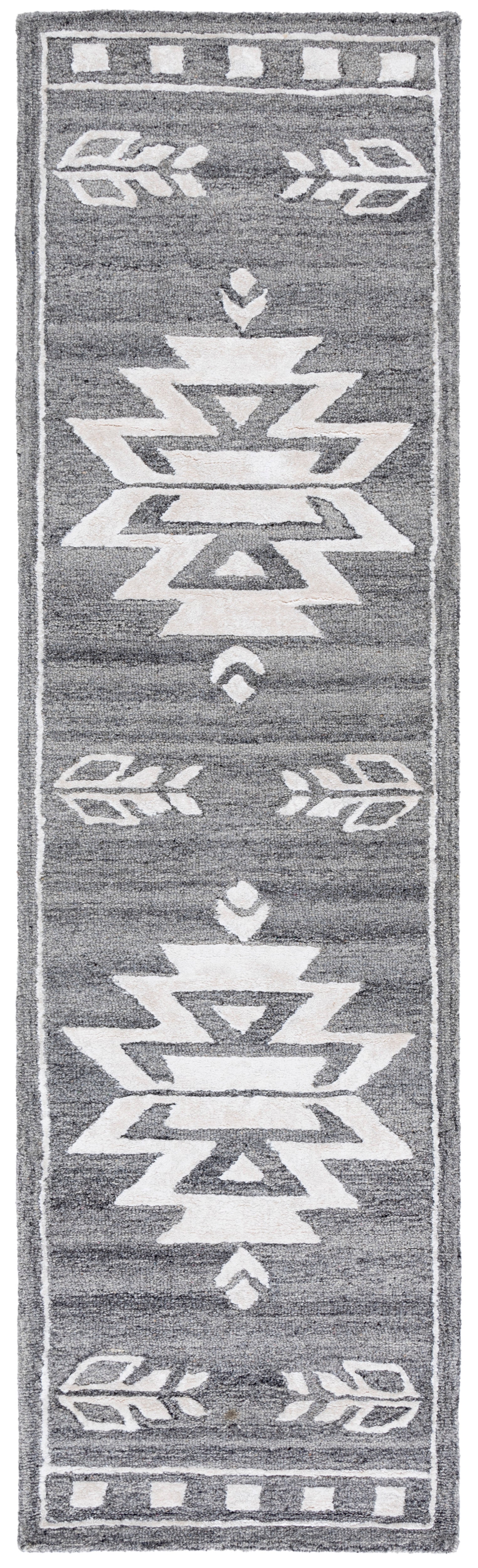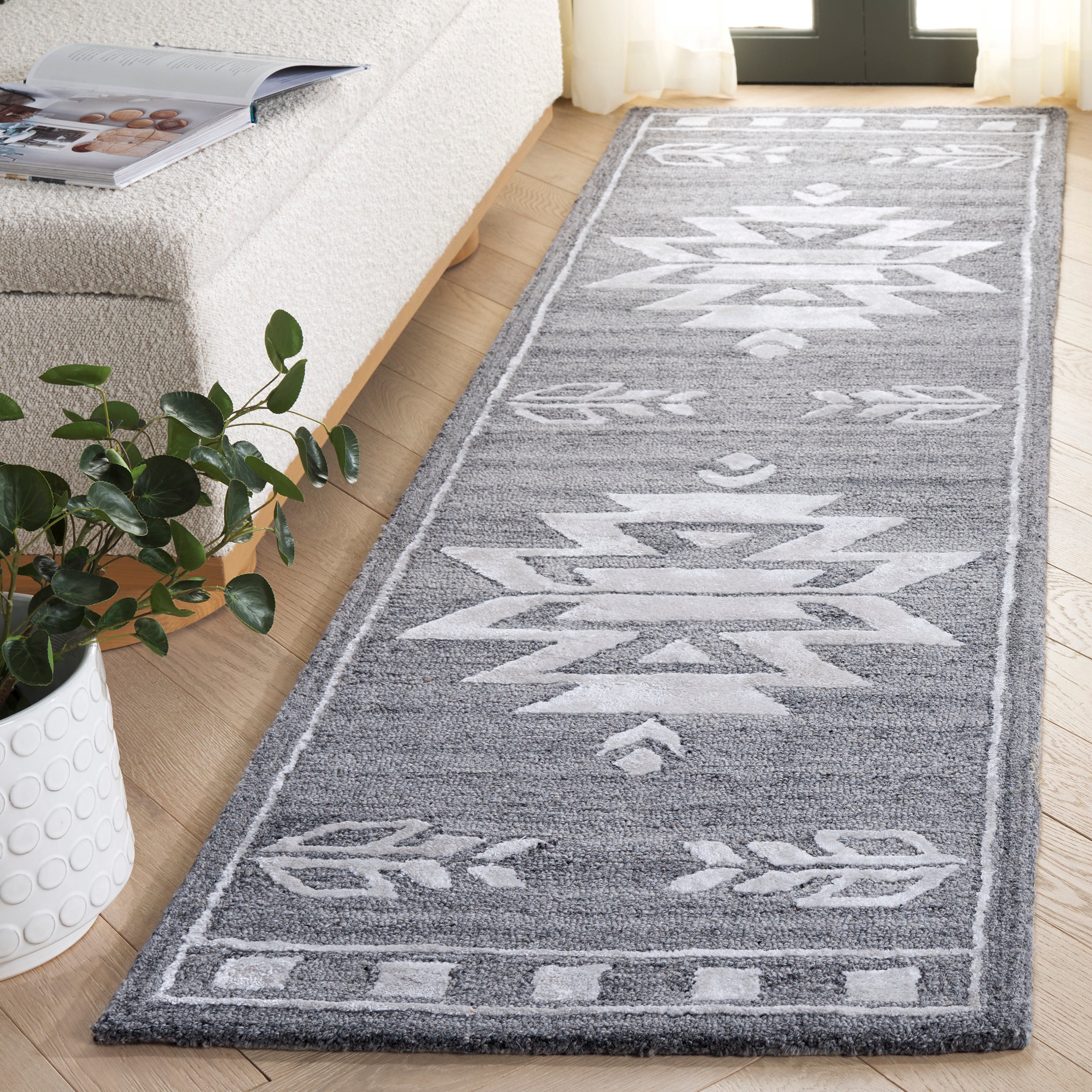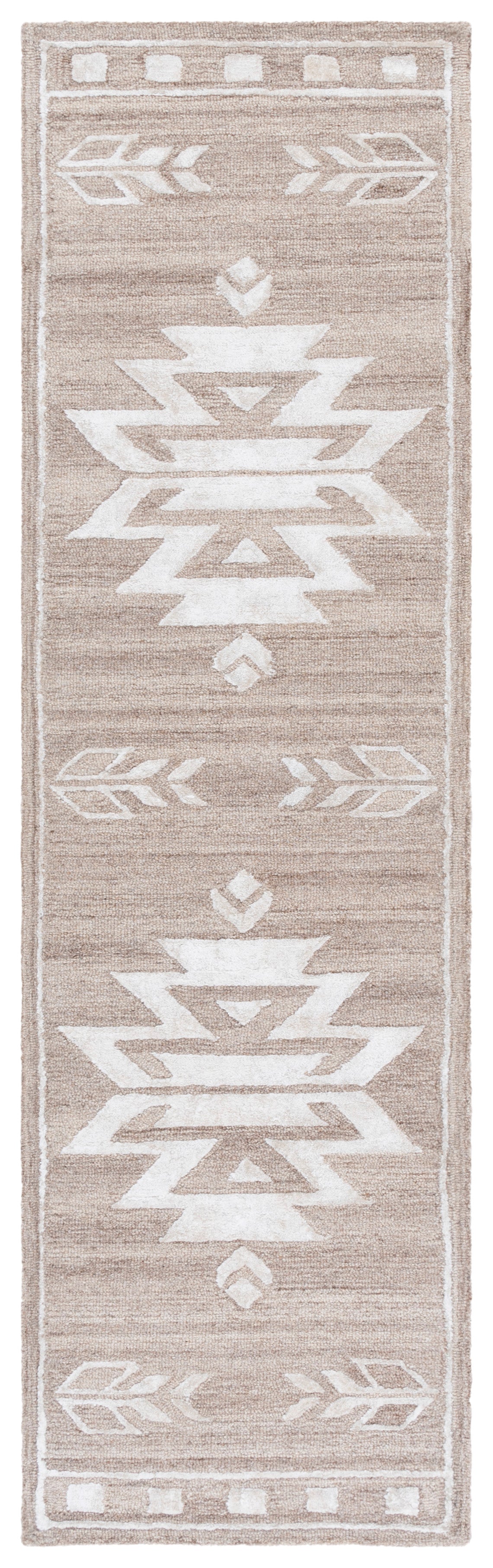 Measuring 2 feet 3 inches by 8 feet, this runner is the perfect size to create a warm, inviting pathway in your hallway, kitchen, or along the side of a bed in your bedroom. The rug's design features a balanced array of angular and tribal-inspired motifs that impart a sense of calm and continuity in your living area.