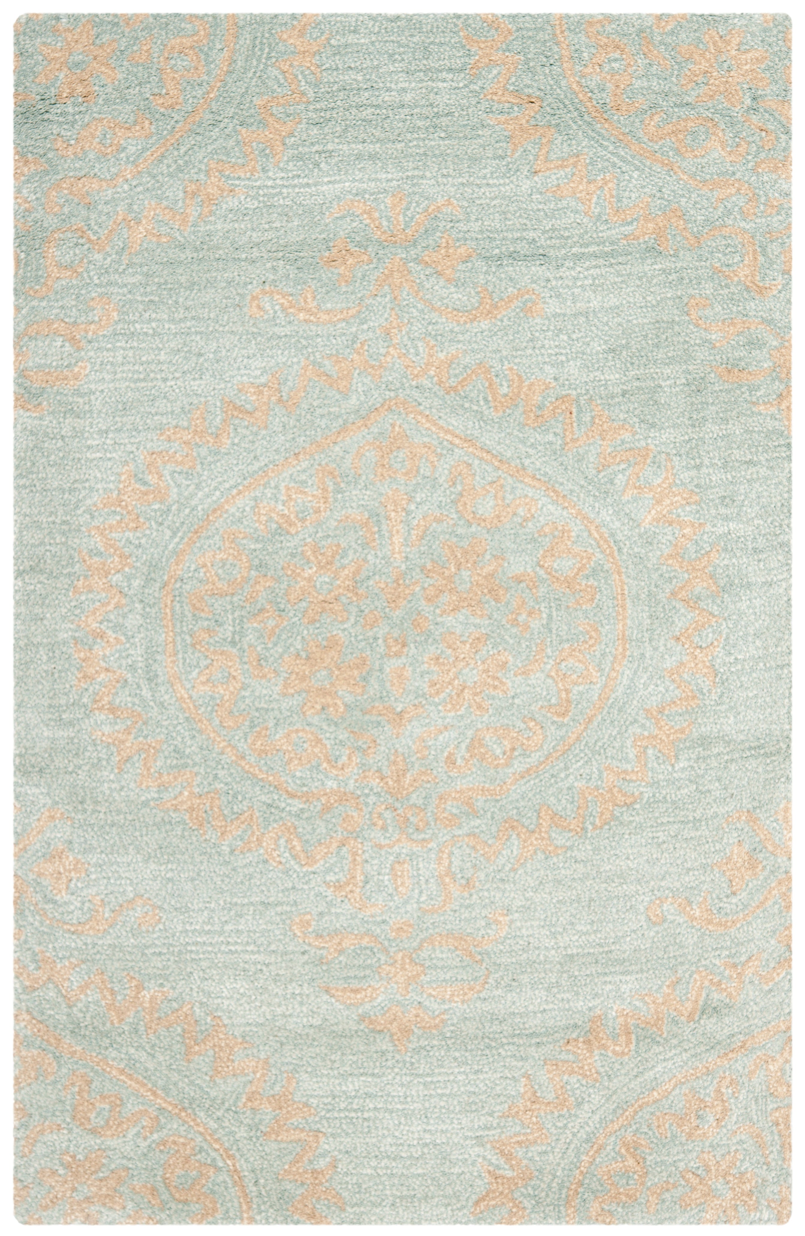 Introducing our exquisite hand-tufted accent rug, a stunning addition to any home decor. This 2' X 3' area rug boasts an elegant pattern that combines traditional charm with a modern palette of blue and beige, emanating a serene and sophisticated vibe.