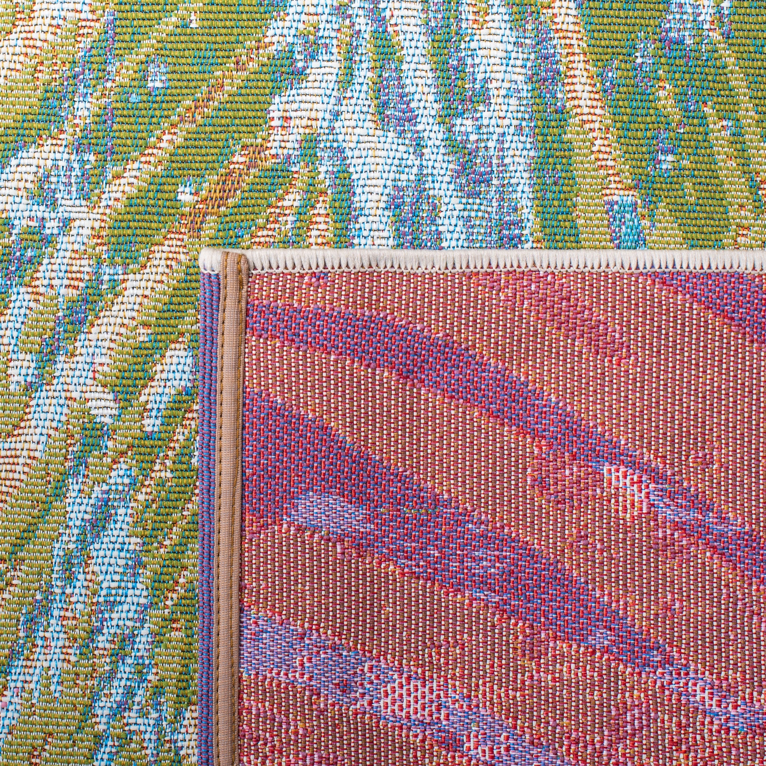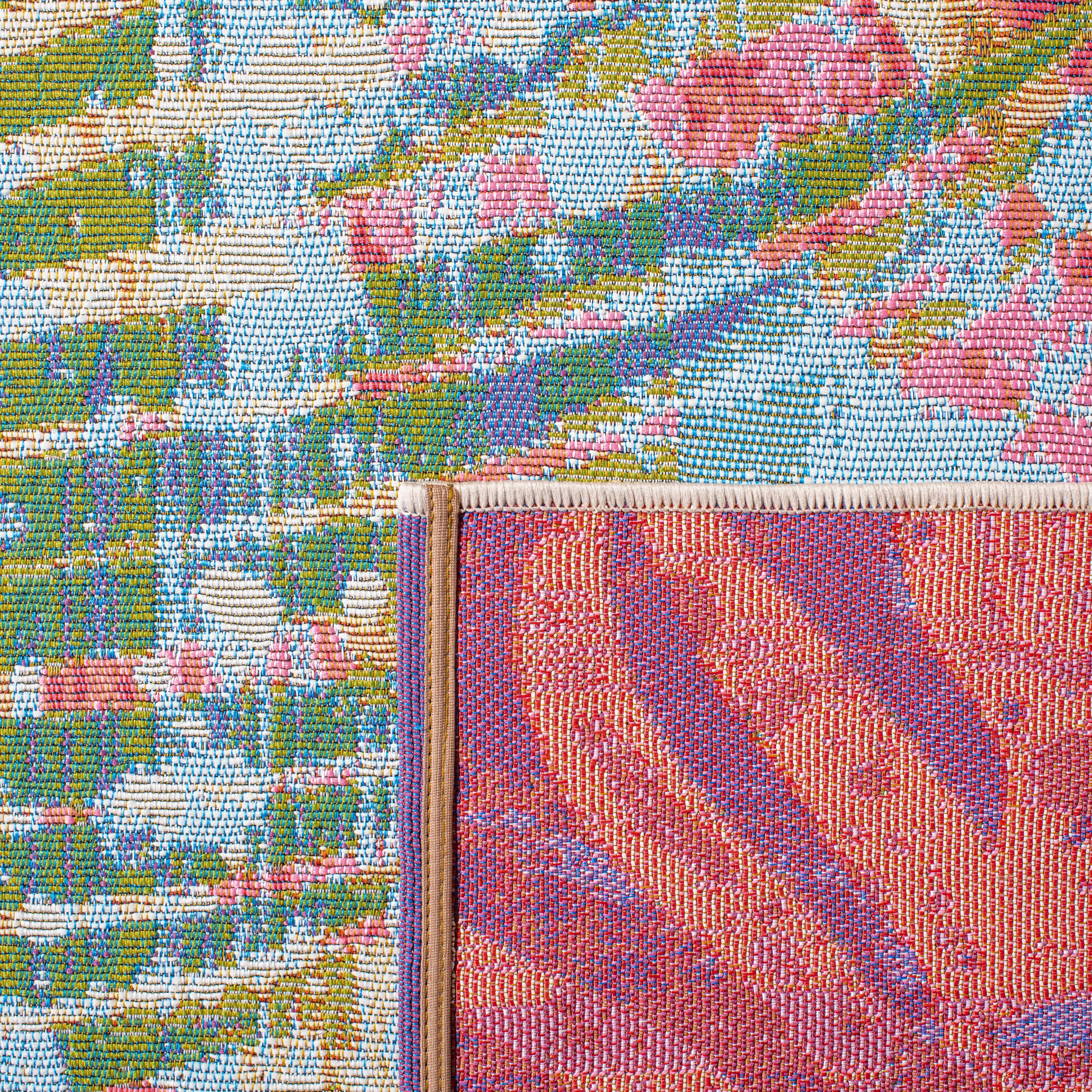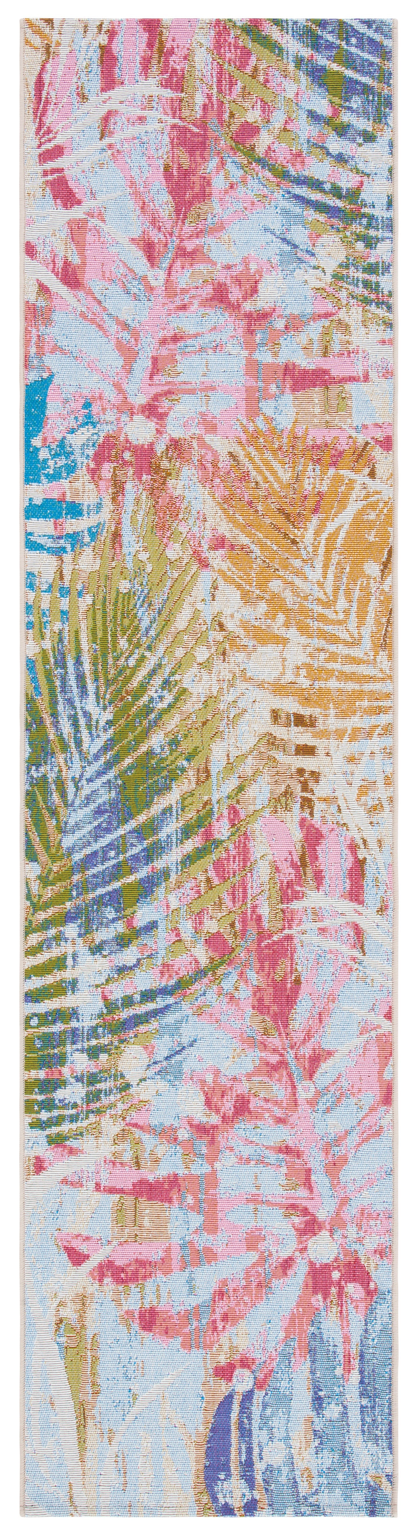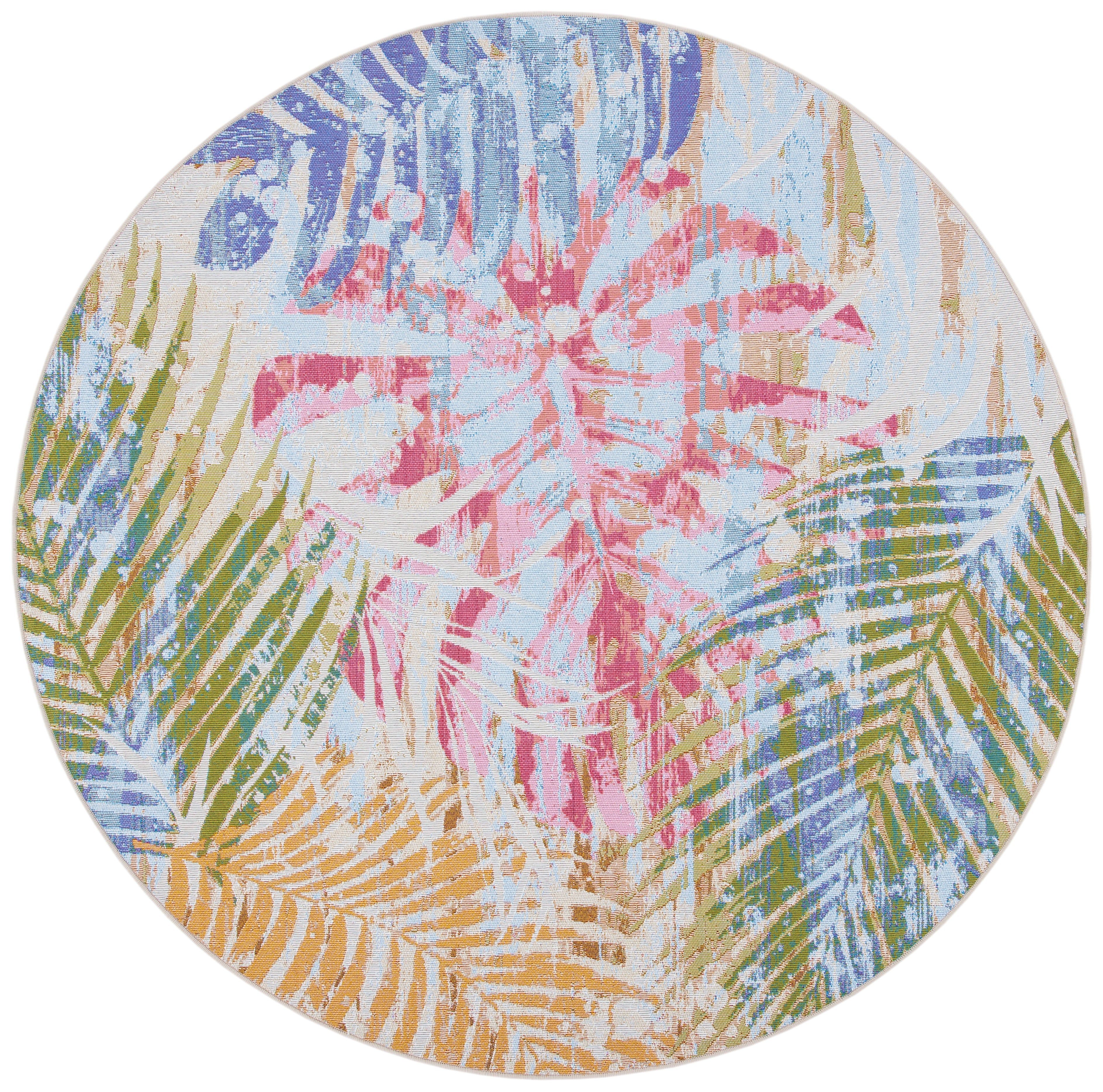 The rug's durable construction of 76% polypropylene and 23% polyester, reinforced with 1% backing material, ensures a long-lasting resilience that matches the timeless beauty of its pattern. Speaking of its design, the rug features a delightful mix of tropical and abstract elements, blending palm leaf silhouettes with a modern, painterly approach that adds an expressive touch to any setting.