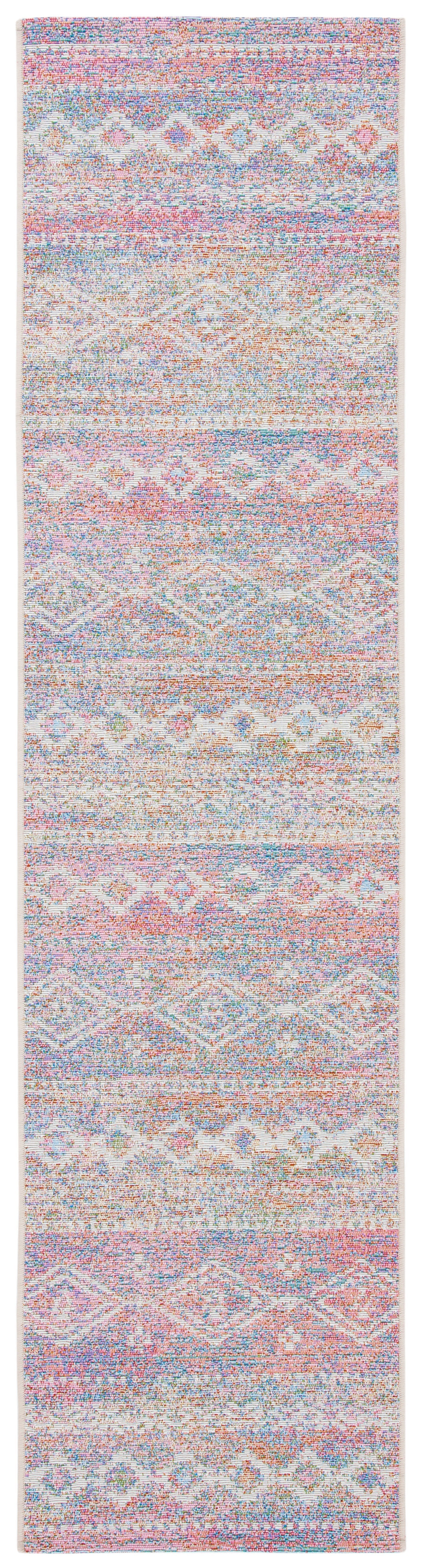 Designed in the enchanting colors of Ivory and Pink, the rug presents a harmonious medley that brings a subtle yet impactful pop of color to any indoor or outdoor setting. With a comfortable pile height of 1/4", it provides a smooth transition between spaces without being a trip hazard. The intricate patterning, depicted on the rug, showcases a delightful mosaic of hues and designs that encapsulate both traditional and contemporary aesthetics ? making it a versatile centerpiece for your hallway, kitchen, patio, or any narrow space in need of a decorative touch.