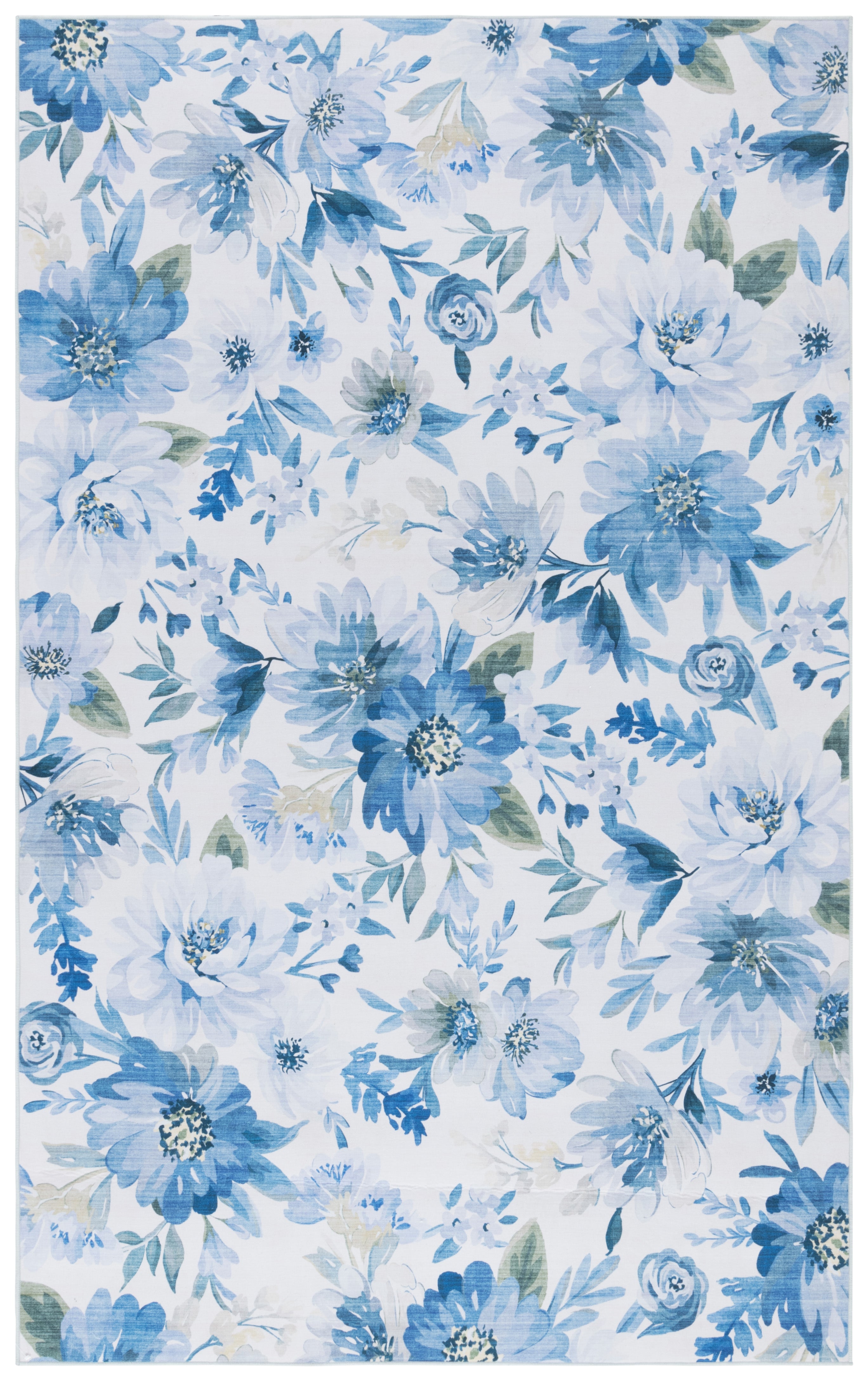 Exquisitely designed with a washable and slip-resistant surface, this runner is not only a visual delight but also caters to practical needs for high-traffic areas. Made in China, this rug boasts a serene palette of light blue and blue hues, forming a graciously composed floral pattern that blooms across the rug, bringing a sense of tranquility and refinement to any room.