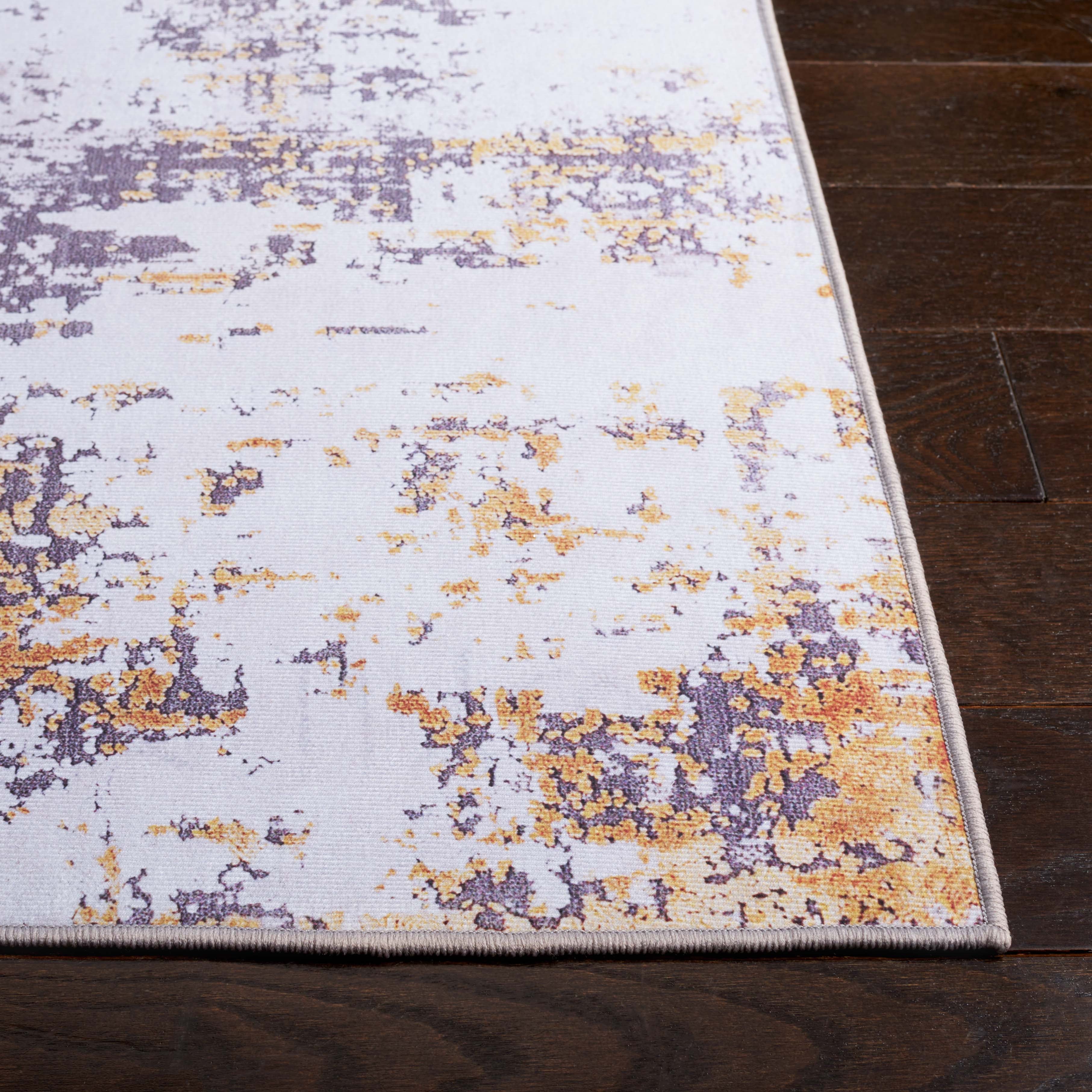 The plush yet low-profile construction, standing at an ideal height of 1/8", offers a sleek look and is superbly soft underfoot, bringing comfort and luxury to any room. Adorned with an abstract, artistic fusion of grey and rich gold hues, this rug captures the essence of contemporary style while offering versatility to compliment a variety of decor themes.