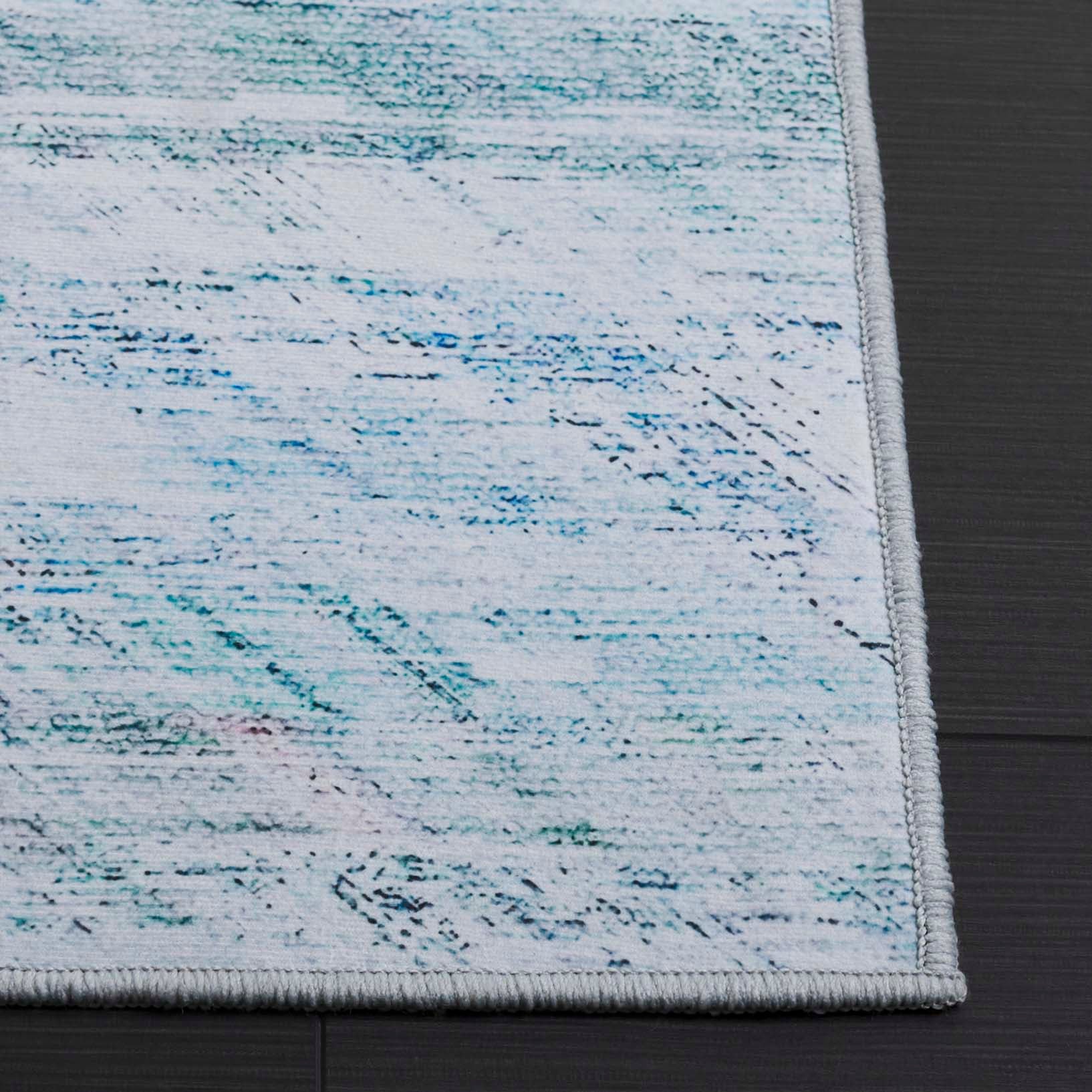 Featuring an exquisite pattern with harmonious grey and aqua tones, this rug captures the essence of traditional designs while providing a fresh pop of color. The washable material makes it a practical addition to high-traffic areas or spaces prone to spills and messes. Plus, the slip-resistant backing ensures it stays in place, providing both safety and style.