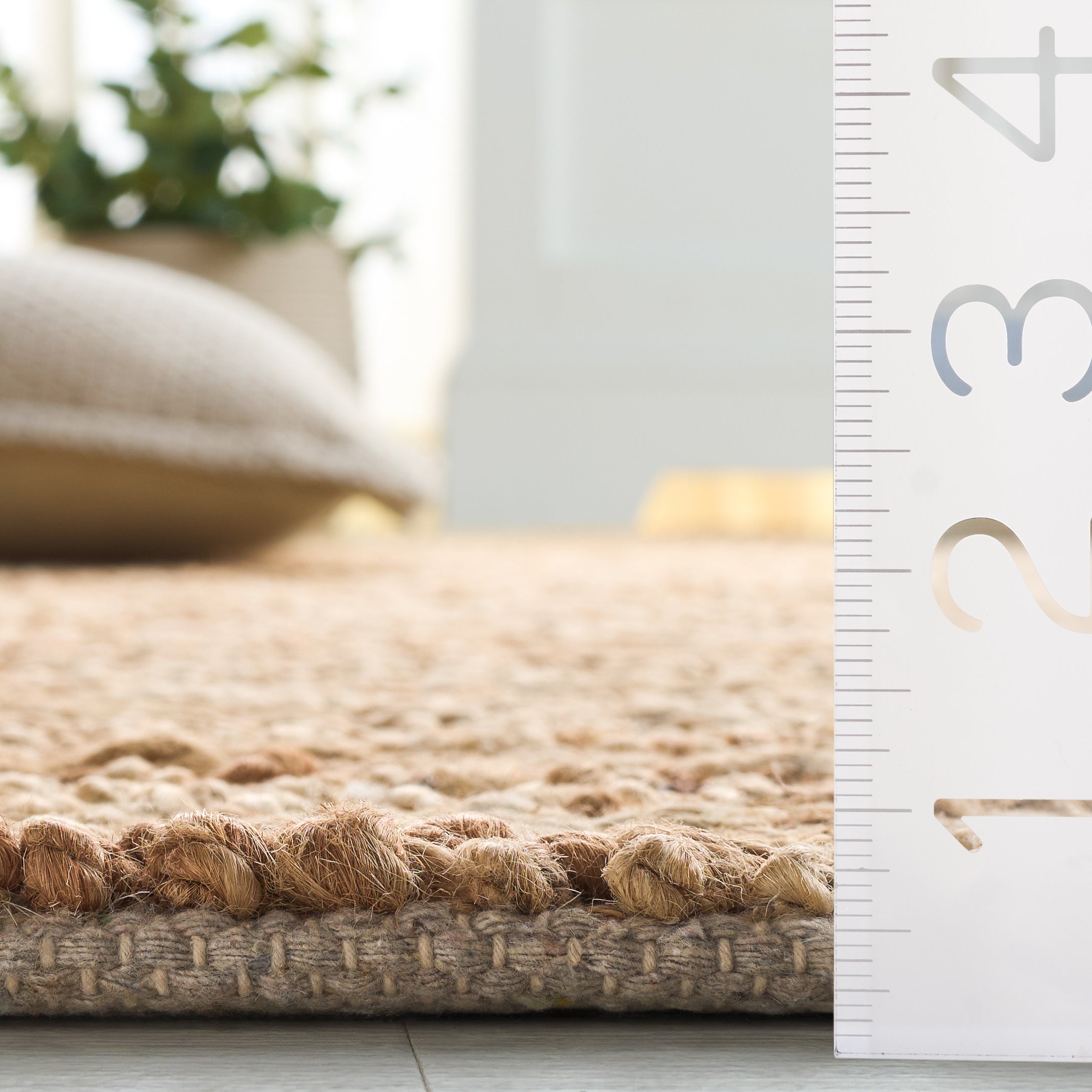Step into the warm, inviting feel of this beautifully hand loomed Area Rug. Its shape perfectly fits any spaces in your home. Fashioned in the rich traditions of Indian craftsmanship, each rug is skillfully constructed with 80% Jute and 20% Cotton, resulting in a height of 3/8 inches that is at once robust and soft underfoot. This durable and exquisite rug will bring a natural touch to your floors, and evoke an earthy, tranquil aura in your living space. This fabulous piece is not just a rug, but an expression of culture and craftsmanship from the lush valleys of India. Add this alluring piece to your home, and experience the harmony of nature and design in your decor.