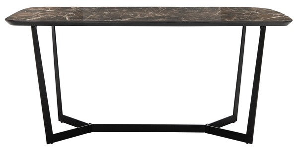 A stylish study in decorative depth, this Britta Dining Table abounds with eye-catching dimension. The subtly inverted angles of Britta's open black frame evoke an intriguing sense of motion that makes you look twice, and the rounded corners of its marble-finished ceramic top further punctuate Britta's modern sculptural look.