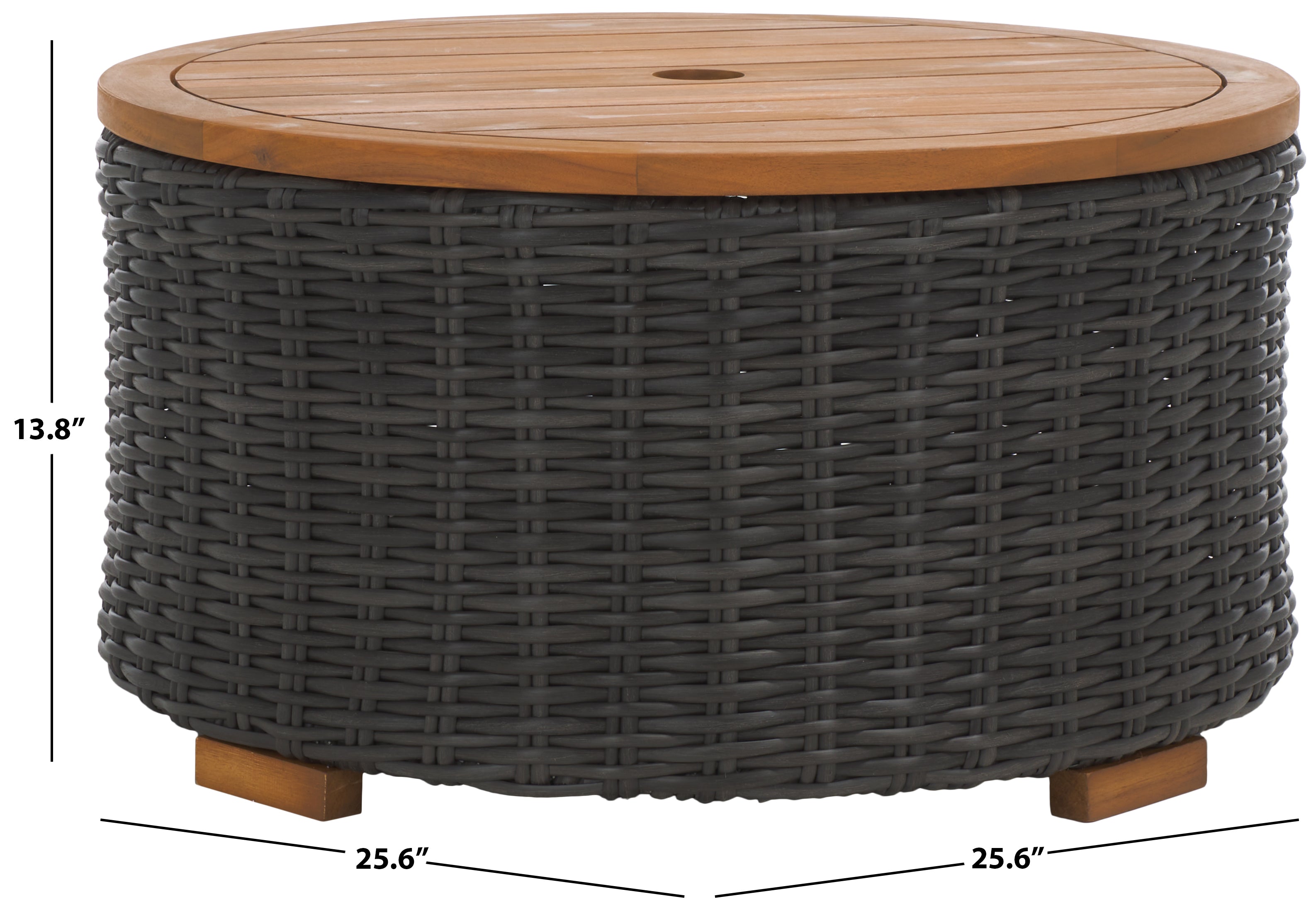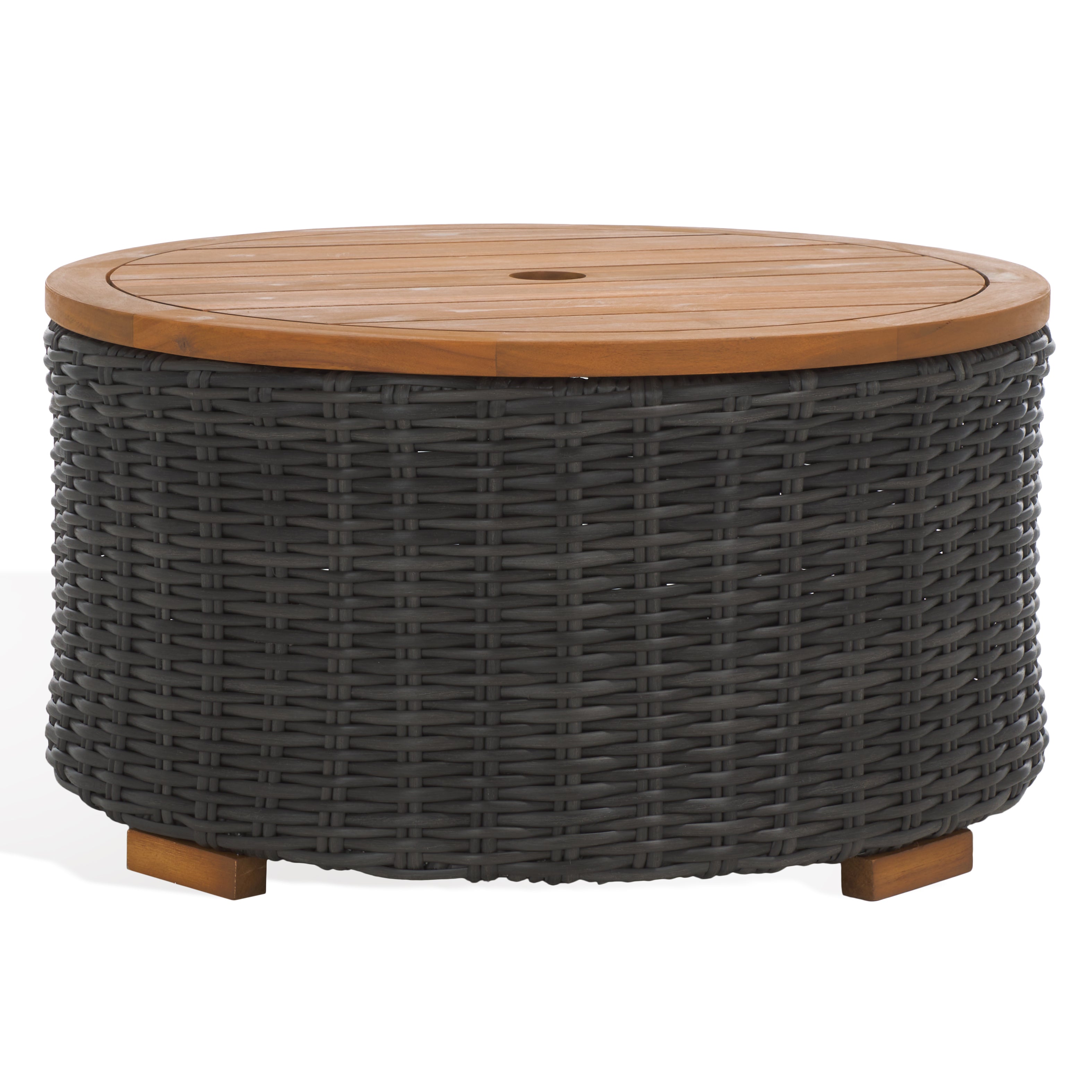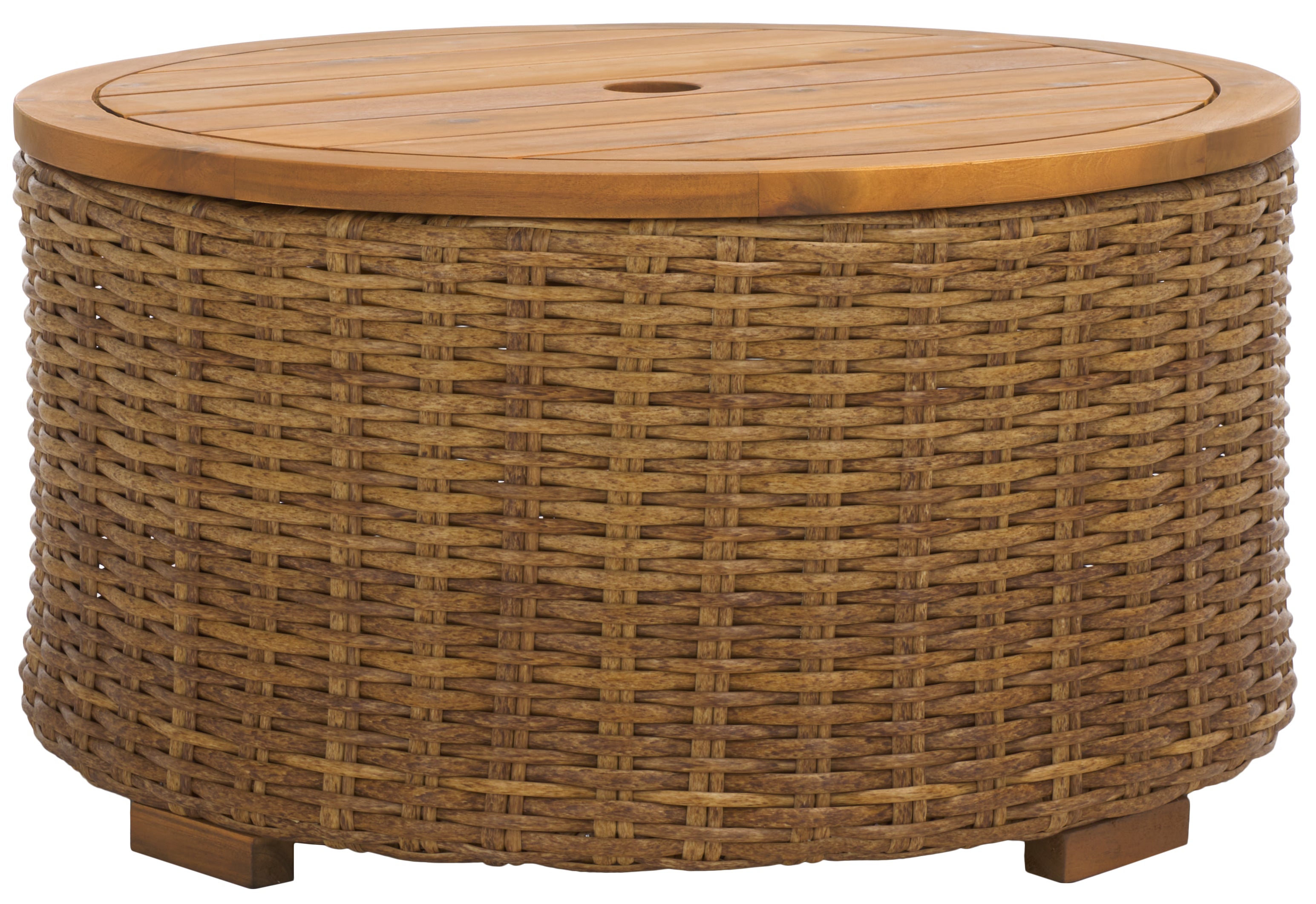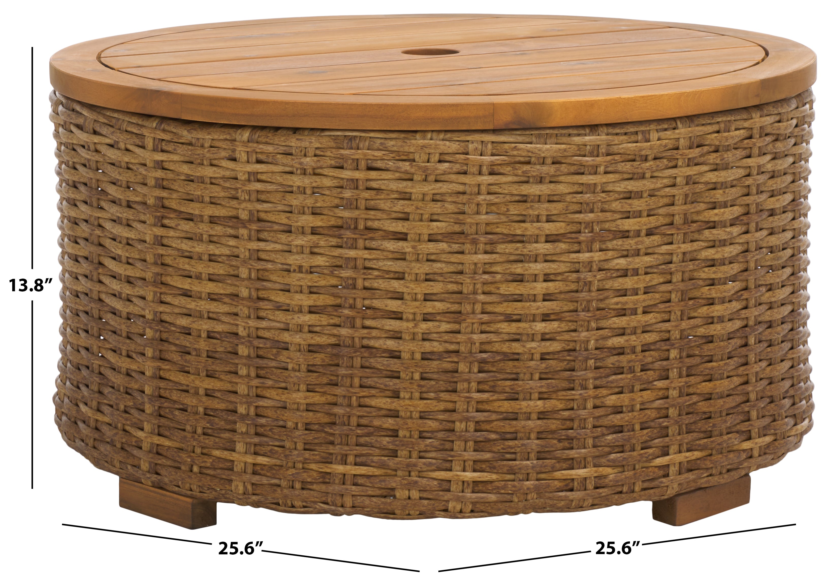 Give a chic and elegant update to your patio with our Anguilla outdoor coffee table. Our coffee table brings textural warmth and practical appeal to any outdoor space. An all-weather wicker weave lends breezy sophistication to the table. Its perfectly rounded tabletop is crafted from acacia with a stunning slatted detail. The tabletop can be removed to provide storage for dumping your coasters, throw pillows, and other essentials. Perched upon powder-coated legs, our coffee table can serve as an elegant and practical centerpiece for your patio, terrace, or sunroom.