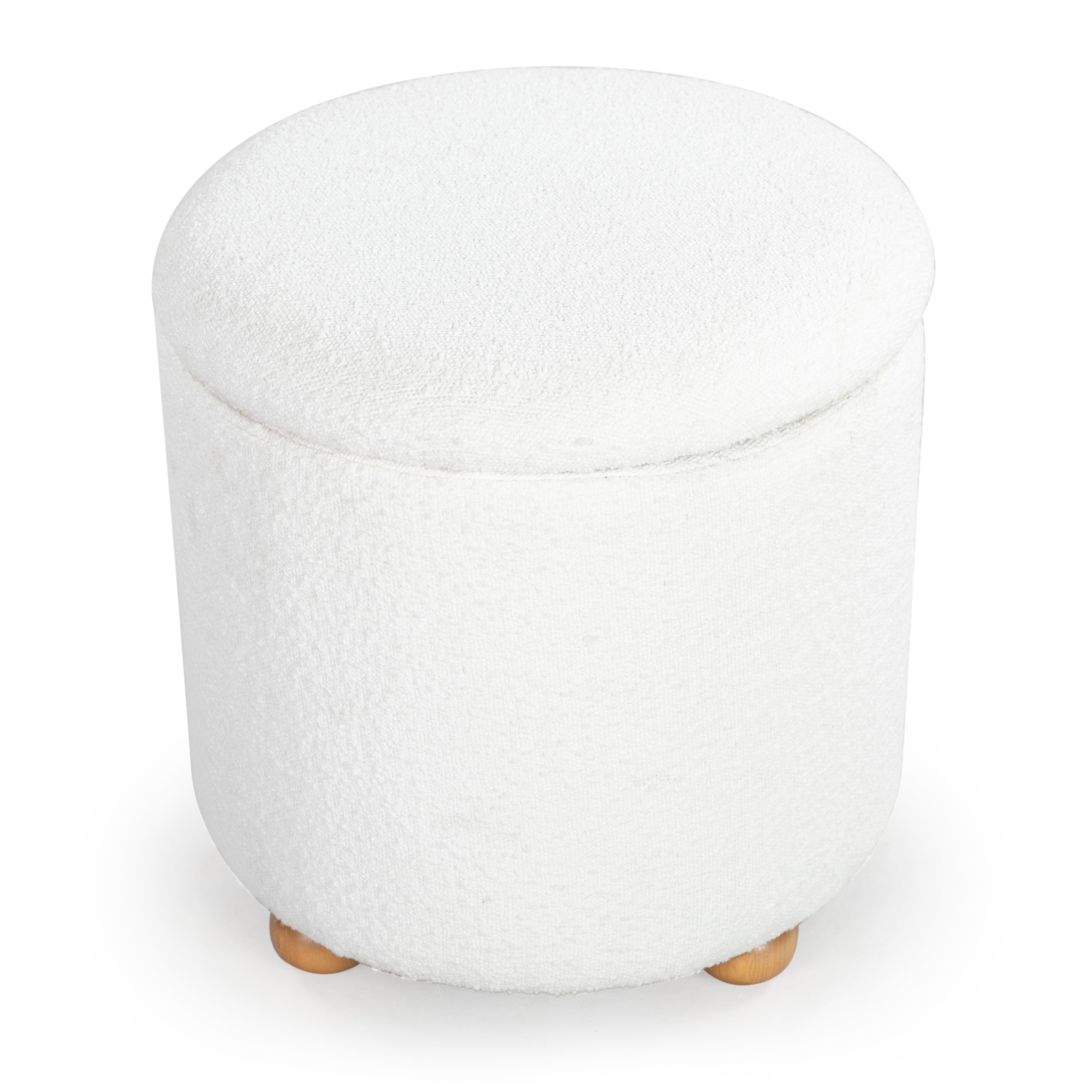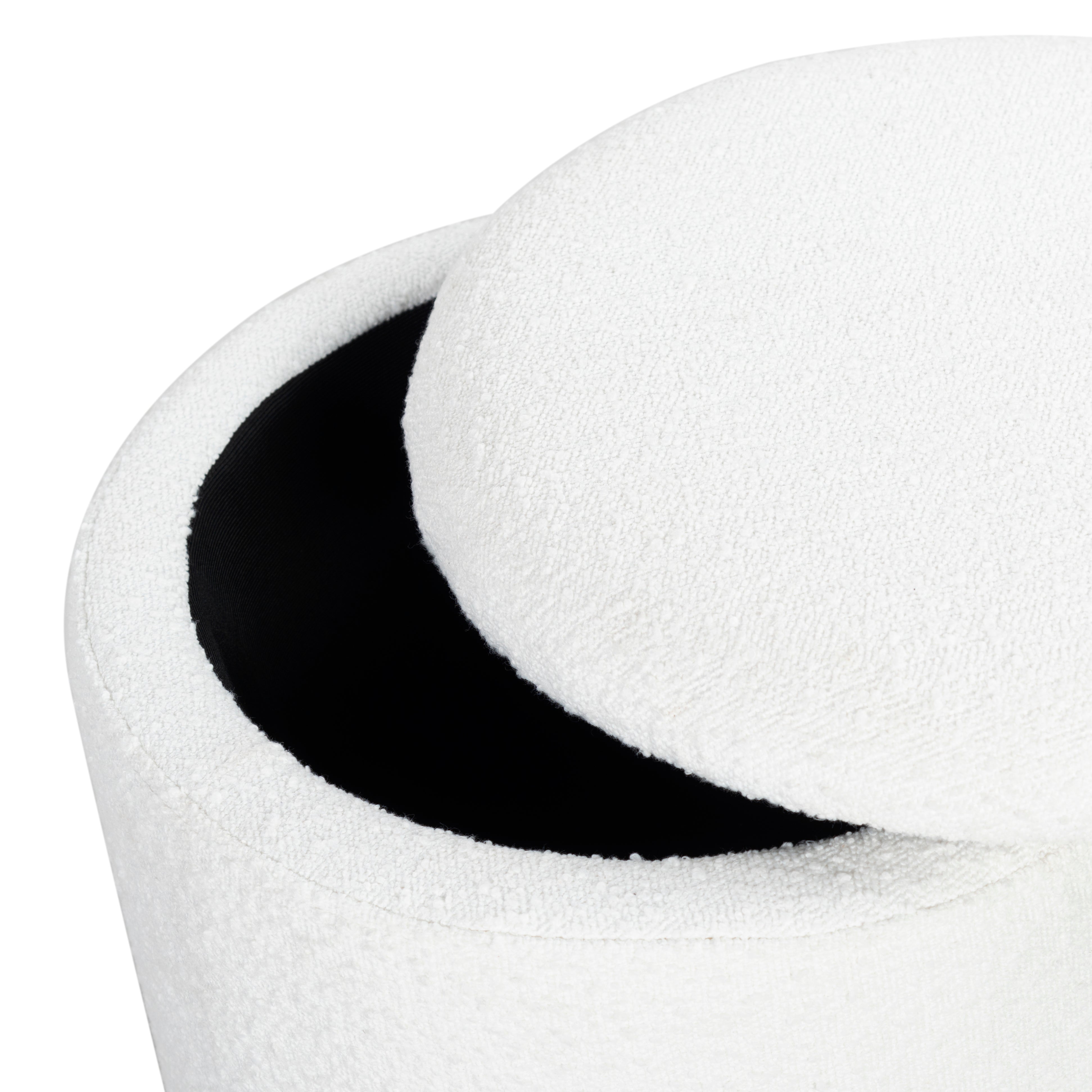 Indulge in an Ottoman that combines practical storage space and rich, elegant design. Upgrade your home decor with the Becka Round Boucle Storage Ottoman today, and let style and functionality go hand in hand!