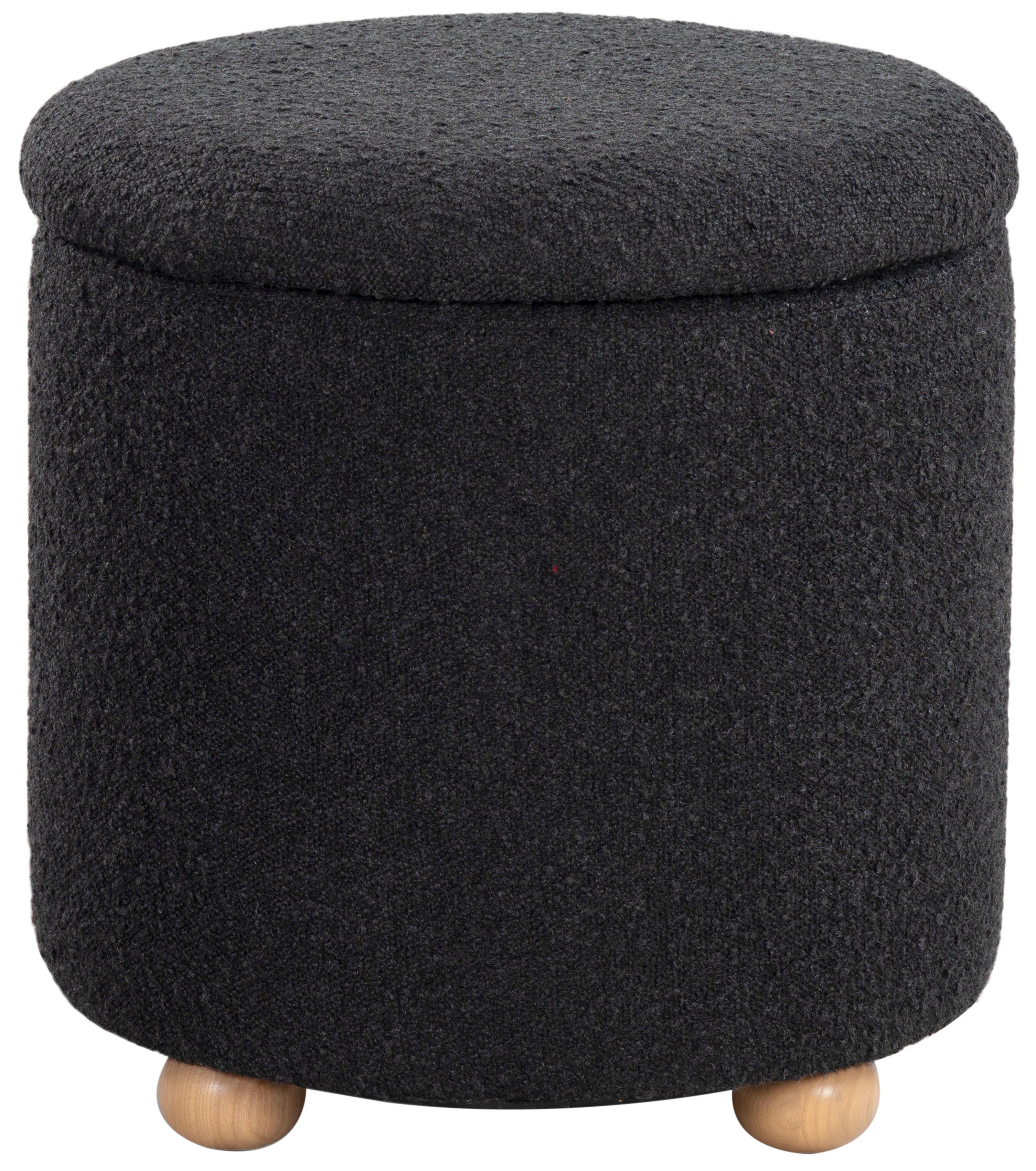 Introducing the Becka Round Boucle Storage Ottoman - a beautifully crafted furniture piece, that's not just perfect for your home style but also makes for ultimate storage convenience. This piece is available in an elegant combination of black and natural hues, adding a touch of class and sophistication to any room.