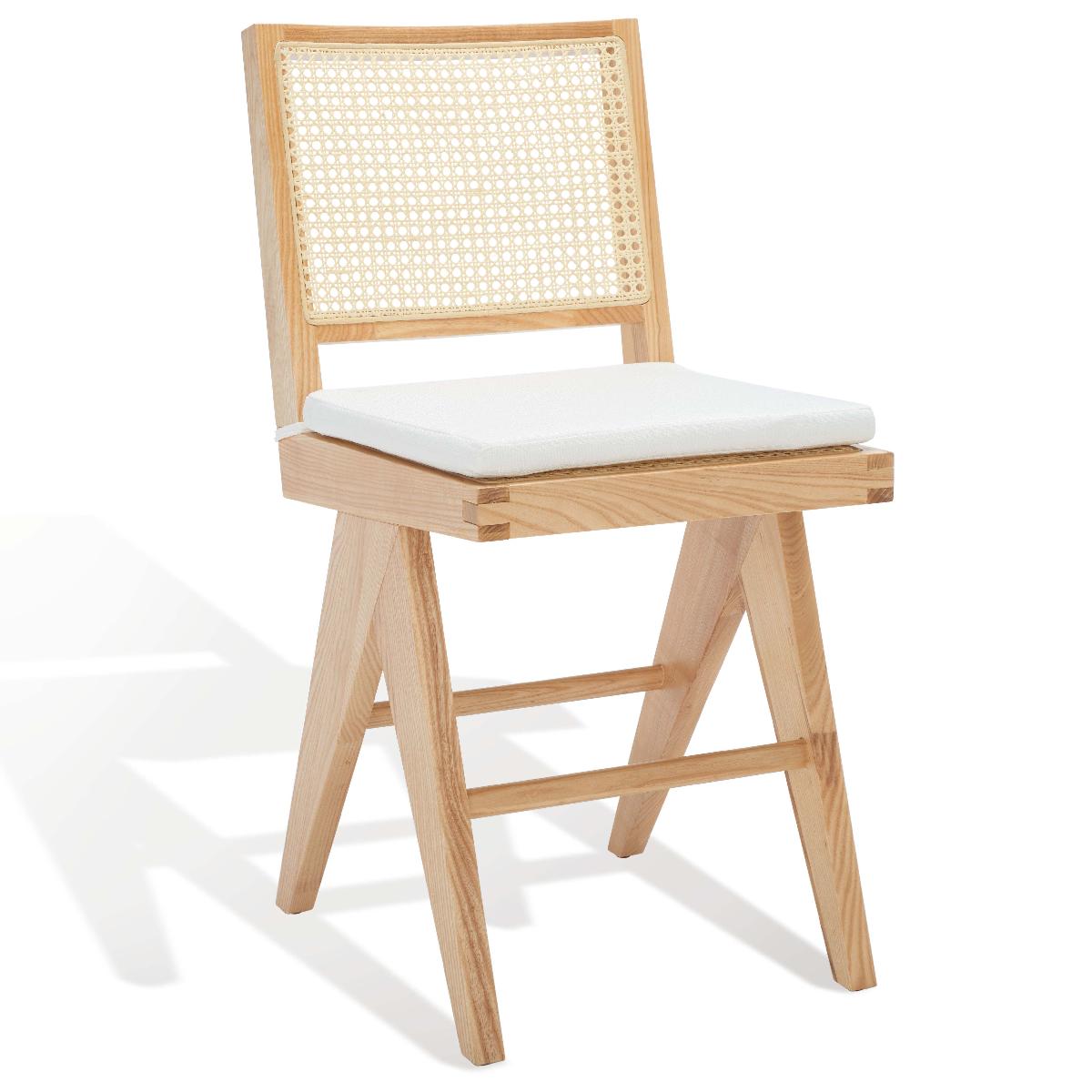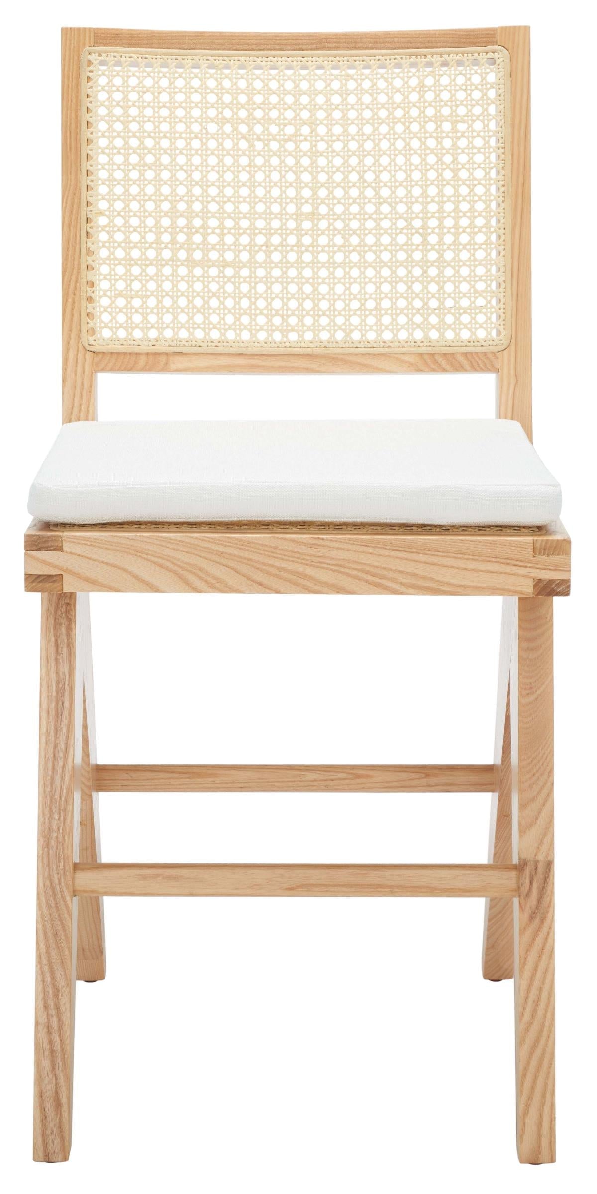 Create a relaxed and casual vibe with our Colette counter stool. Our sleek and clean-lined stool receives a relaxed upgrade with rattan mesh upon the back. Expertly crafted with solid ash wood, the stool is elevated with a modern finish. It features a generously padded white boxy cushion to deliver supreme comfort. Light, airy, and refined, the counter stool brings casual and elegant style to your kitchen counter or high dining areas.