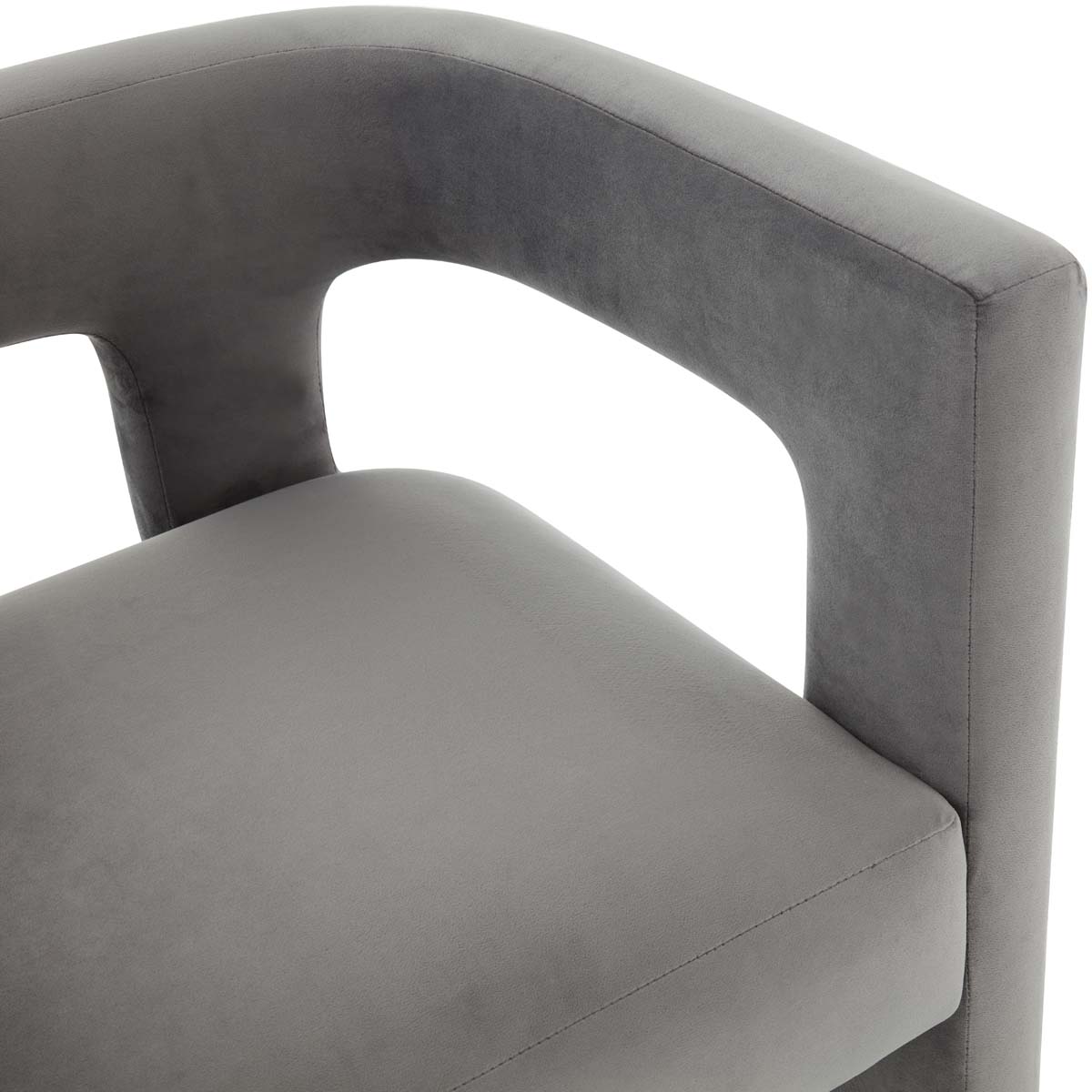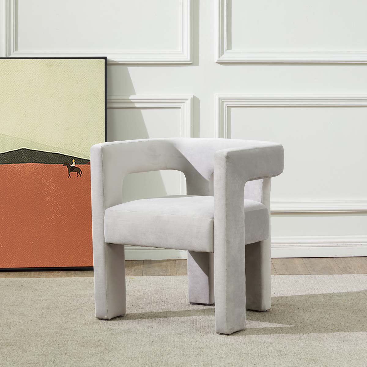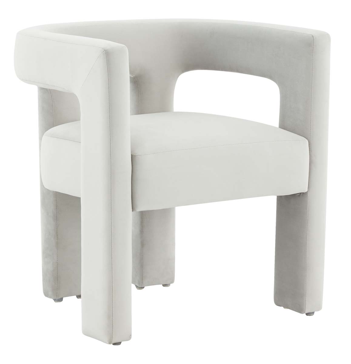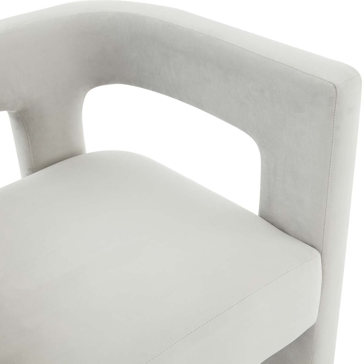 Give your decor a thrilling update with the Deandre Dining Chair. Overflowing with visual depth and modern artistic intrigue, Deandre's plush light velvet spotlights its eye-catching silhouette, making it a bold designer favorite.