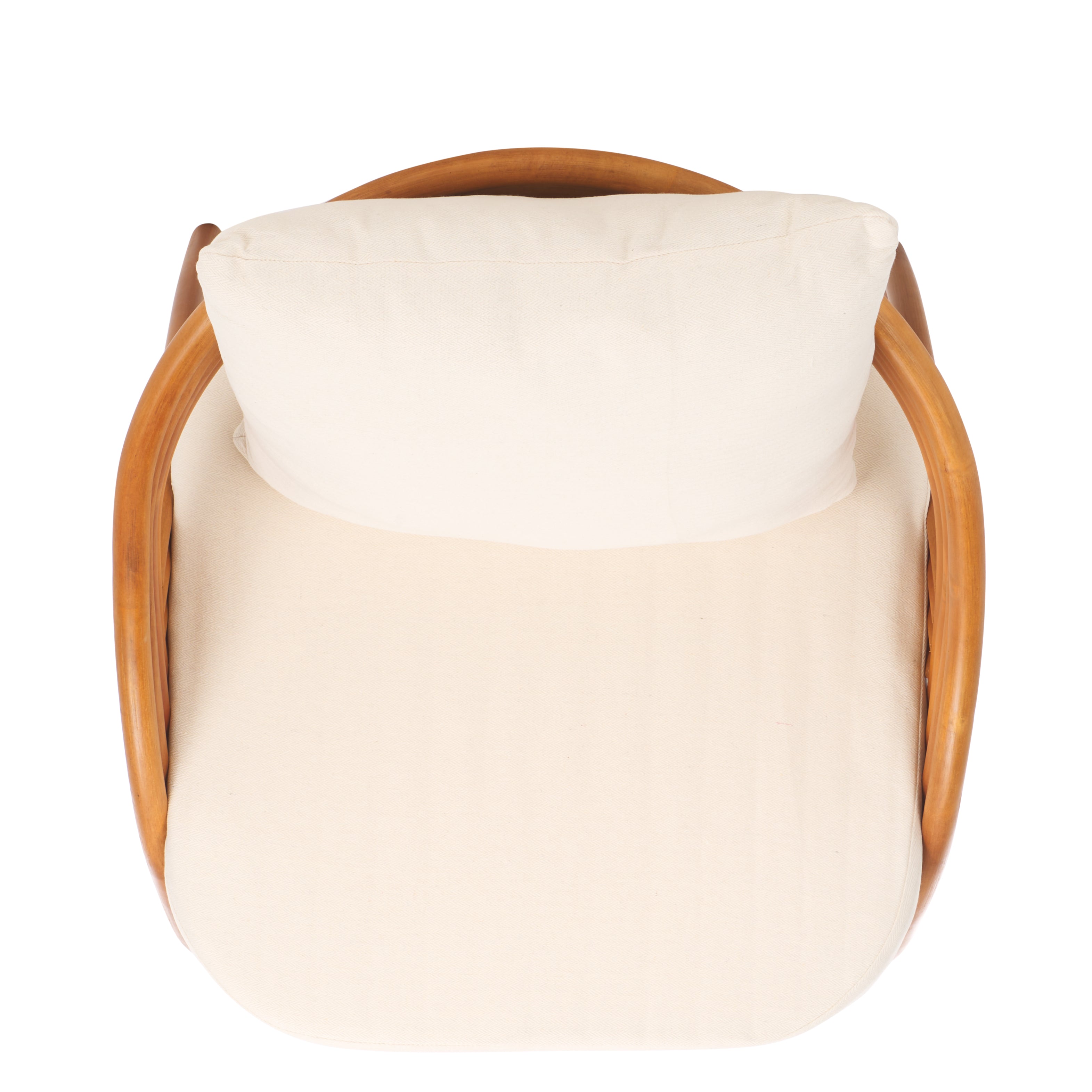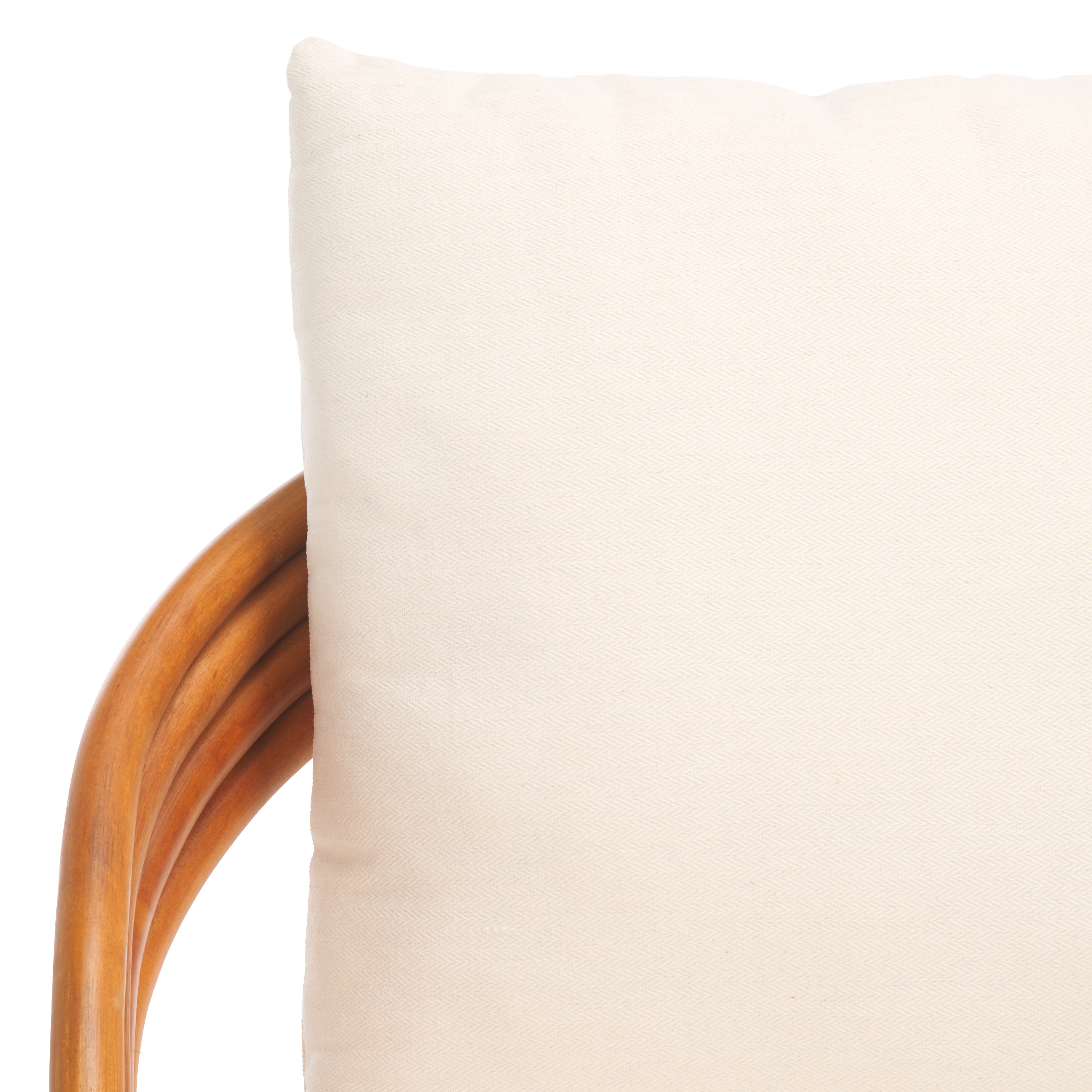 Liven up any corner with the eye-catching grace and warmth of our Demarco accent chair. Meticulously crafted from rattan, our accent chair stands out with its striking curves and minimalistic profile. The curved back and seamlessly flowing arms and legs lend sculptural poise to the chair. Showcasing the natural warmth of rattan, our accent chair complements a wide variety of styles. Its padded seat and cushion are covered in white linen to offer lasting comfort and style to your lounge, bedroom, or study.