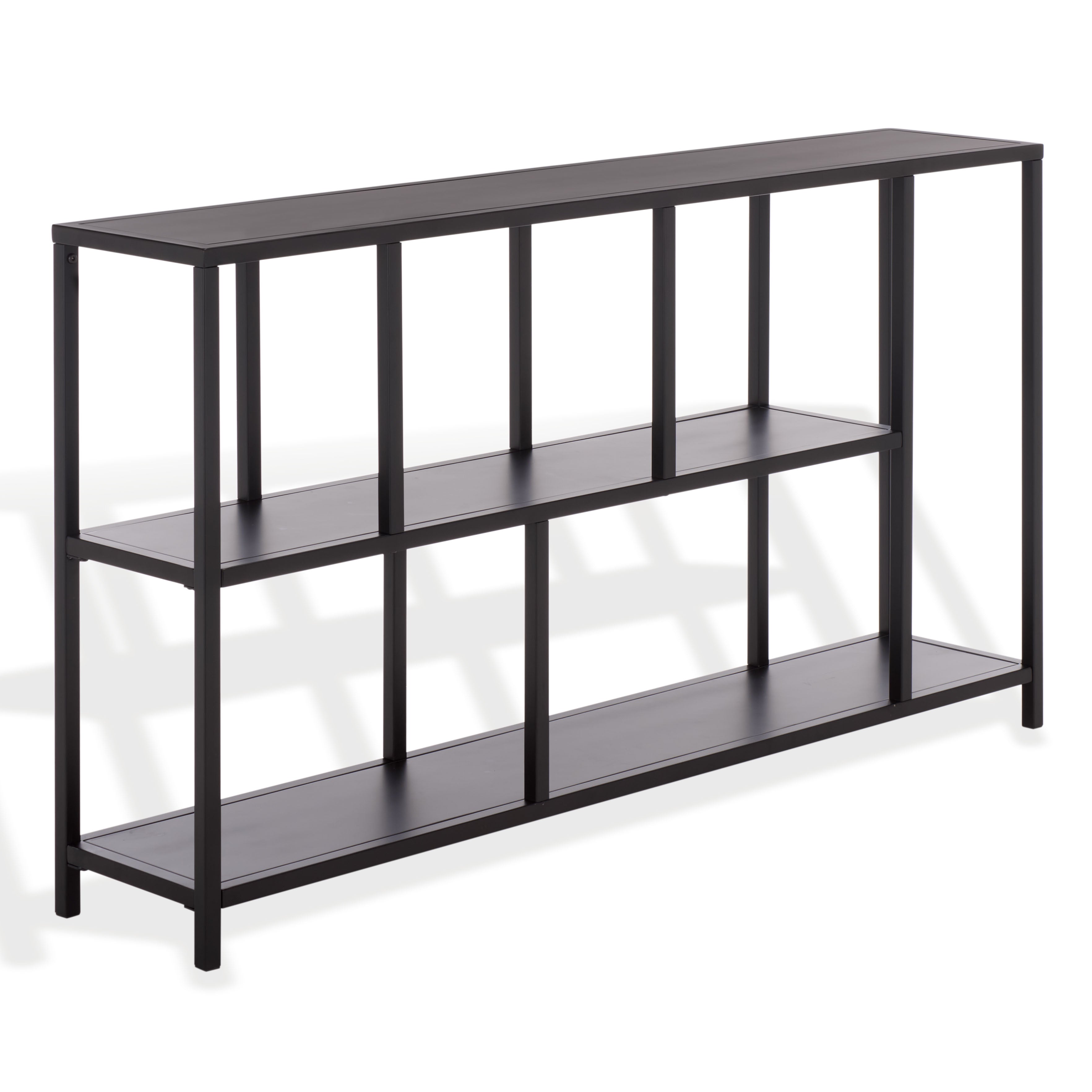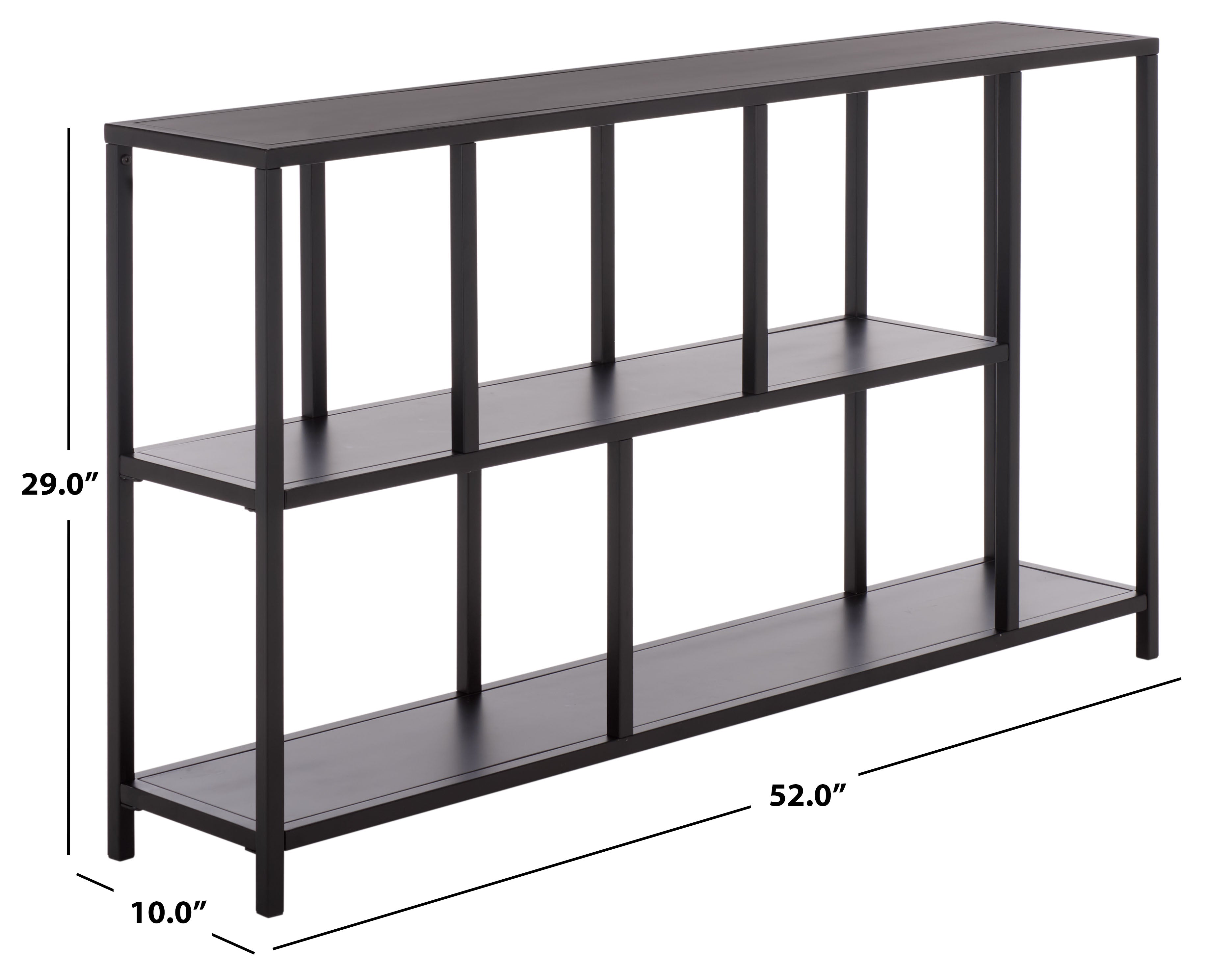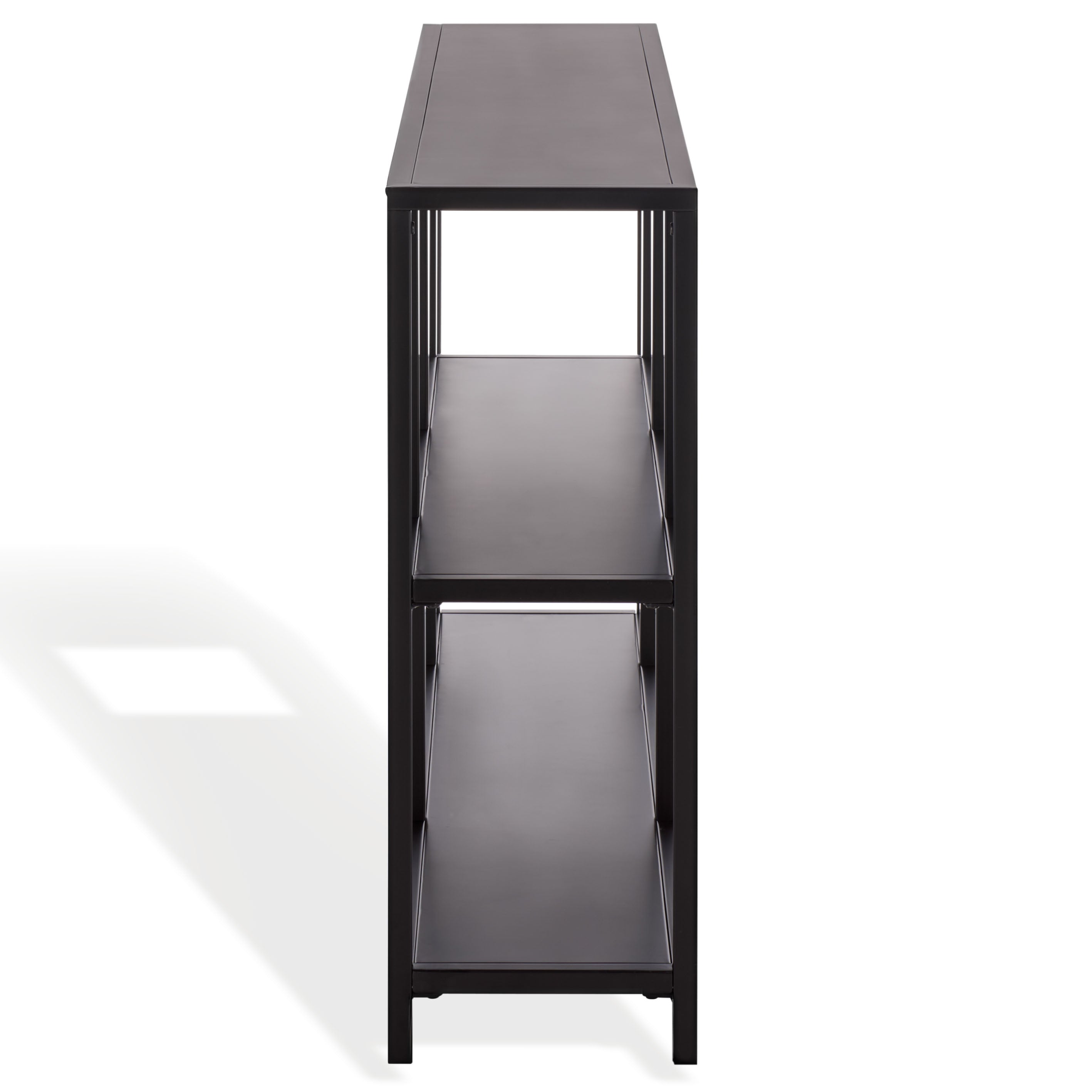 Introducing the Hodge Metal Console Table with 3 shelves, an epitome of minimalist design and optimal functionality. Crafted from robust iron, it boasts a sleek black finish that is sure to elevate your home decor. This console table offers three spacious shelves, perfect for displaying your favorite accessories or storing essentials. The solid iron construction offers stability and sturdiness. This is not just a table; it's an addition to your lifestyle, bringing elegance and versatility to any space. Upgrade your space today with the stylish and practical Hodge Metal 3 Shelf Console Table. Experience the blend of functionality and aesthetics.