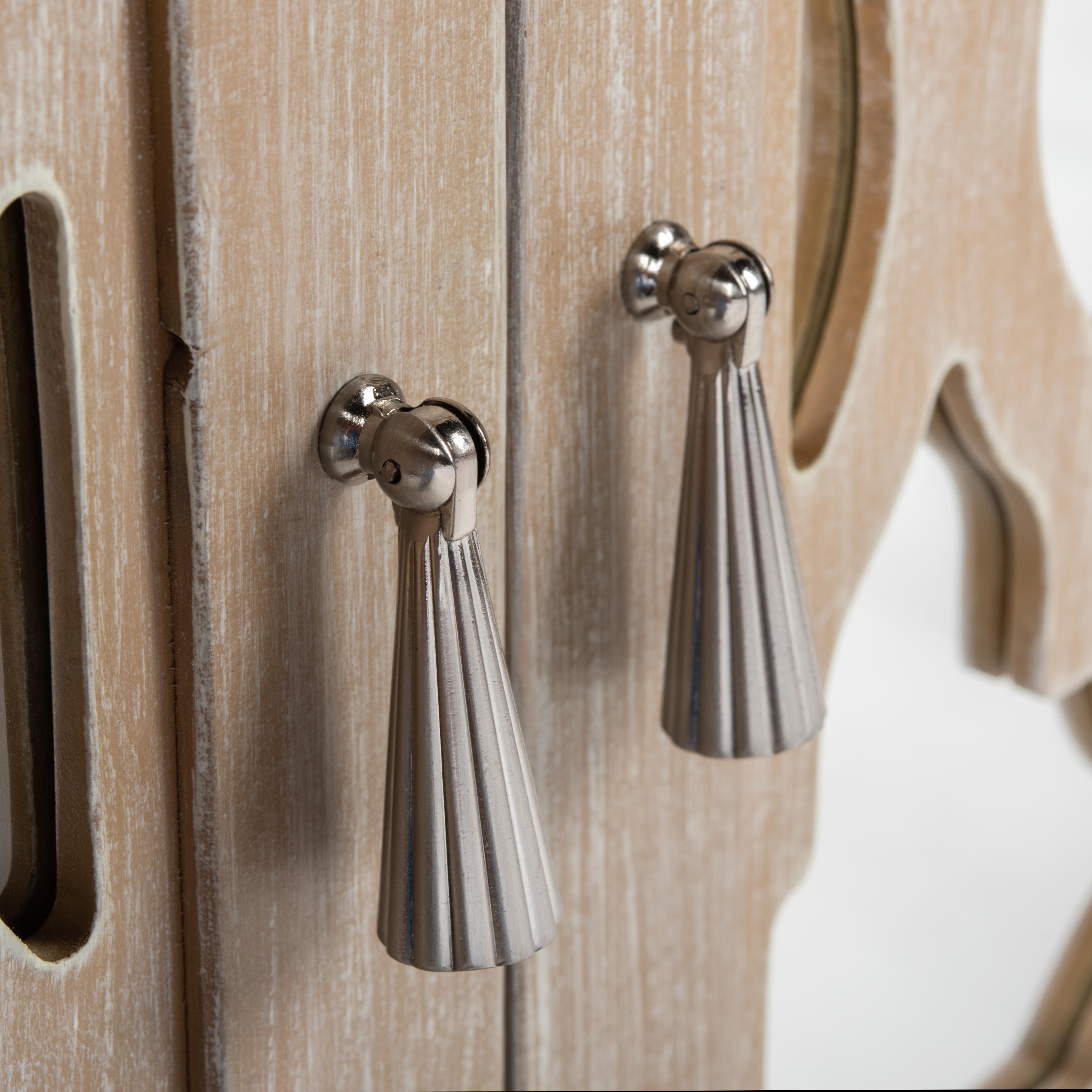 Introducing the Juliette mirrored sideboard in a striking finish. This stylish piece blends the charm of acacia solid and mdf with the sleek touch of poly detailing. The tones bring a subtle elegance to any space, making it a versatile addition to your home decor.