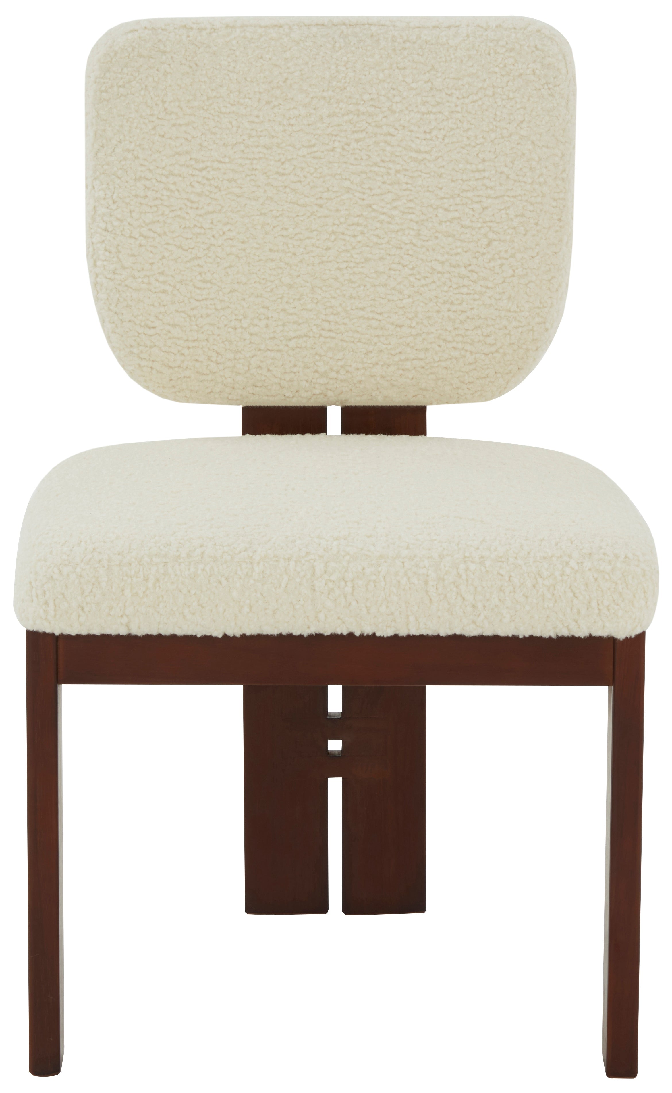 Make a classy and elegant statement with our Kat dining chair. Our modern dining chair is defined by neat proportions and a streamlined profile. The plush cushioning of the chair is wrapped in the rich textures of faux shearling. Resting upon three pinewood legs with an eye-catching back, our dining chair attains a striking and architectural presence in any corner. It adorns a classy ivory shade to effortlessly blend and complement your dining area.