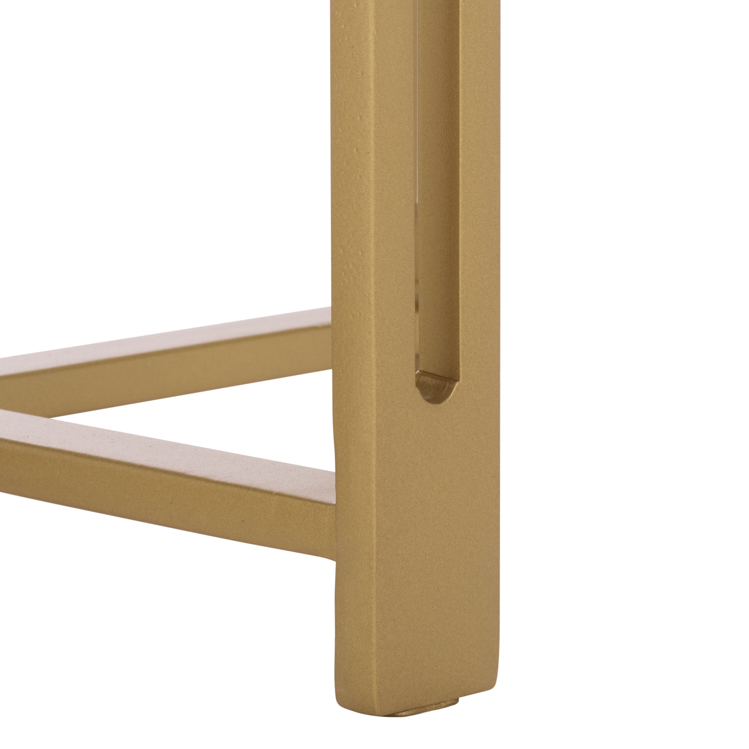 Introducing the Levitt Cast Glass Top Accent Table, a piece poised to enrich your home environment. Crafted meticulously from robust iron, this table offers unyielding durability and stability while its radiant brass finish endows your space with an opulent aesthetic. The glass top, crystal-clear, seemingly floats above the uniquely designed base, exuding an ethereal quality that truly sets this table apart. It's not only a functional piece but also a true testament to refined craftsmanship. The Levitt table is more than just furniture; it's a stylish statement that adds a touch of sophistication to any home decor. Remember, it's not about choosing any metal table, it's about choosing the right one - the Levitt Cast Glass Top Accent Table.