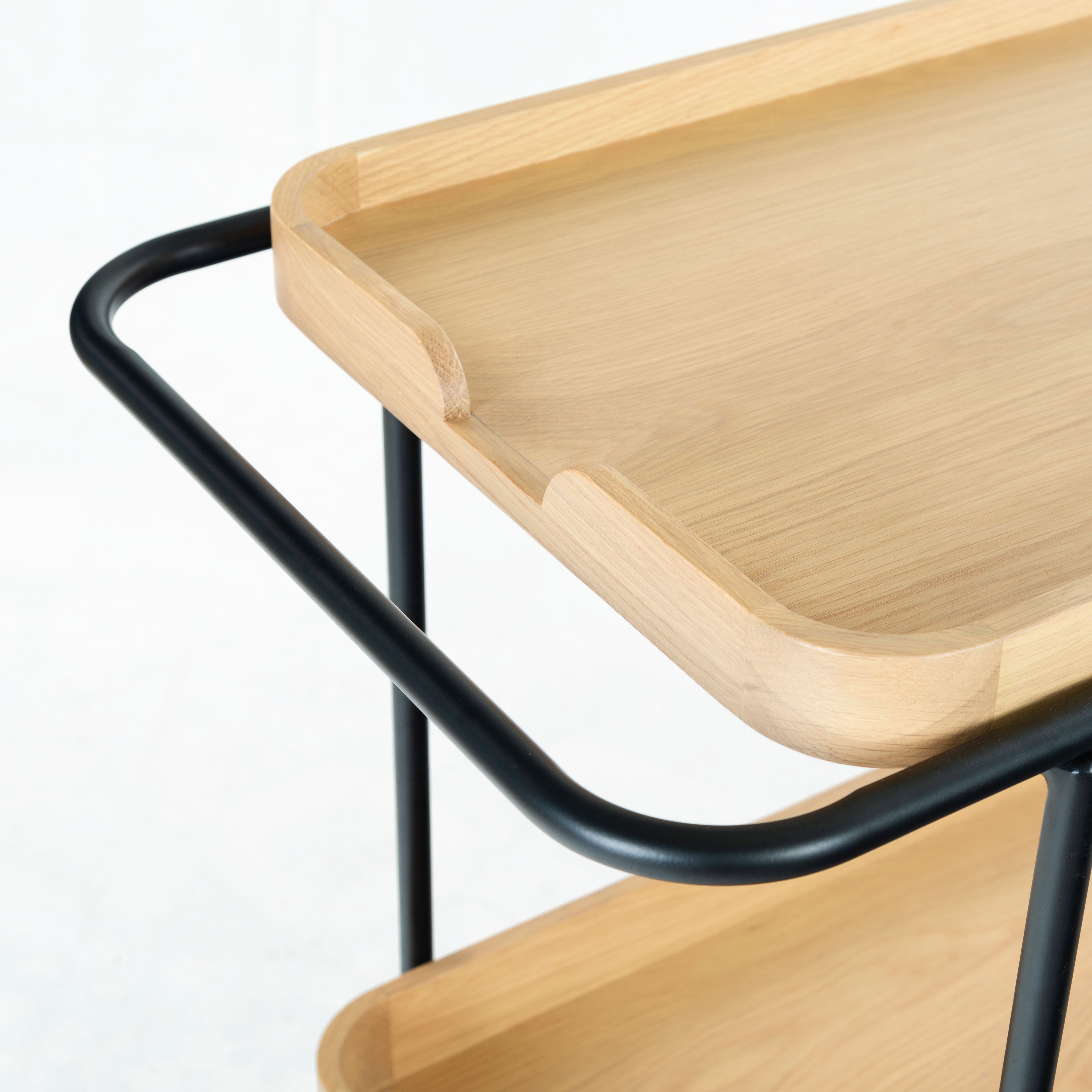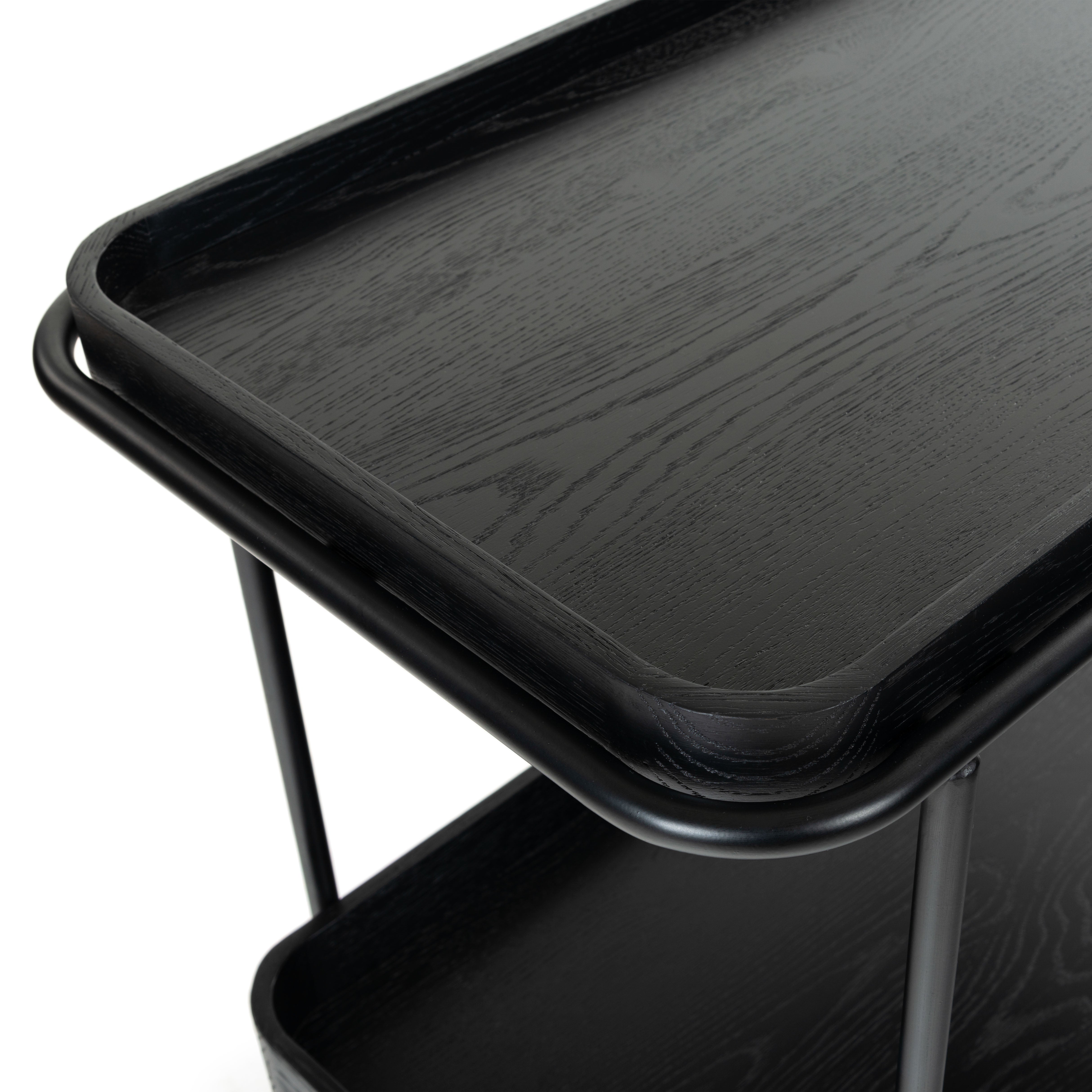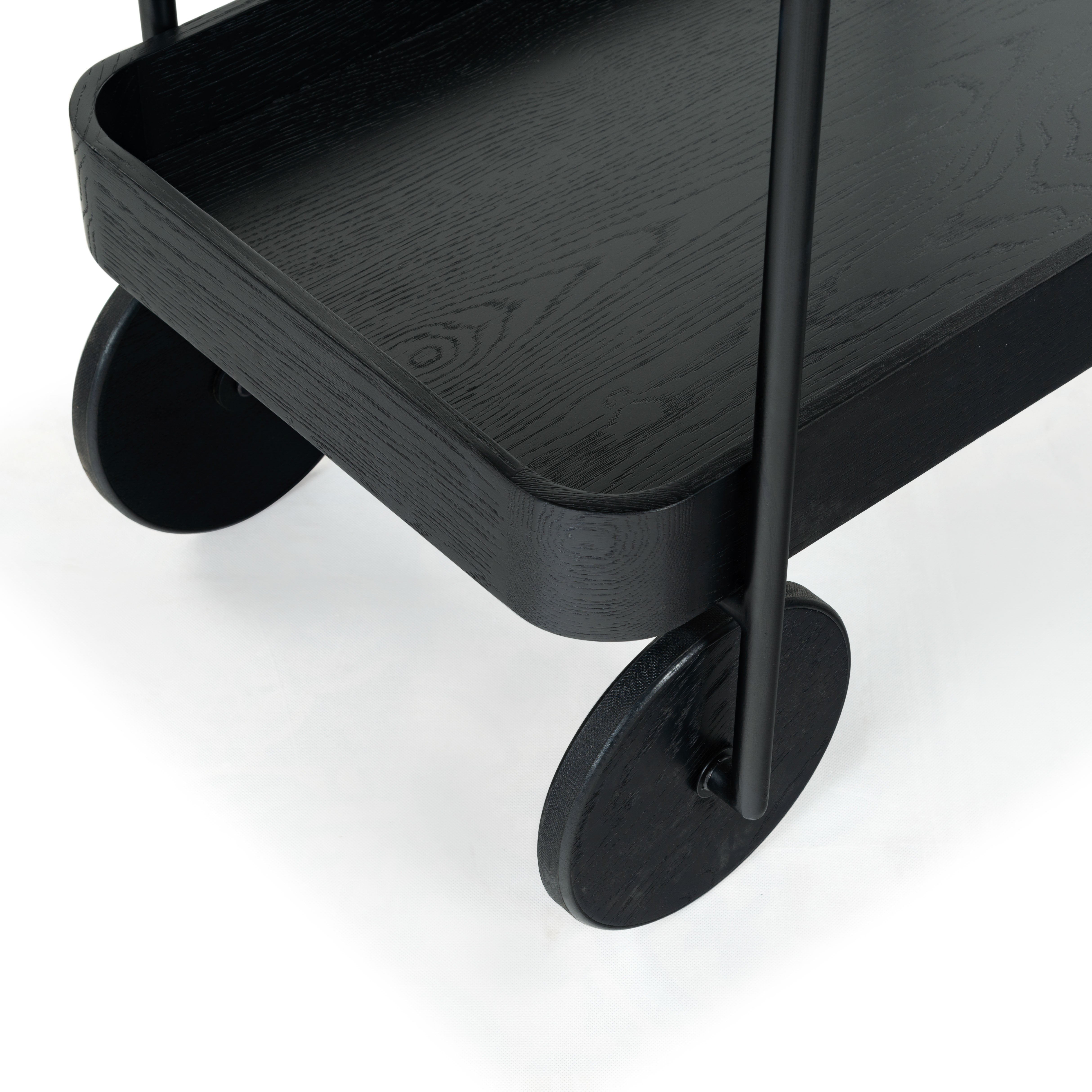 Introducing the Malek Wood and Metal 2 Shelf Bar Cart, a perfect fusion of functionality and style. With its natural and black color schemes, this bar cart exudes a minimalist and sophisticated aesthetic that complements a variety of interior decor. Constructed from sturdy oak wood and veneer, this bar cart boasts of robustness and durability. Its iron framework further adds to its sturdy build while lending a sleek, modern touch to its overall appearance. Whether you're hosting a lavish cocktail party or entertaining a few friends on a casual evening, this bar cart will not disappoint. With its ample storage and smooth rolling wheels, serving up your favorite beverages has never been easier or more stylish. Make the Malek Wood and Metal 2 Shelf Bar Cart an integral part of your social gatherings and let the good times roll.