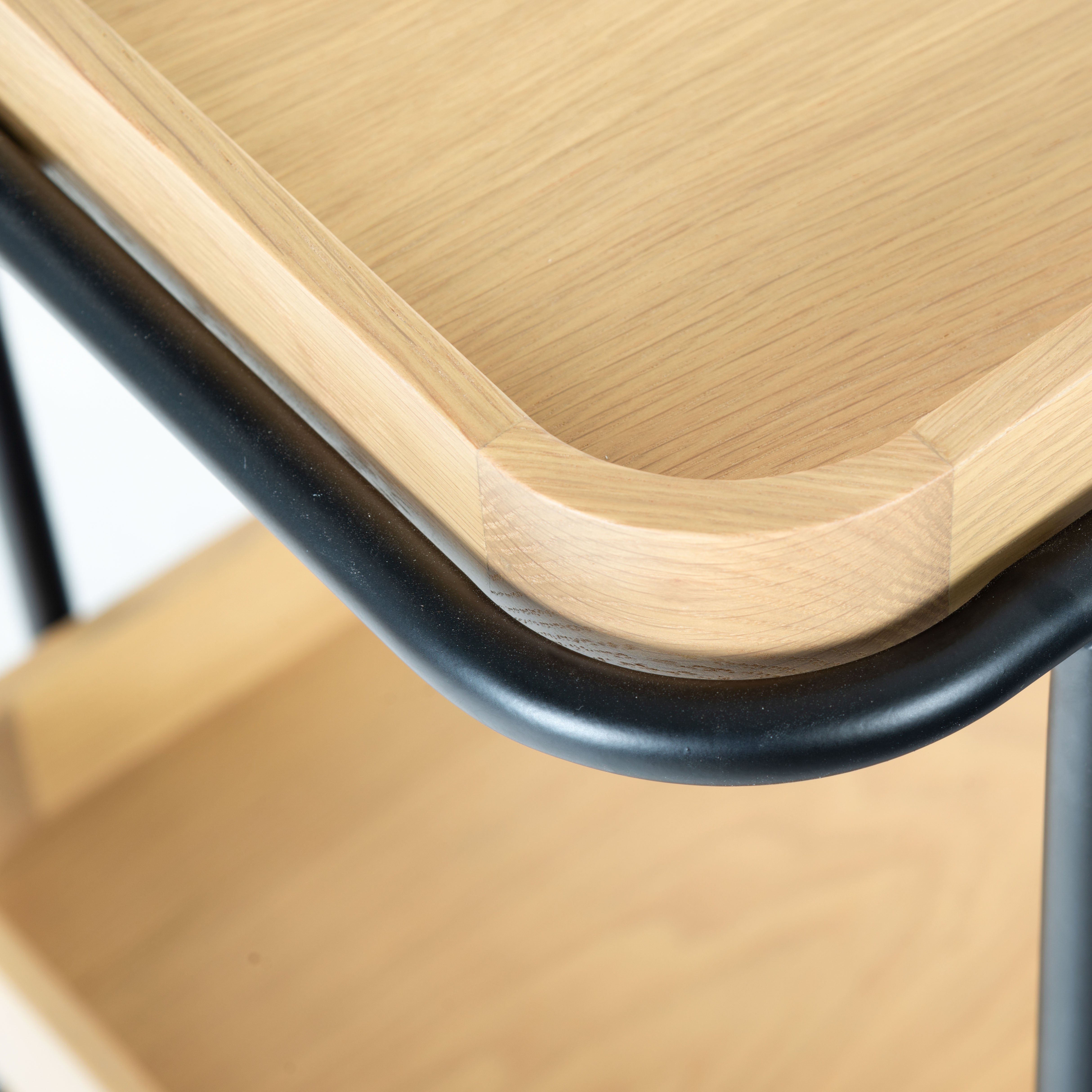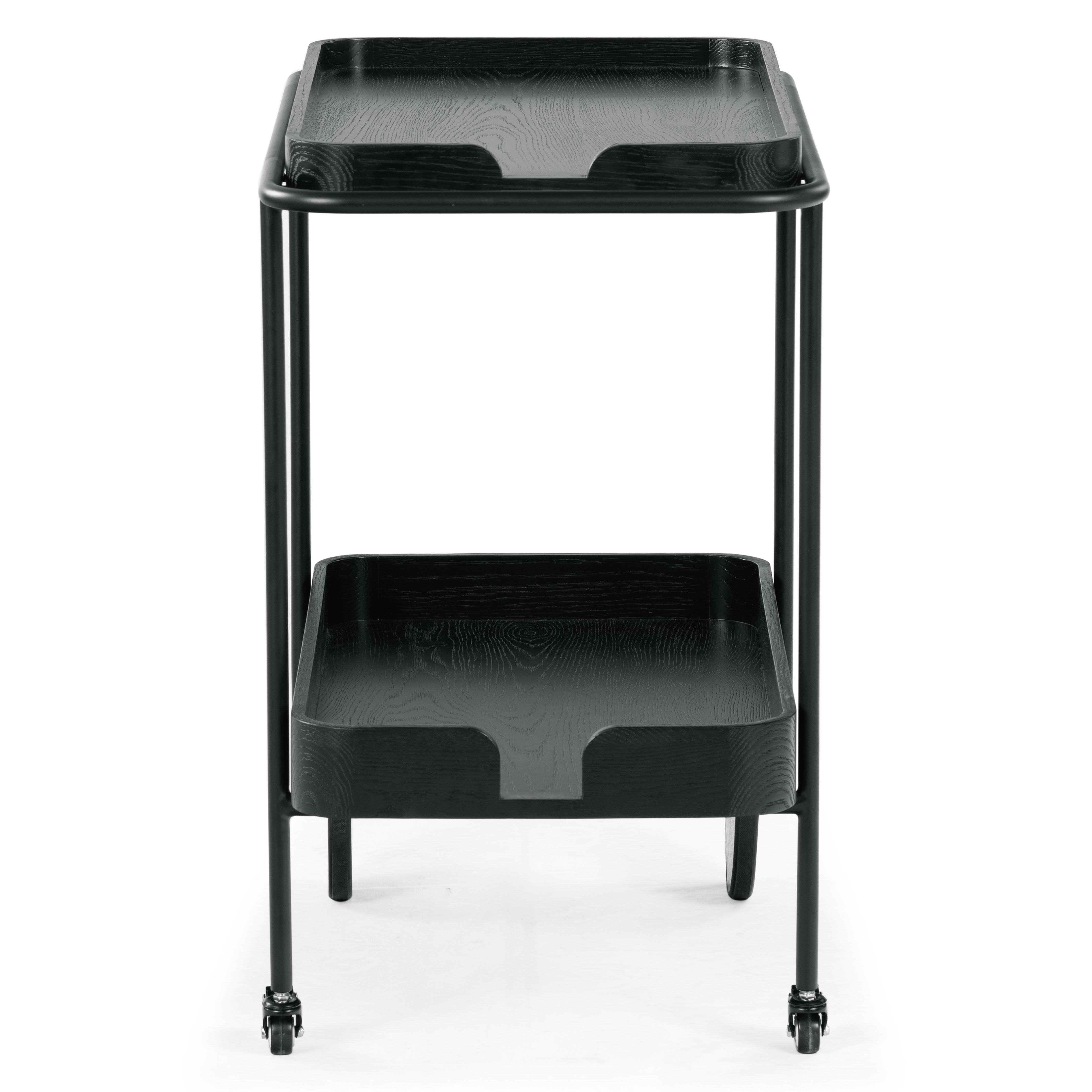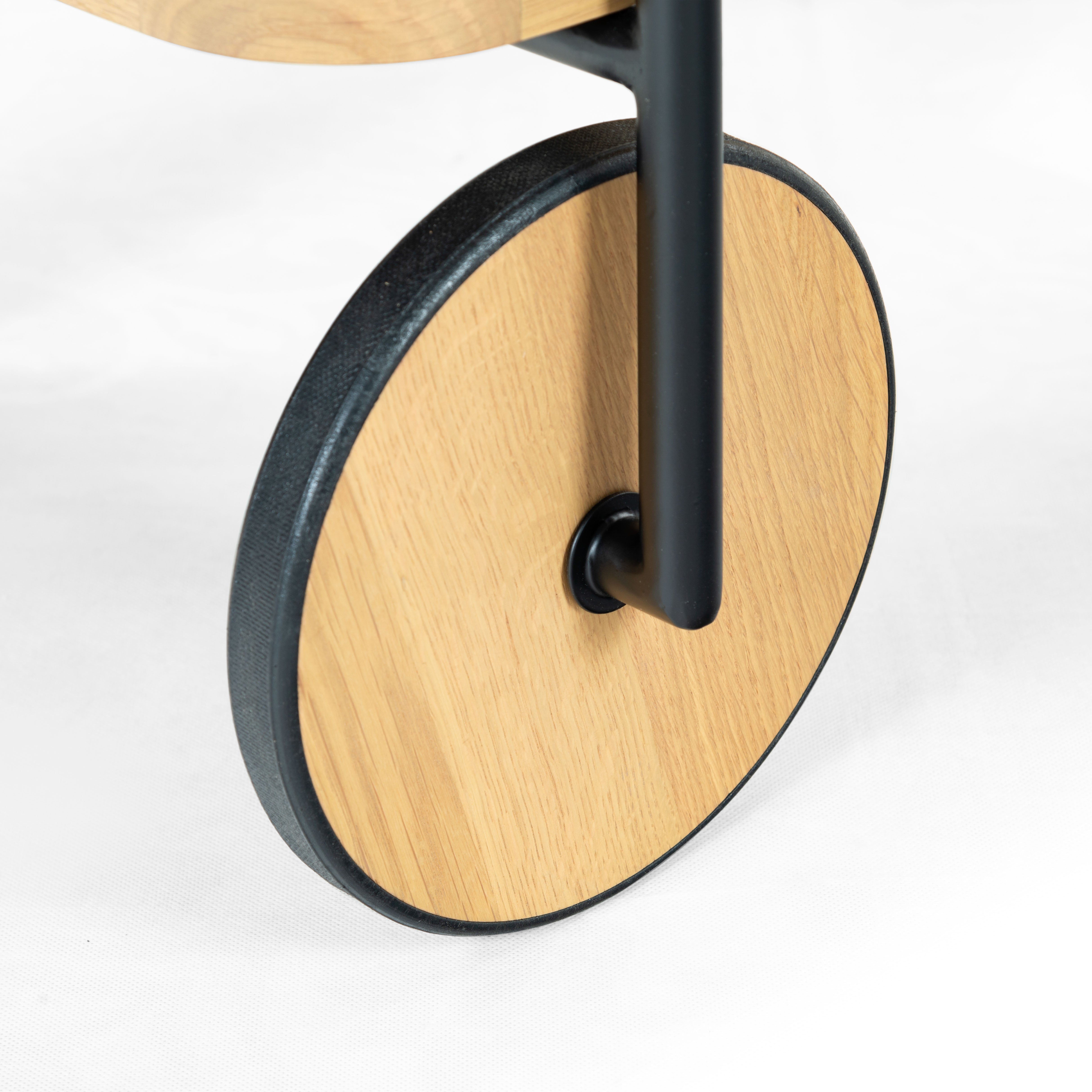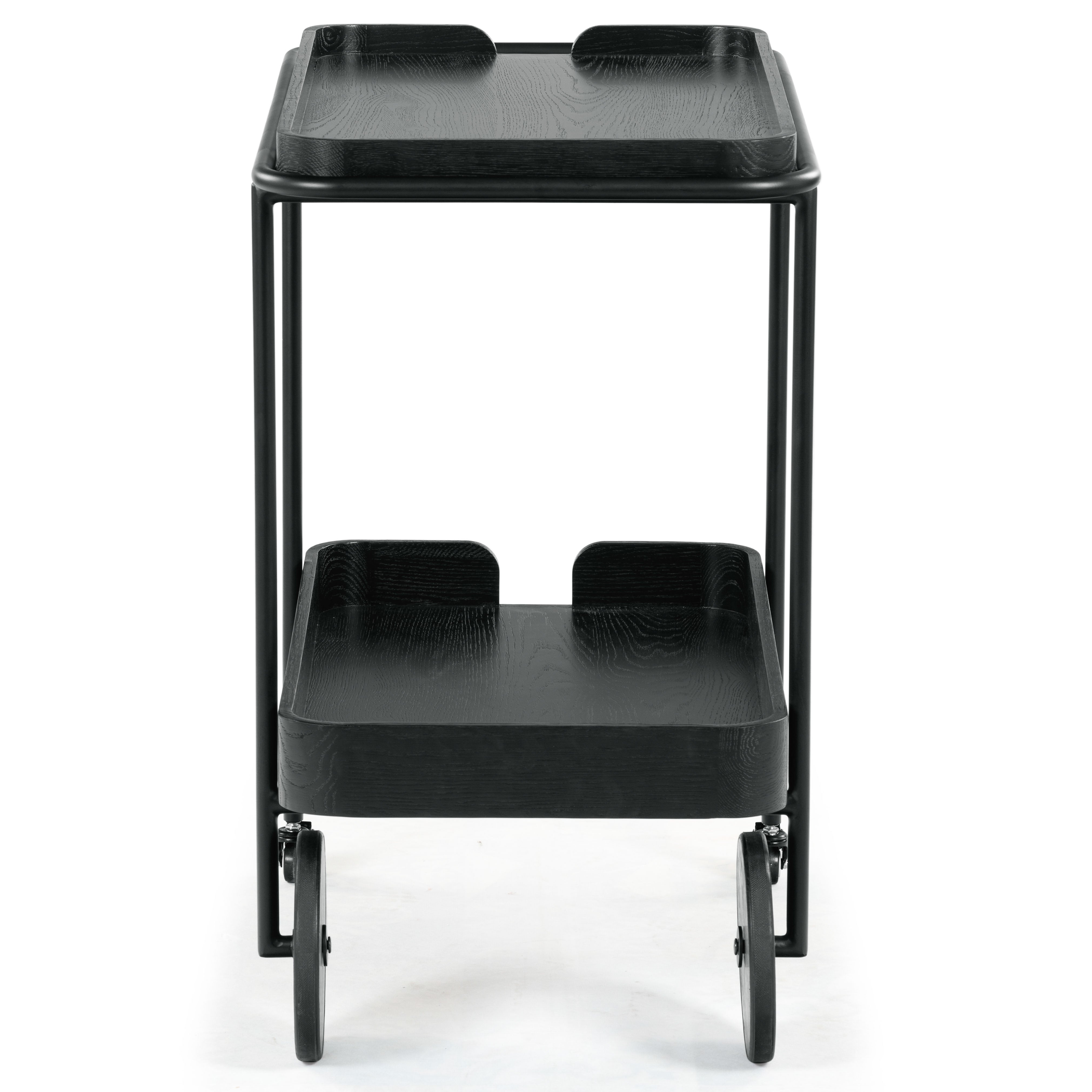 Introducing the Malek Wood and Metal 2 Shelf Bar Cart, a perfect fusion of functionality and style. With its natural and black color schemes, this bar cart exudes a minimalist and sophisticated aesthetic that complements a variety of interior decor. Constructed from sturdy oak wood and veneer, this bar cart boasts of robustness and durability. Its iron framework further adds to its sturdy build while lending a sleek, modern touch to its overall appearance. Whether you're hosting a lavish cocktail party or entertaining a few friends on a casual evening, this bar cart will not disappoint. With its ample storage and smooth rolling wheels, serving up your favorite beverages has never been easier or more stylish. Make the Malek Wood and Metal 2 Shelf Bar Cart an integral part of your social gatherings and let the good times roll.