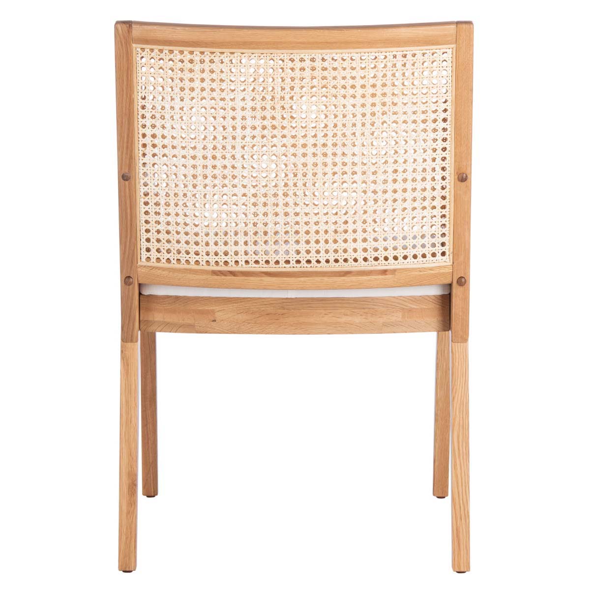 Contemporary chic meets coastal cool in this Malik Dining Chair. Maliks natural woven rattan provides rich visual contrast to its sleek natural solid oak frame, while a soft linen cushion ensures comfortable dining is always in style. Subtle cut outs on the side give Malik unique decorative depth.