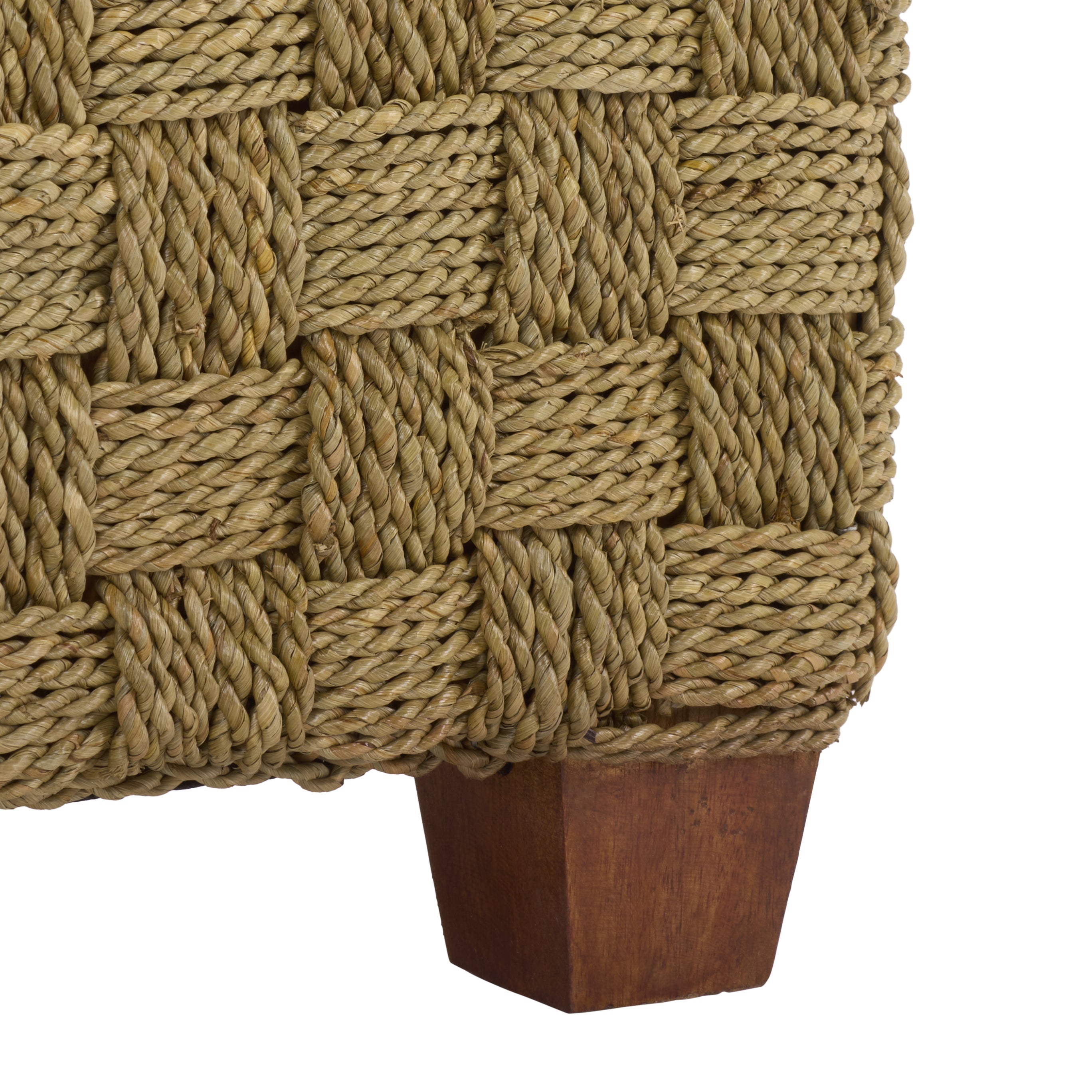 Introducing the Norabelle Square Woven Seagrass Ottoman in natural, a perfect blend of style and function for your living space. This ottoman seamlessly combines wood and seagrass, offering a unique piece that complements any decor. Its square shape makes it ideal for small or large spaces, adding a touch of natural beauty to your home. The woven seagrass texture adds depth and character, inviting guests to sit and relax. Use it as a footrest after a long day or as an extra seat when hosting gatherings. Its versatility allows it to serve as a practical coffee table or a stylish accent piece that enhances your living area. Designed with attention to detail, the Norabelle Ottoman showcases the natural color and texture of its materials, creating a warm and inviting atmosphere. Add this stunning piece to your collection and enjoy the blend of comfort and functionality it brings to your home. Transform your space with the timeless appeal of Norabelle today.