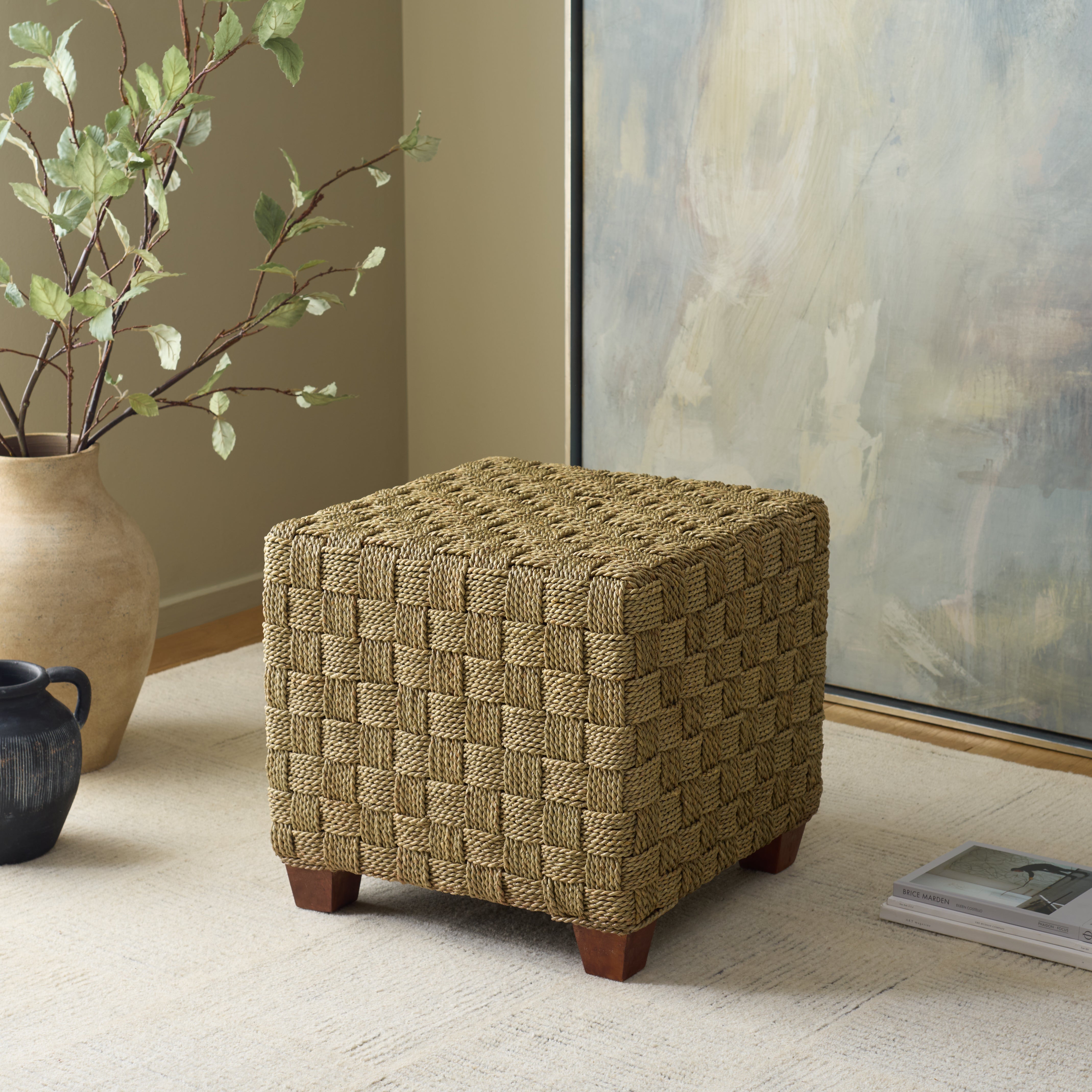 Norabelle Square Seagrass Ottoman | Safavieh Couture - CWK2034