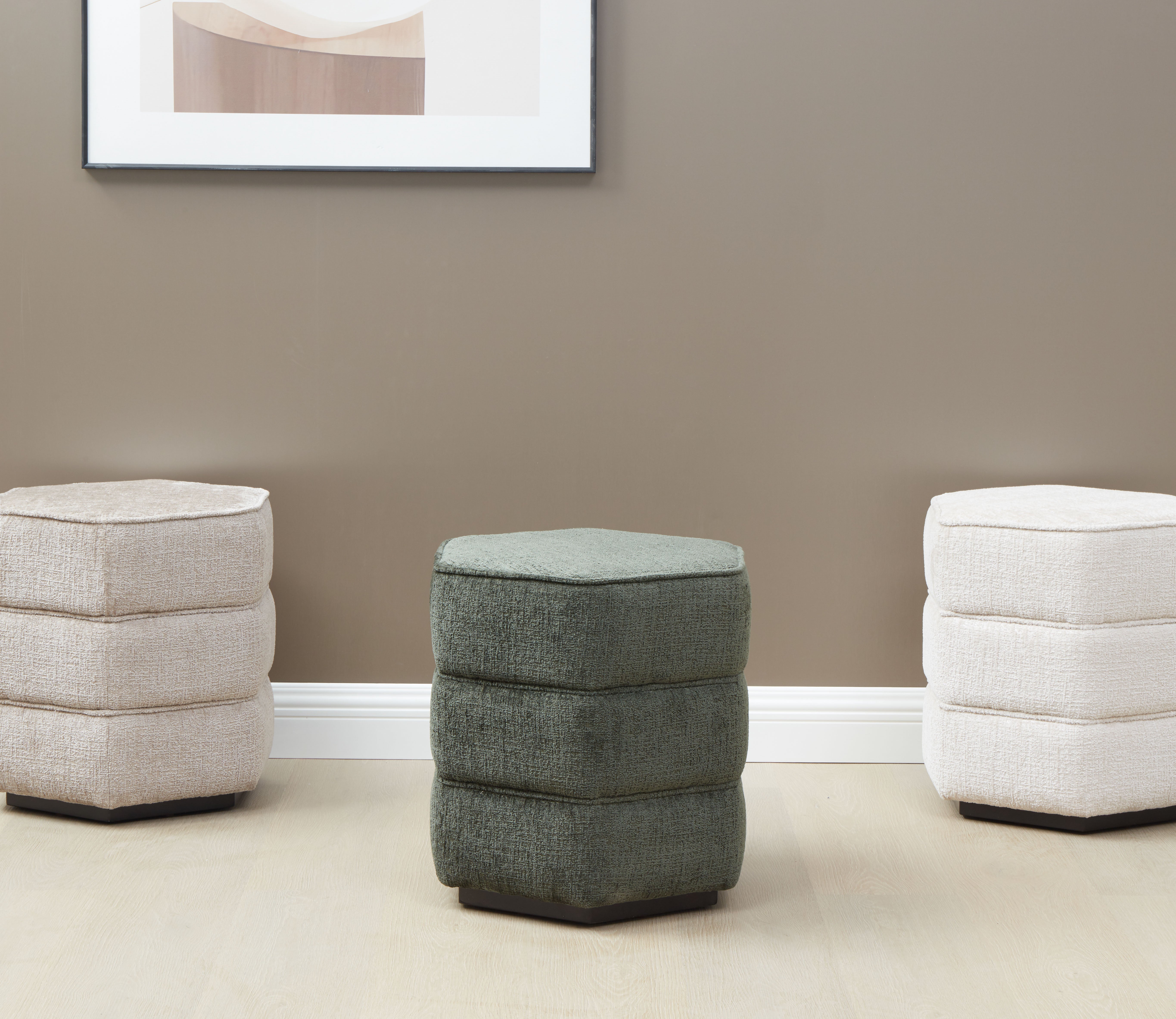 Discover comfort and style with the Rosaria chenille hexagon ottoman. Crafted from wood, fabric, and foam, this ottoman offers a blend of function and aesthetics. Whether you need extra seating, a footrest, or simply a stunning accent piece, the Rosaria ottoman meets your needs effortlessly. Add a touch of elegance to your home with this versatile addition.
