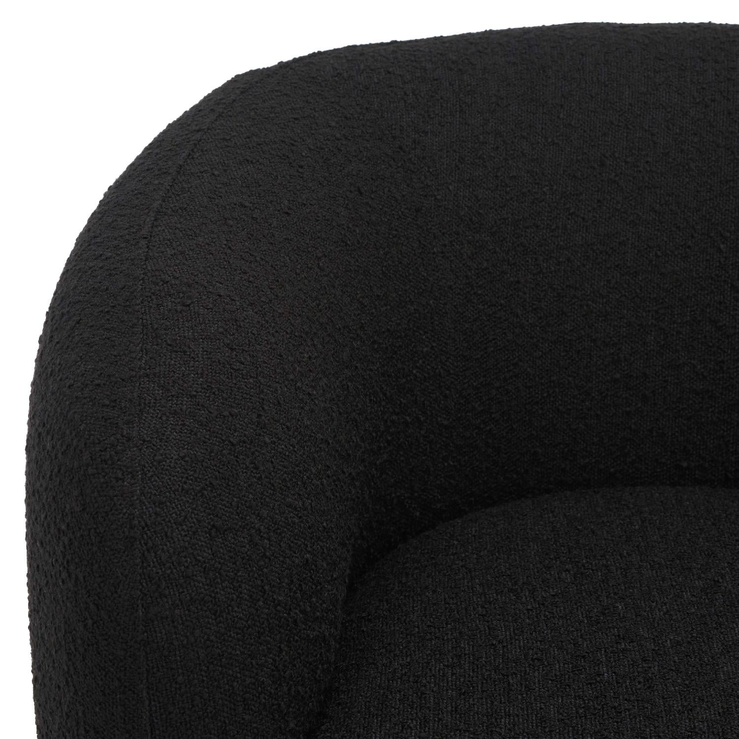 Undeniably the best seat in the house, this Bernard Swivel Accent Chair takes comfort and chic to the next level. Bernard's encompassing barrel chair silhouette envelops you in absolute bliss with its soft black boucle upholstery, and its brushed chrome swivel base adds a hint of modern glamour.