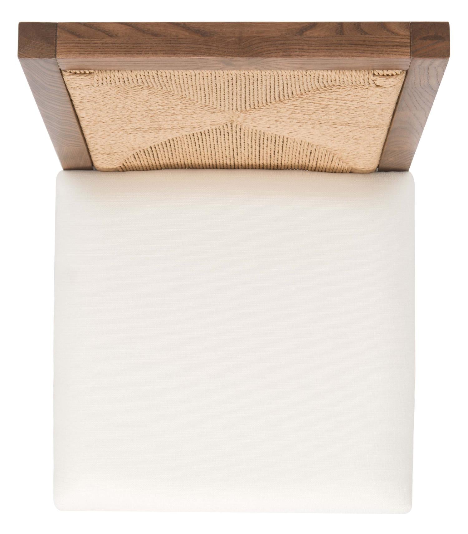 Create a modern and inviting setting with our Emilio dining chair. Our modern and neatly proportioned chair is updated with a beautiful woven back. It showcases a rush weave pattern to attain simple yet striking graphics. The natural textures are framed with a walnut ash wood framework. Our dining chair effortlessly combines modern elegance with the beauty of organic textures. It includes a slim yet comfy white cushion to elevate your dining experience.