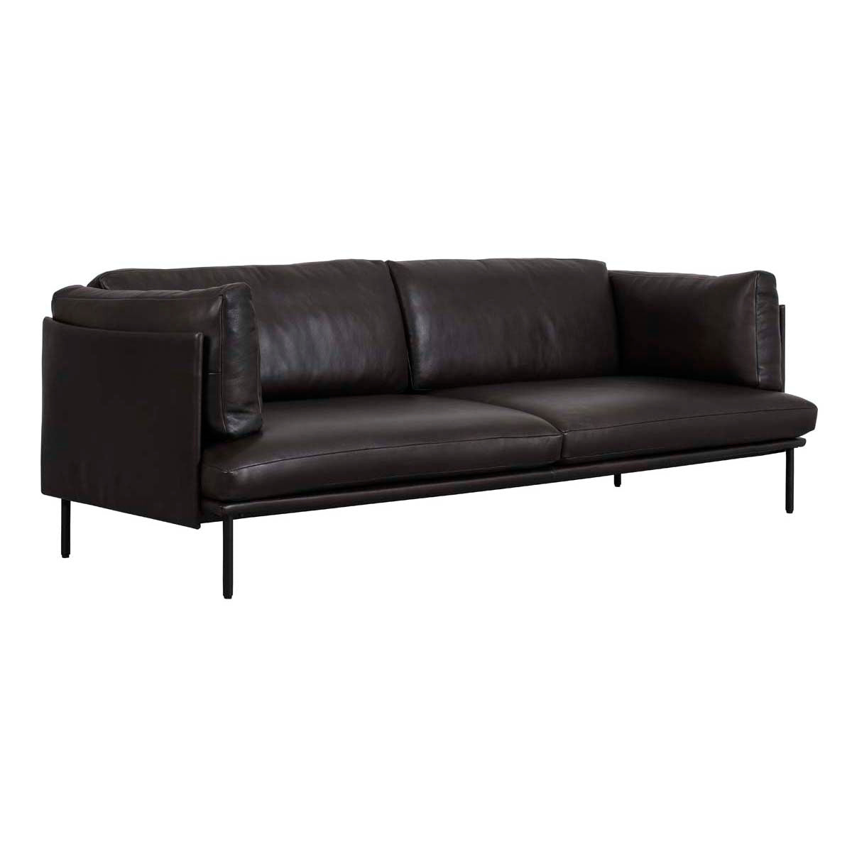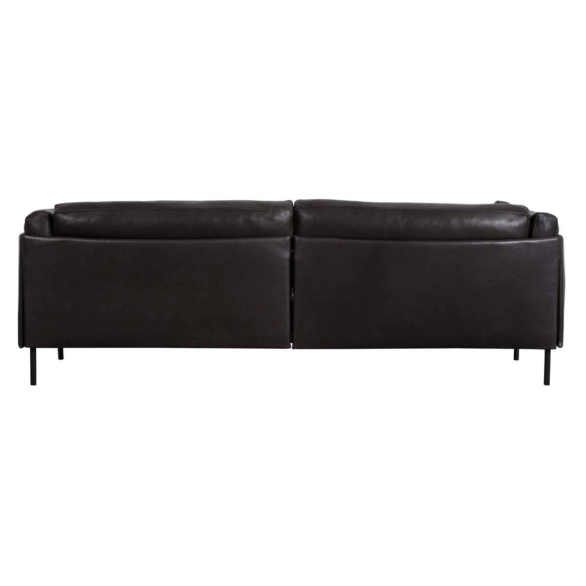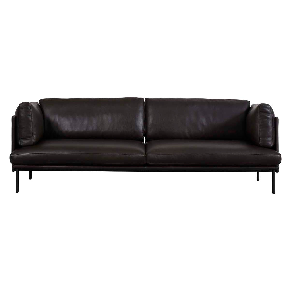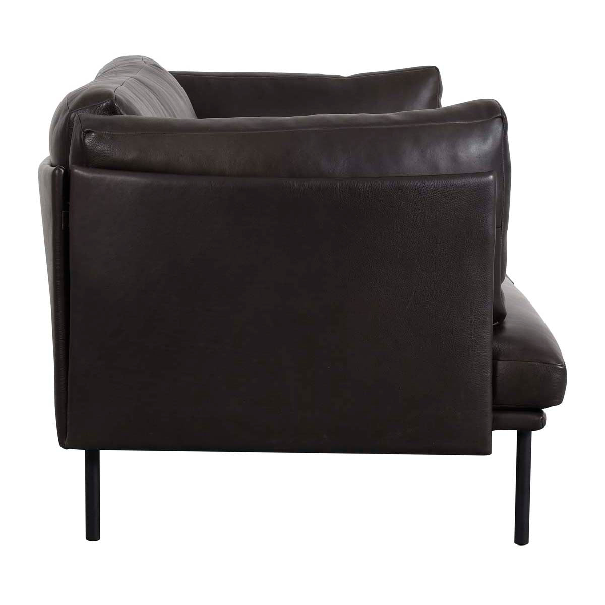 Penthouse luxury perfectly designed for the modern minimalist, this Harriet Sofa is a must-have for high-style contemporary interiors. Harriets ultra-plush top grain Brazilian leather cushions is decadently smooth to the touch, and its graphite tone seamlessly accents any rooms color scheme. Raised matte black metal legs complete the look.