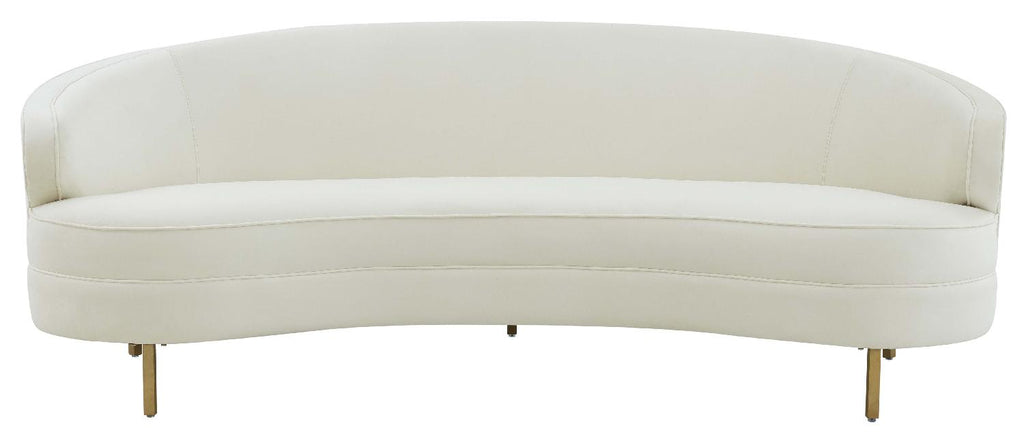 Indulge in the deluxe, sinuous curves of this glamorous contemporary sofa. Designed for the modern living room, its minimalist style pairs the rich materiality of lush cream velvet upholstery with sleek legs in a gold finish. It's a new classic.