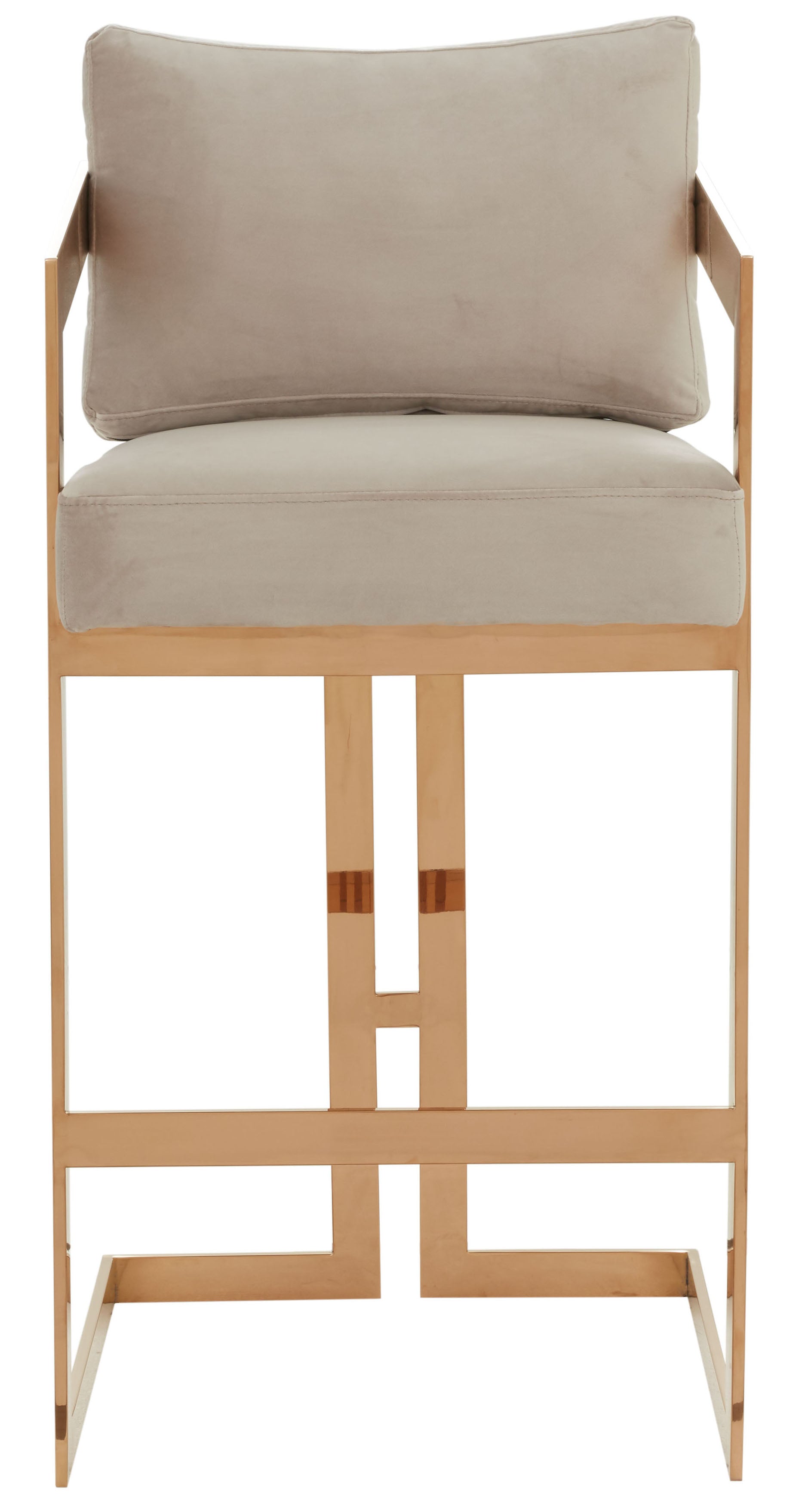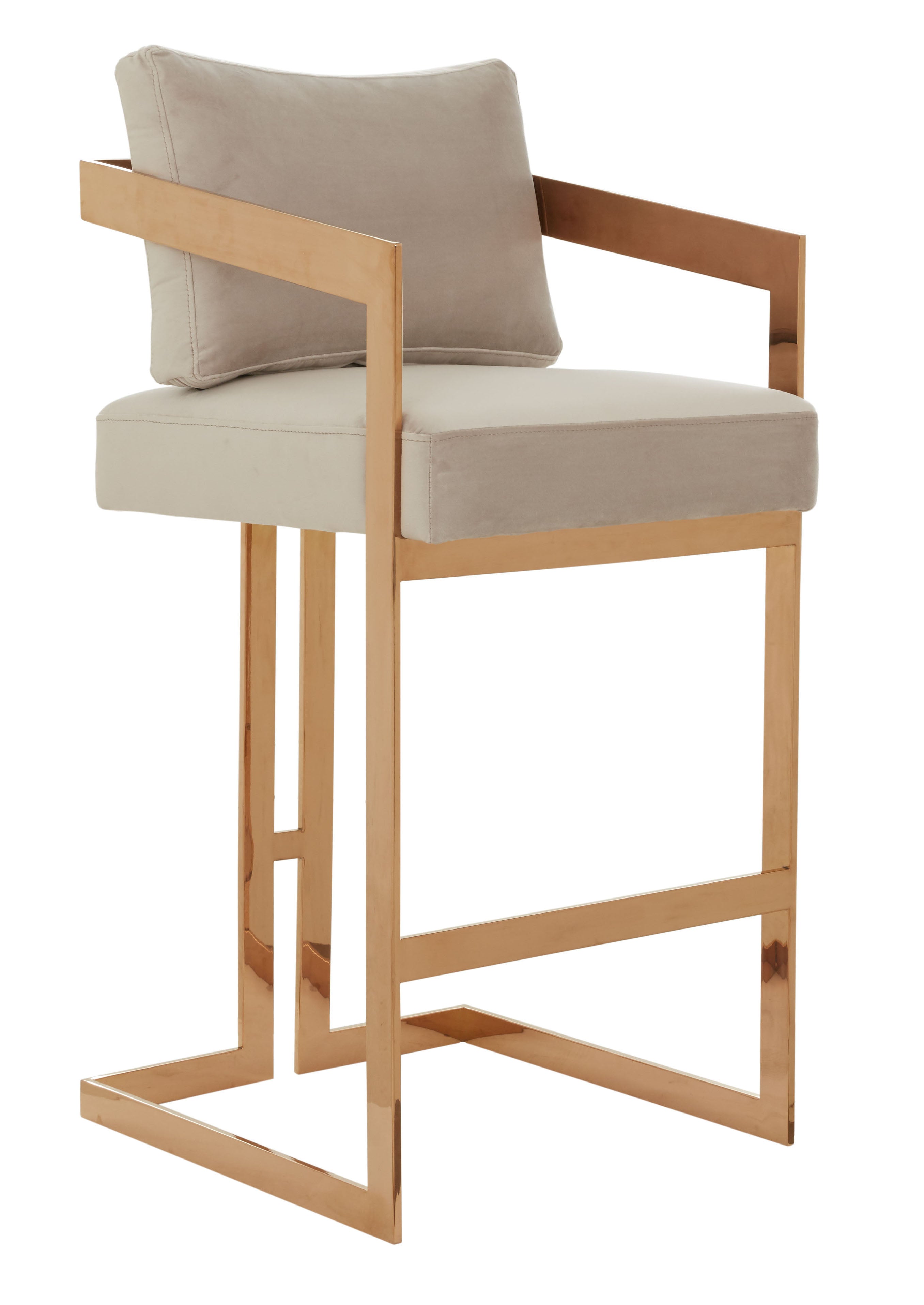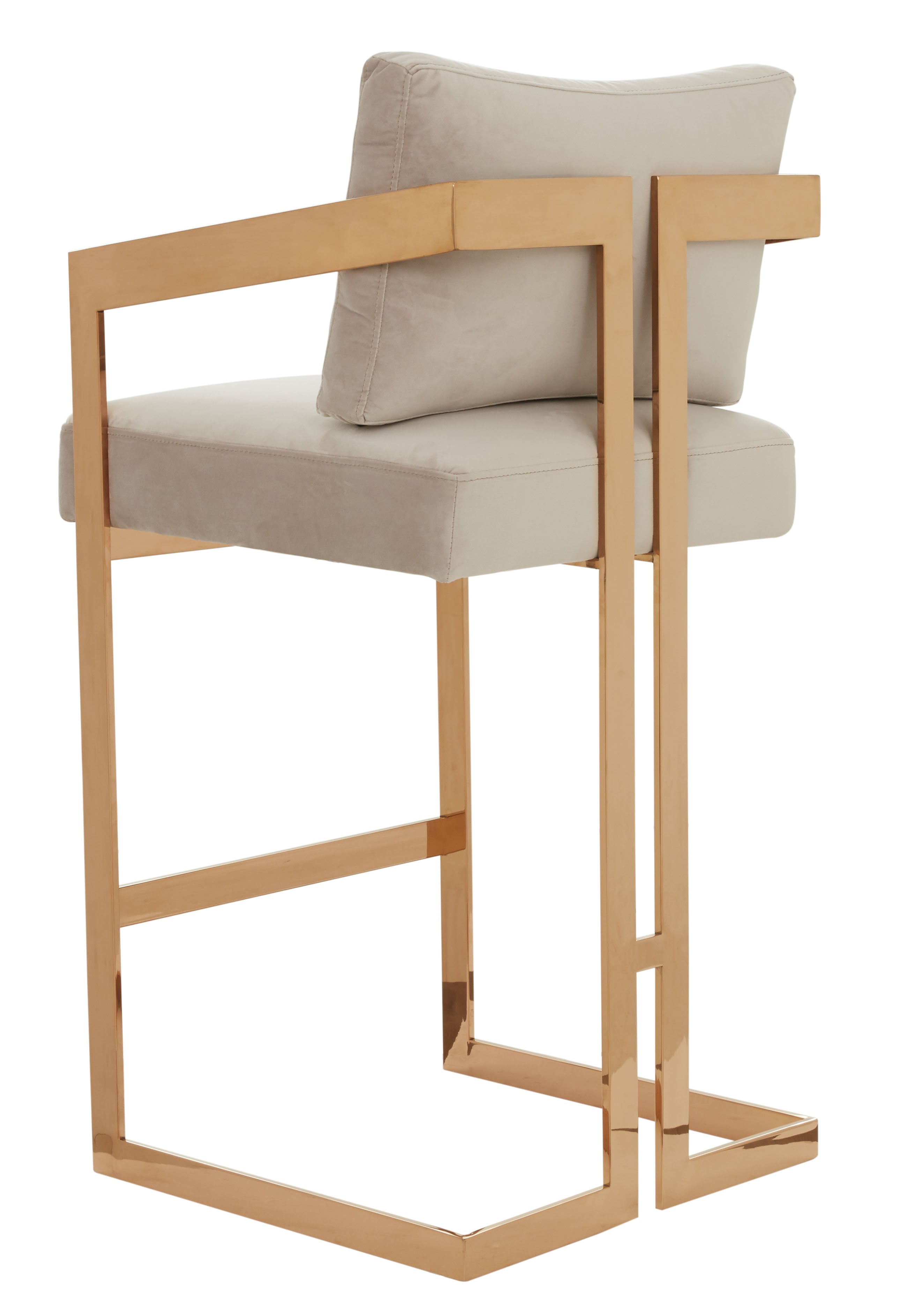 The Taraji Barstool was designed for the contemporary tastemaker. Its gentle angles finished in a gold metallic hue shimmer alongside the indulgent almond velvet upholstery. Ideal for interiors that invite city living at its finest.