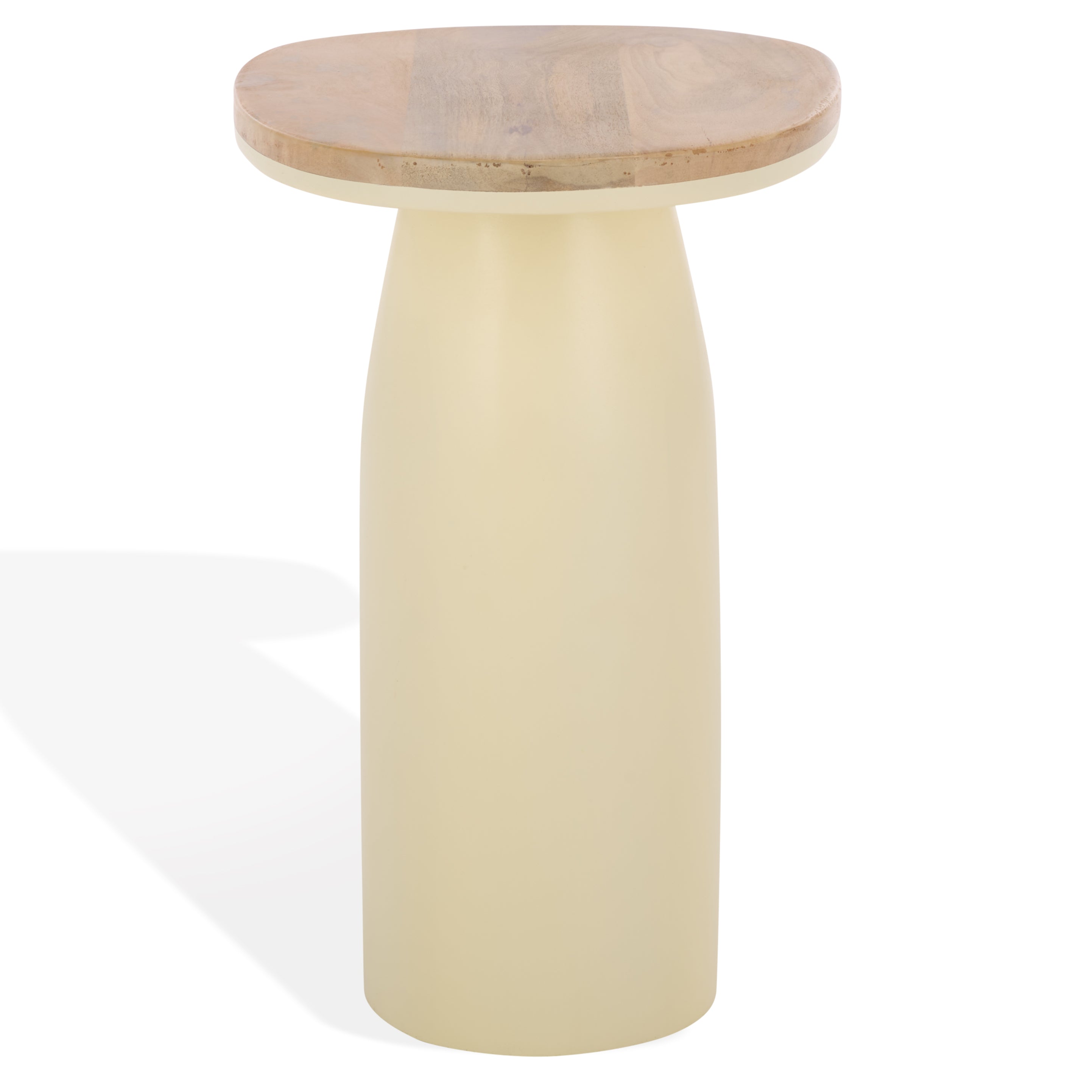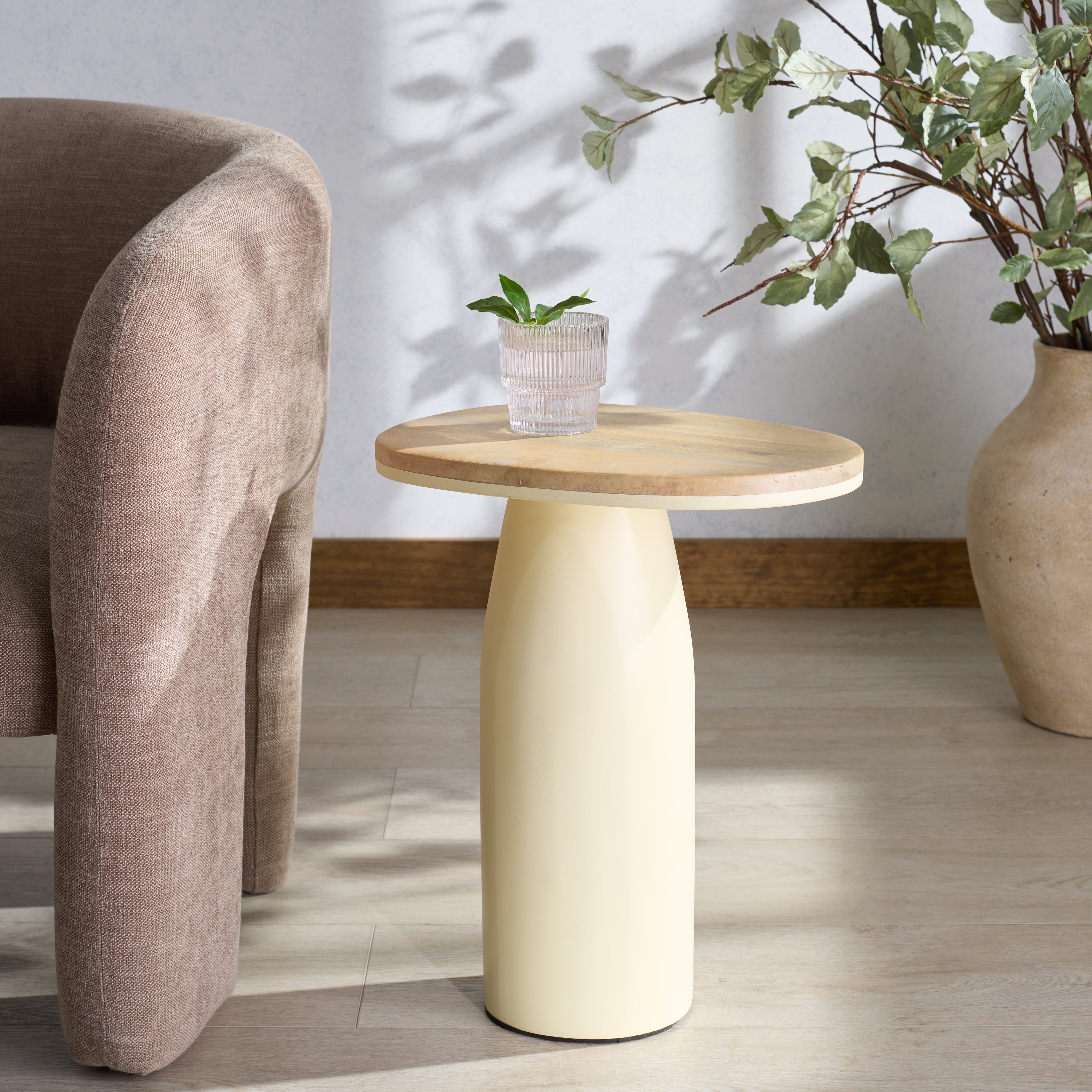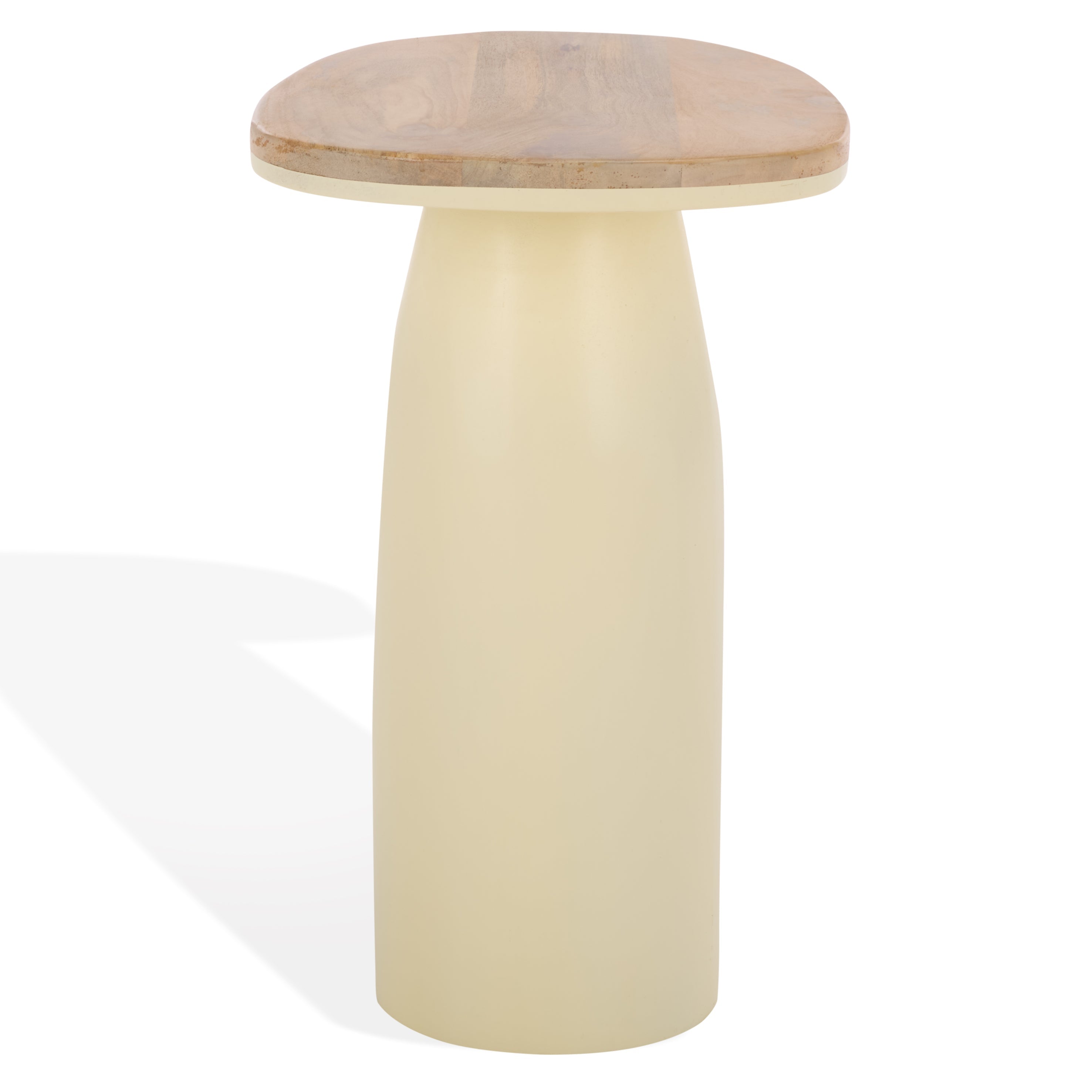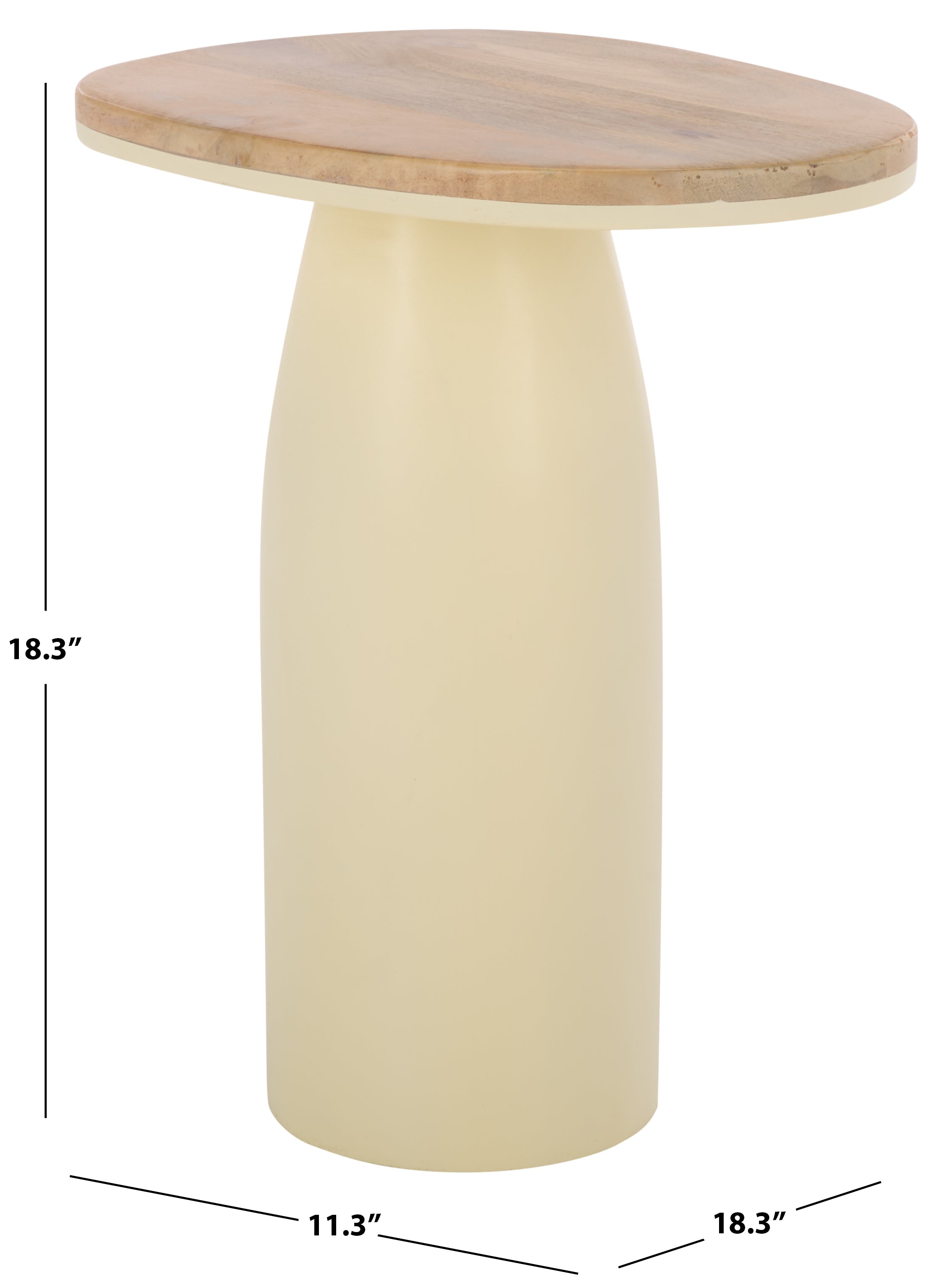 Introducing the Veronica Wood and Lacquer Accent Table, a stylish addition to any living space. Featuring a natural and white color palette, this table effortlessly complements a variety of interior designs. Crafted from a blend of wood and lacquer, its elegant silhouette offers a seamless blend of organic elements and modern touches. The smooth lacquer finish not only adds a touch of elegance but also enhances the natural beauty of the wood grain.