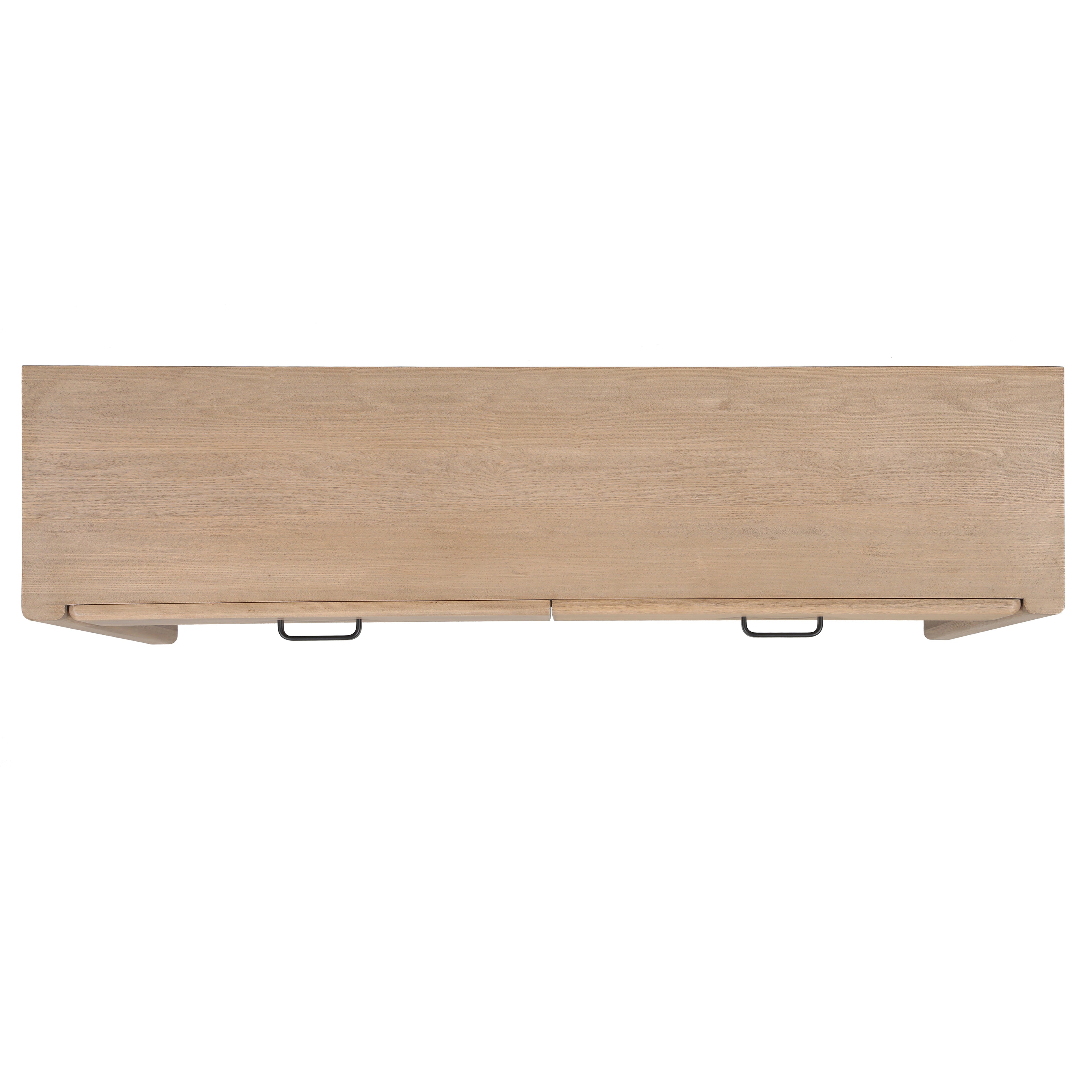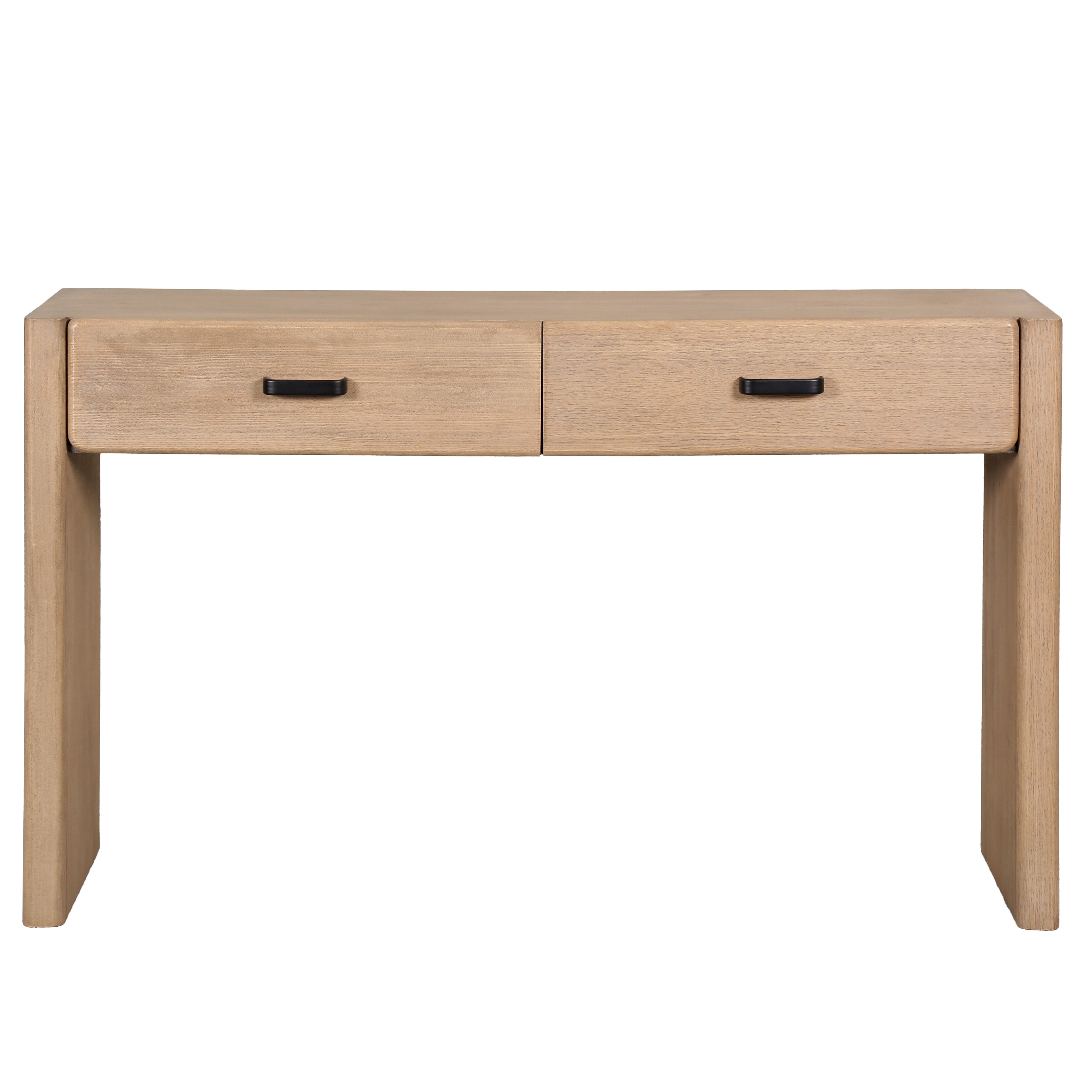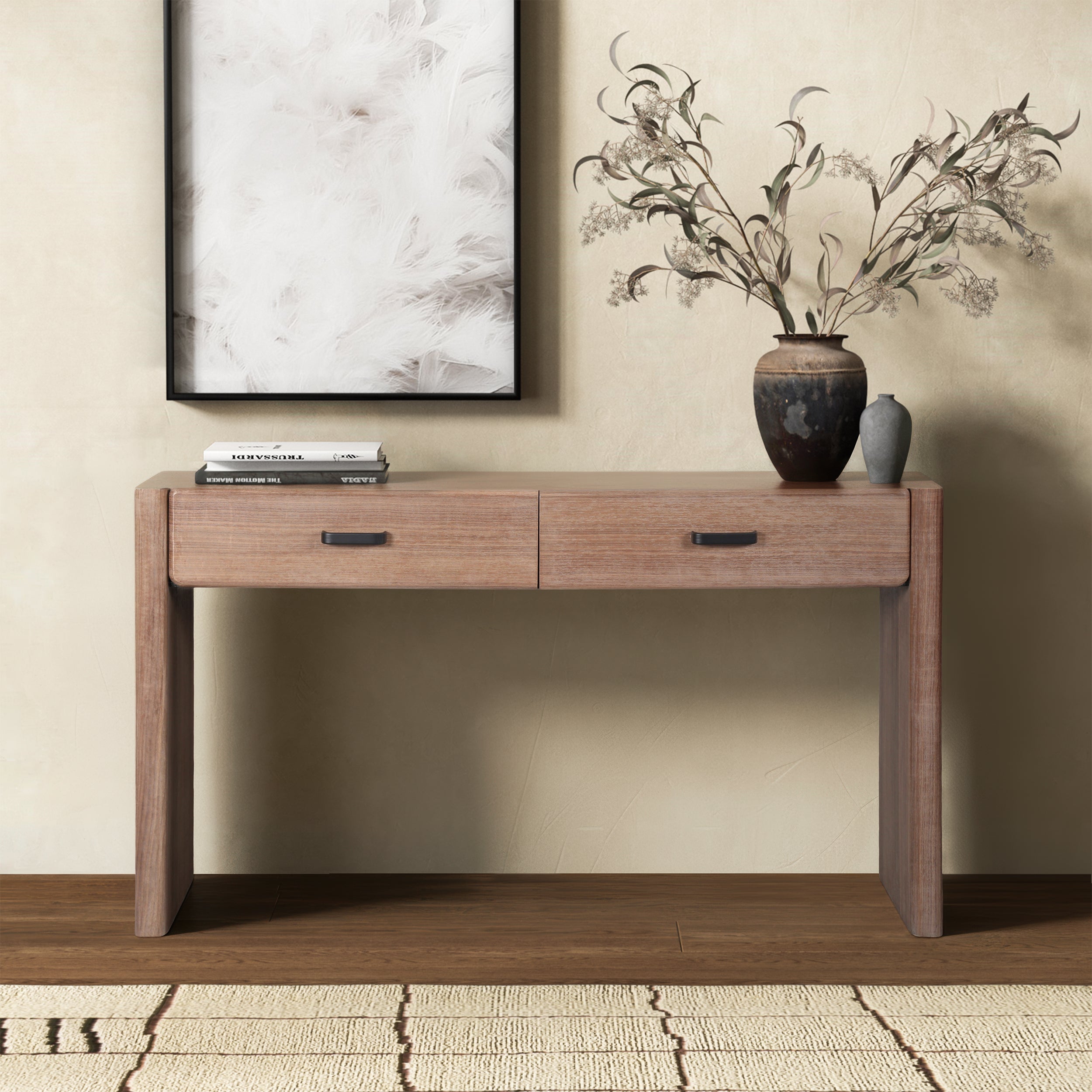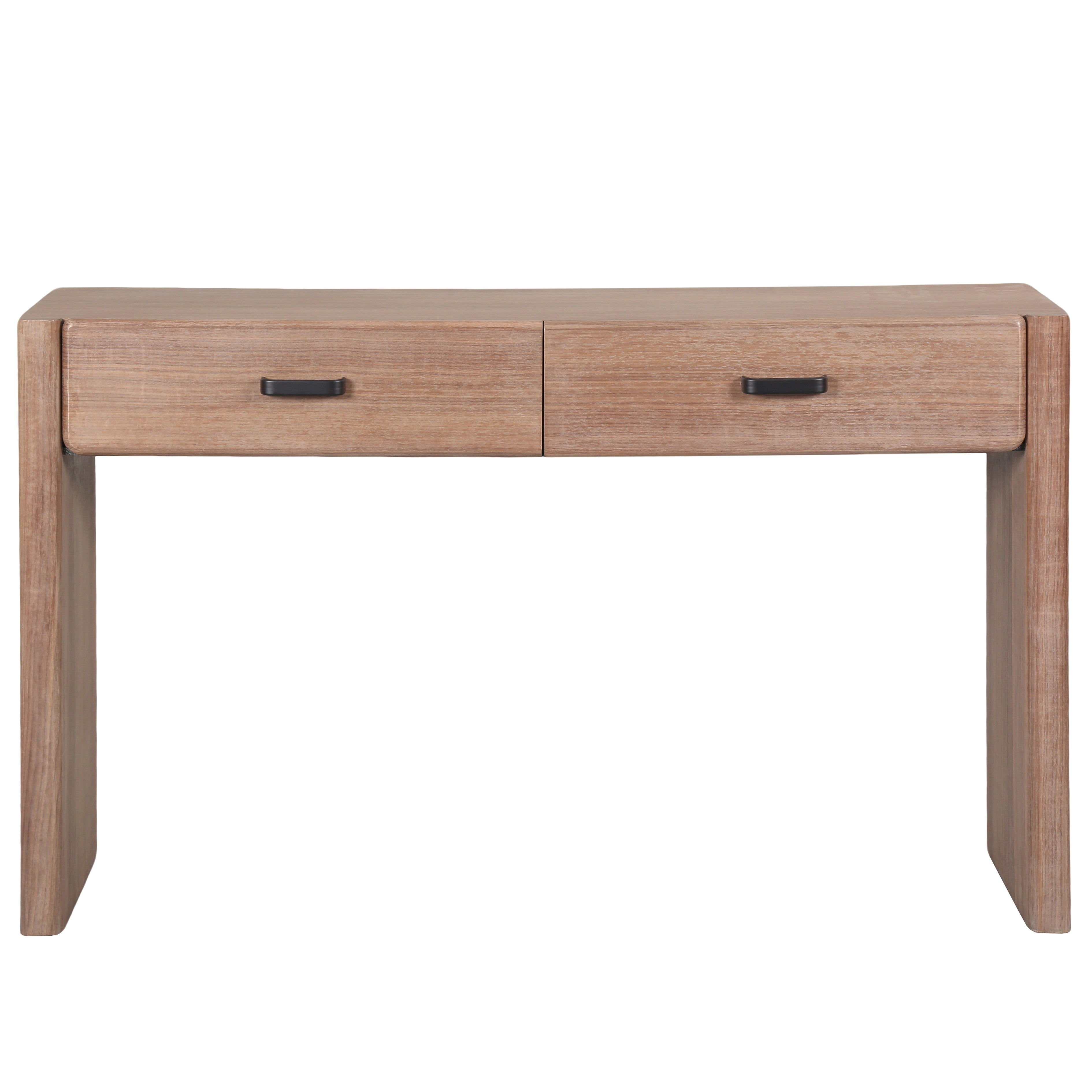 Introducing the Wynnrosa 2 Drawer Wood Console Table. Crafted with attention and care, this versatile piece seamlessly blends the warmth of wood with the subtle strength of metal. Its elegant silhouette and dual drawers provide both style and function, making it an ideal fit for any living space. Whether it's a statement piece in your entryway or a functional addition to your living room, this table is designed to enhance your home decor. The timeless color complements a variety of interior styles, and the thoughtful combination of materials adds a touch of modernity while retaining classic charm. Each drawer offers convenient storage space to keep your essentials organized while the tabletop provides the perfect surface to display your favorite decor items. Make the Wynnrosa 2 Drawer Wood Console Table a part of your home for a blend of beauty and practicality that is bound to capture attention and inspire admiration.
