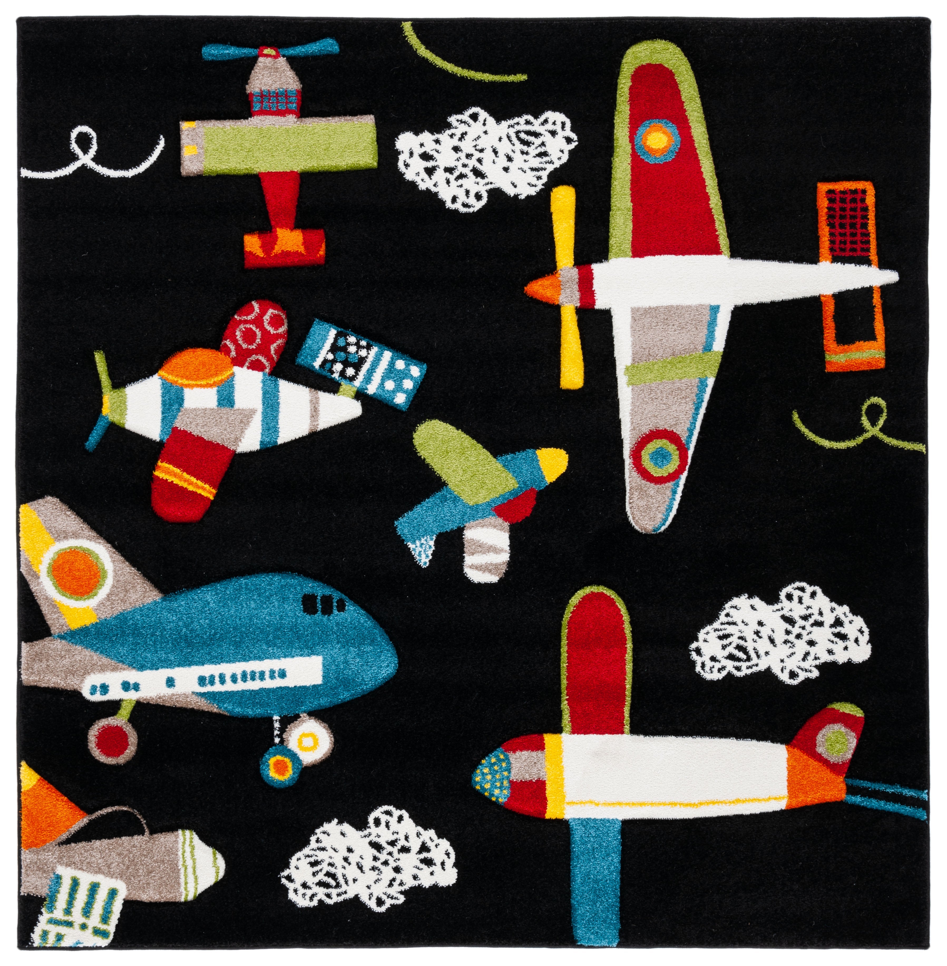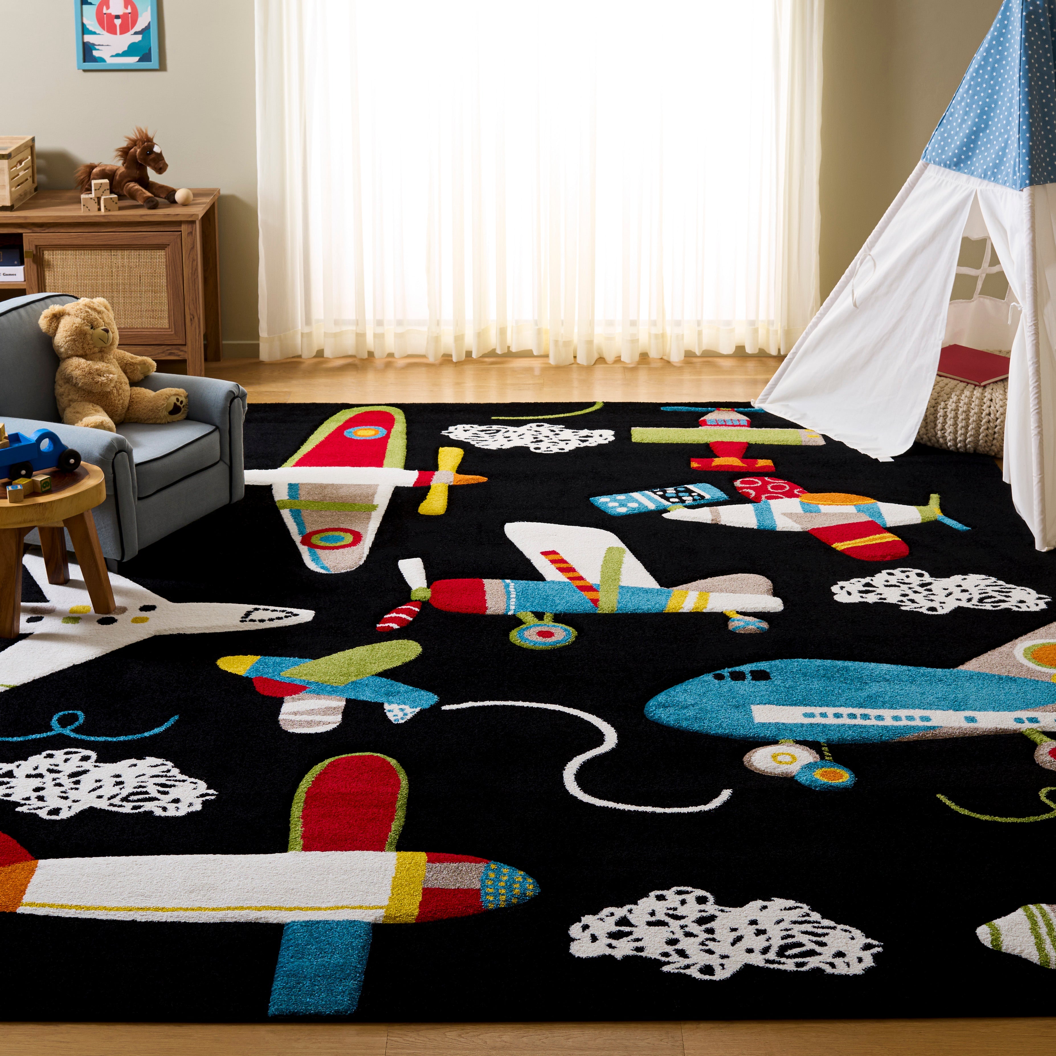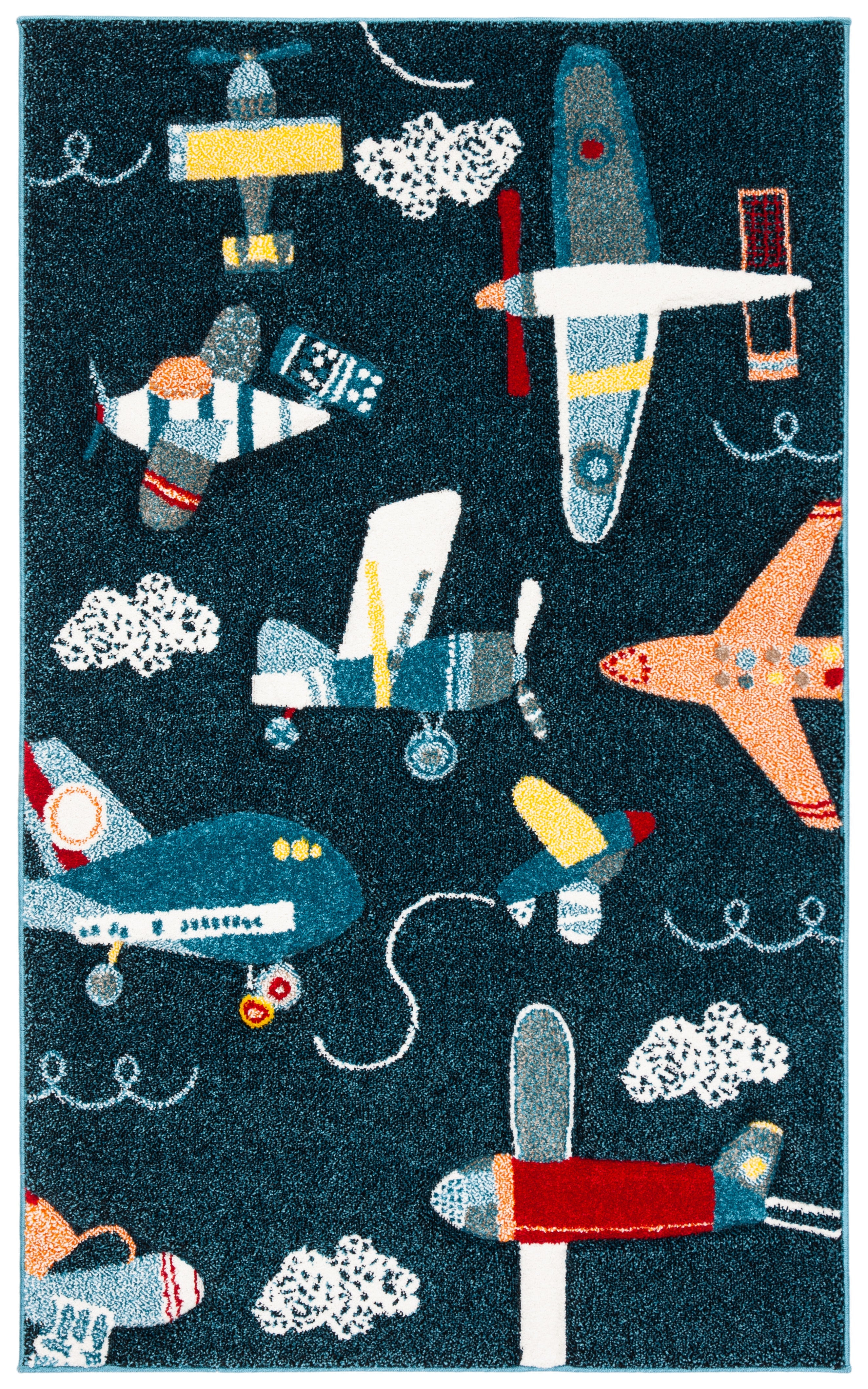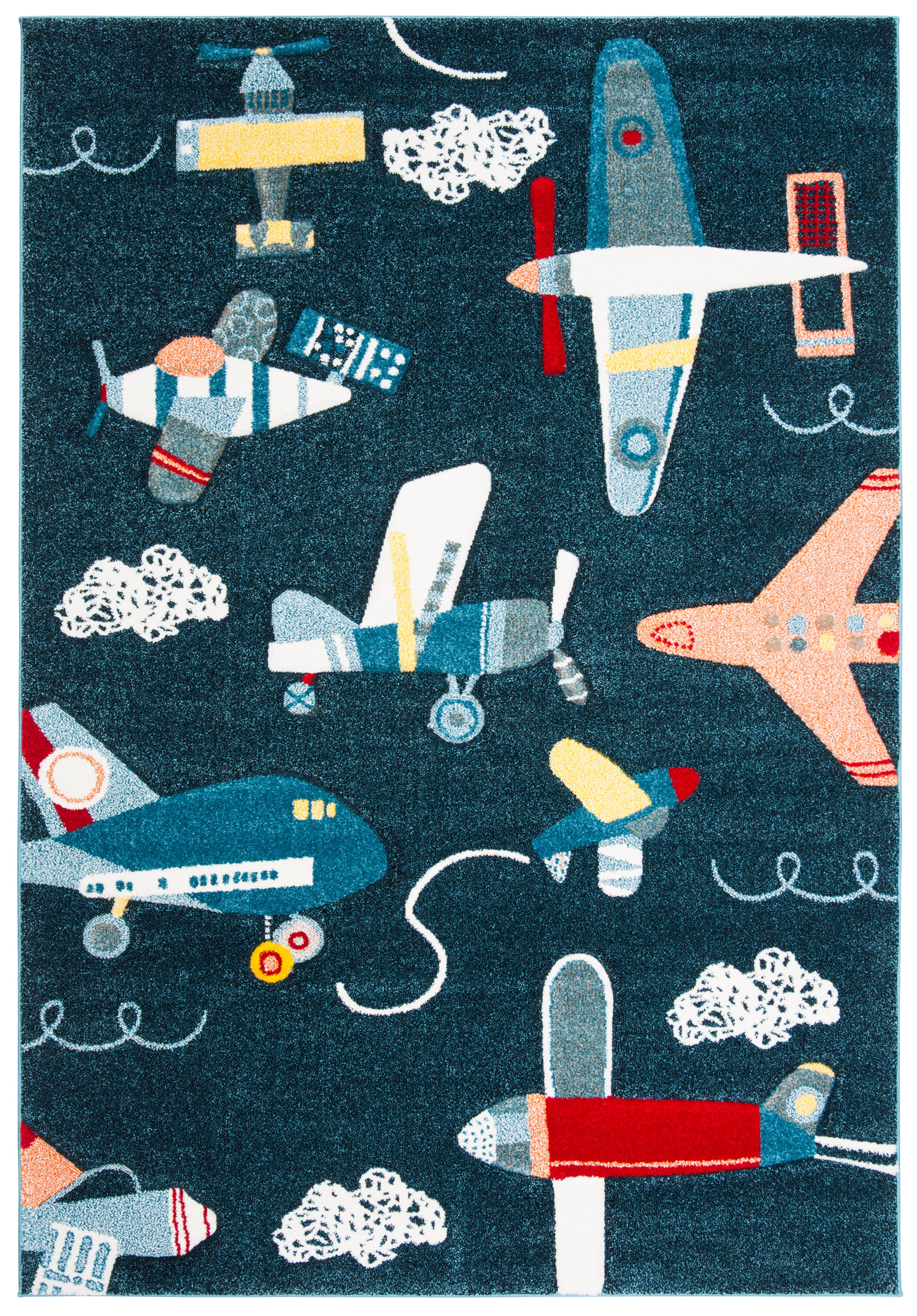 Elevate your child's play area with this whimsical and vibrant Kids Style Area Rug. Designed to ignite imagination and add a splash of creativity to any room, this rug features an exciting aviation theme with playful airplanes soaring across a backdrop, intermingled with charming accents.