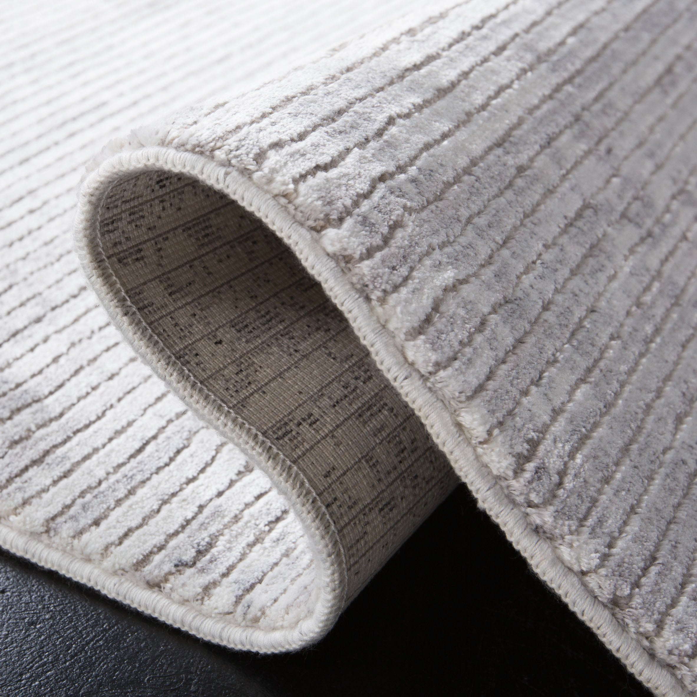 Elevate your living space with the epitome of sophistication and luxury; our 11' X 16' oversized contemporary area rug. This exquisite piece, power-loomed to perfection, offers an aesthetic that seamlessly blends with any modern interior design theme. Crafted from a harmonious blend of 60% viscose and 40% polyester, this rug boasts a lustrously soft touch and a subtle sheen that captures the essence of elegance. The meticulous construction ensures durability without compromising on comfort, making it an ideal choice for high-traffic areas in your home. The ivory and grey color palette is a timeless choice, bringing a sense of calm and versatility to your decor. It provides a neutral backdrop that can unify diverse elements in a room, while its plush height adds an inviting layer of warmth underfoot. Every inch of this piece, made in Turkey, speaks to a heritage of masterful rug-making. The contemporary style is emphasized by the understated abstract pattern, as seen in the image, which evokes a sense of movement and depth, adding an artistic touch to your floor. Not only is this rug visually stunning, but it also prioritizes your health and the environment. OEKO-TEX certification guarantees that every fiber has been tested and confirmed free from harmful substances. This assurance means you can enjoy both luxury and peace of mind. Introduce this sumptuous, OEKO-TEX certified, 11' X 16' area rug into your home and experience a