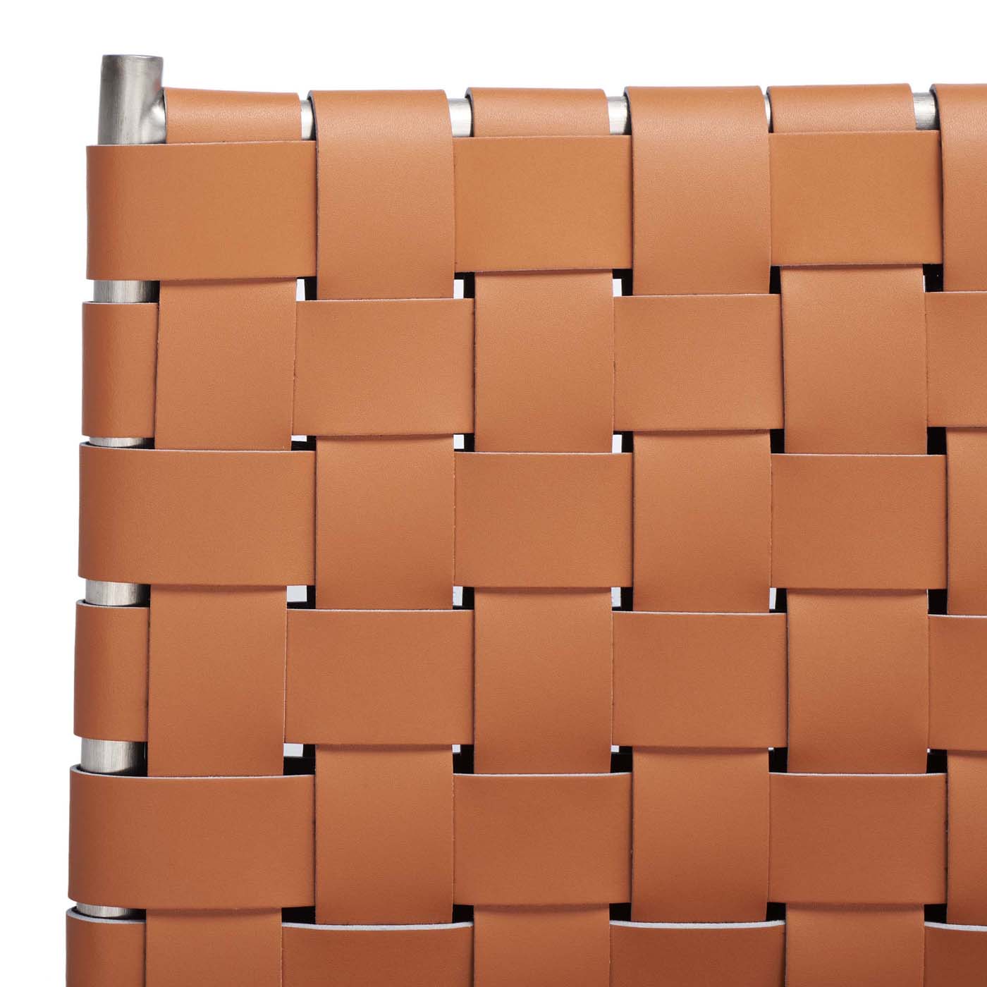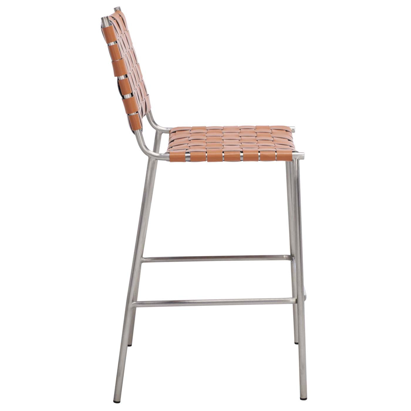A high-style design for today?? elevated dining, this Bahari Counter Stool redefines any modern interior with its relaxed contemporary beauty. A clean-lined silver metal base provides the perfect artistic contrast to Bahari?? basket-woven natural-toned leather seat and cut-out back.
