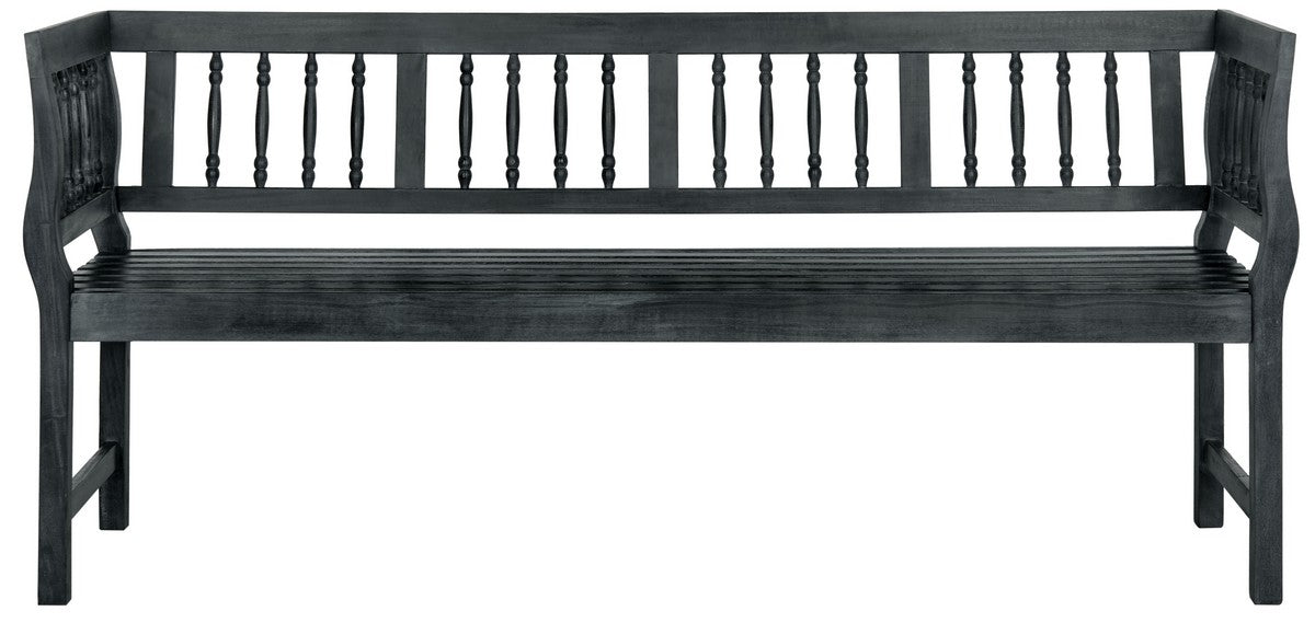 Bring inimitable Southern charm to your outdoor living area with this classic bench. Perfect for a garden or intimate gathering under the stars, it?? crafted with dark slate grey acacia wood and finished with silver metal details for unmistakable elegance.