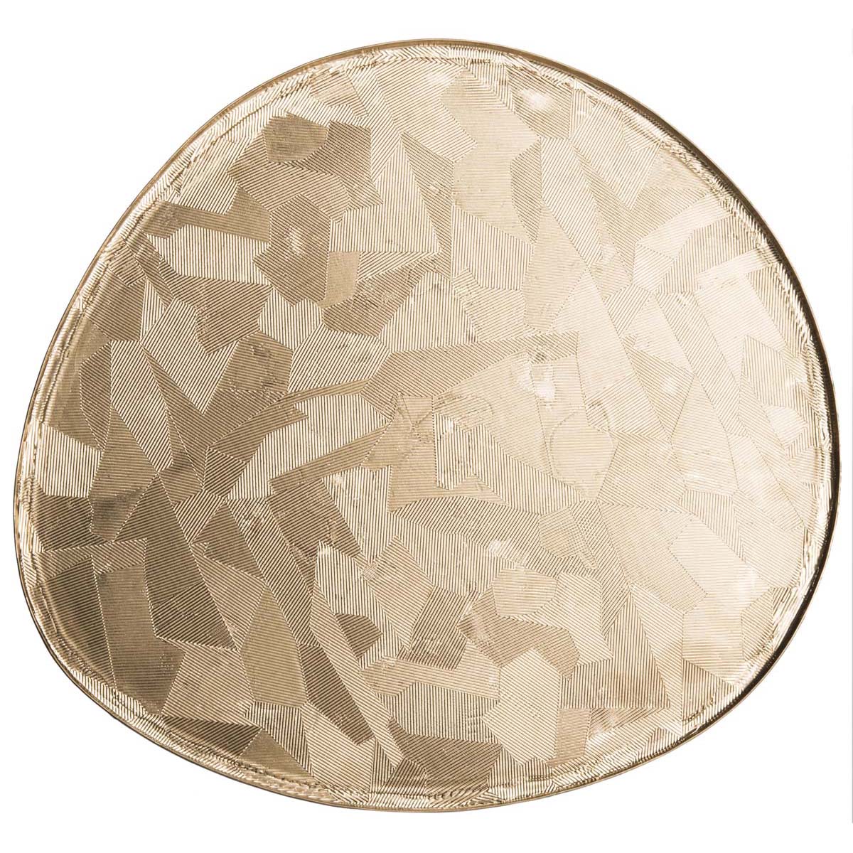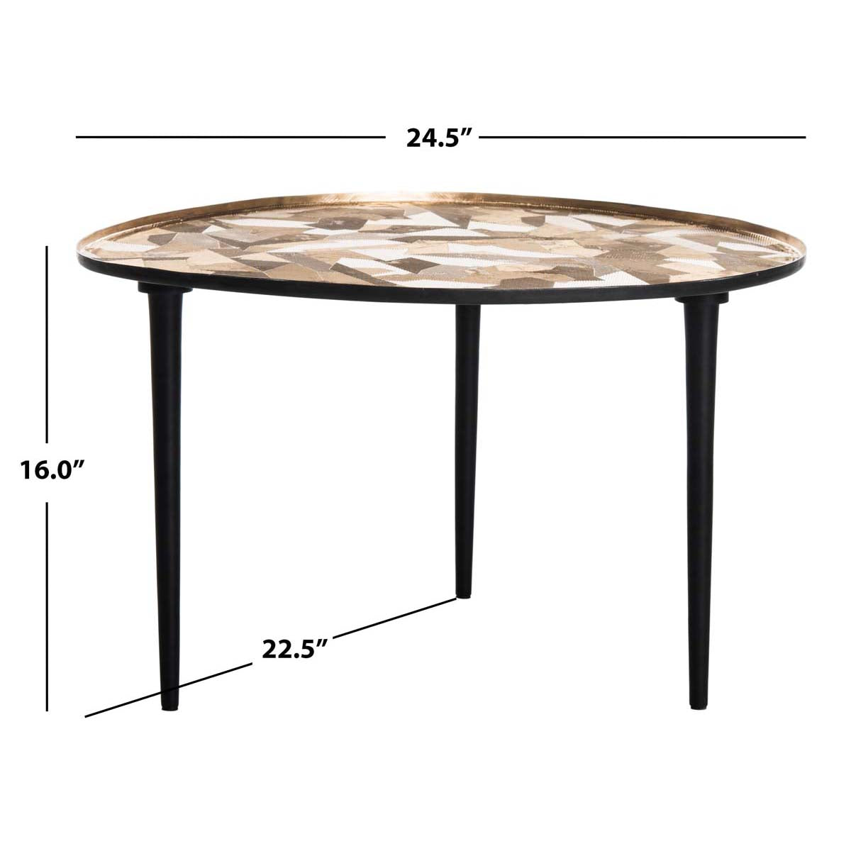 Designed to capture the spirit of organic modernism, this side table brings substance and style to any interior. A shimmering brass finish illuminates the bold graphic texture of its oval top while its black powder coated legs lend sleek sophistication.