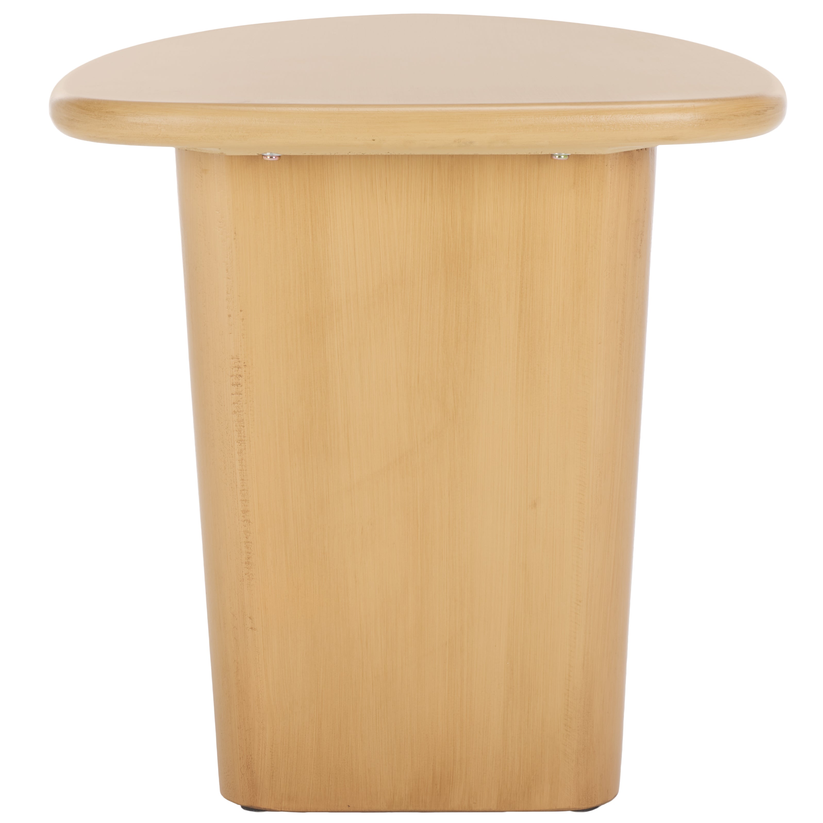 Bring any corner to life with the warm and organic appeal of our Alala end table. Our stunning end table embraces modern drama with a soft and sculptural silhouette. With an asymmetrical and organic profile, the tabletop sits upon oversized, chunky legs that are placed perpendicularly for a dramatic effect. Both modern and captivating, our end table is enriched in lively grains of wood. It can stand alone as a striking statement piece beside a sofa or armchair, or create a beautiful display of our decor items.
