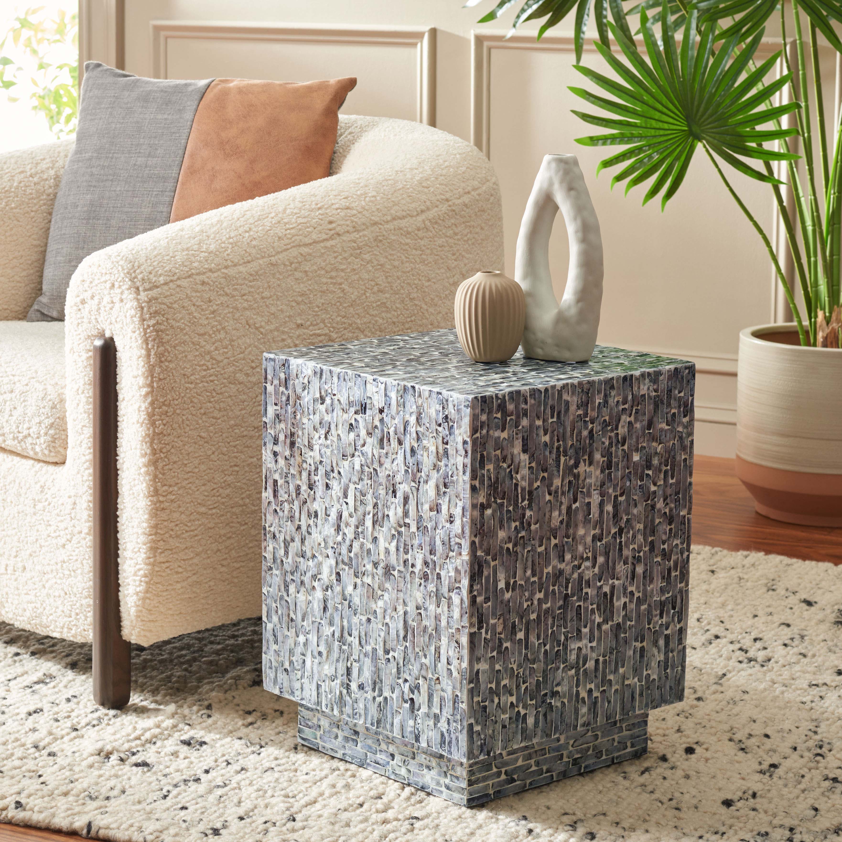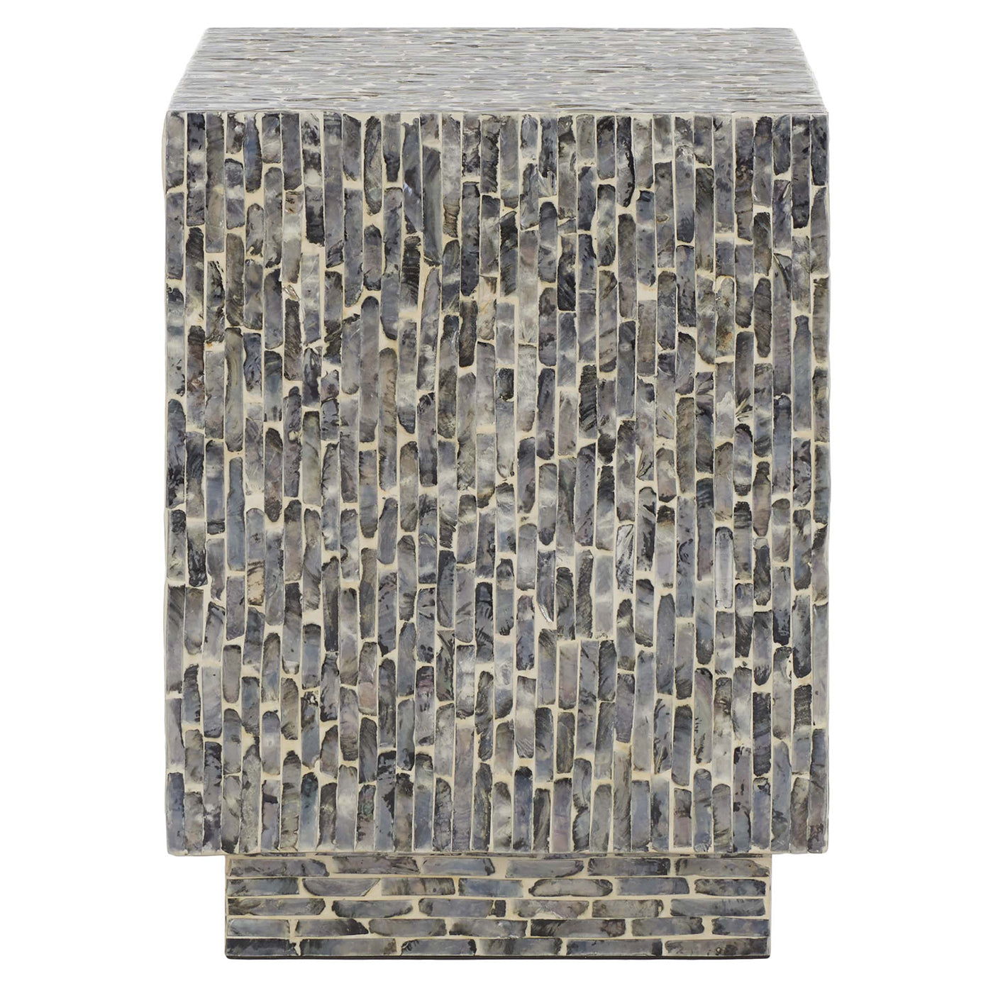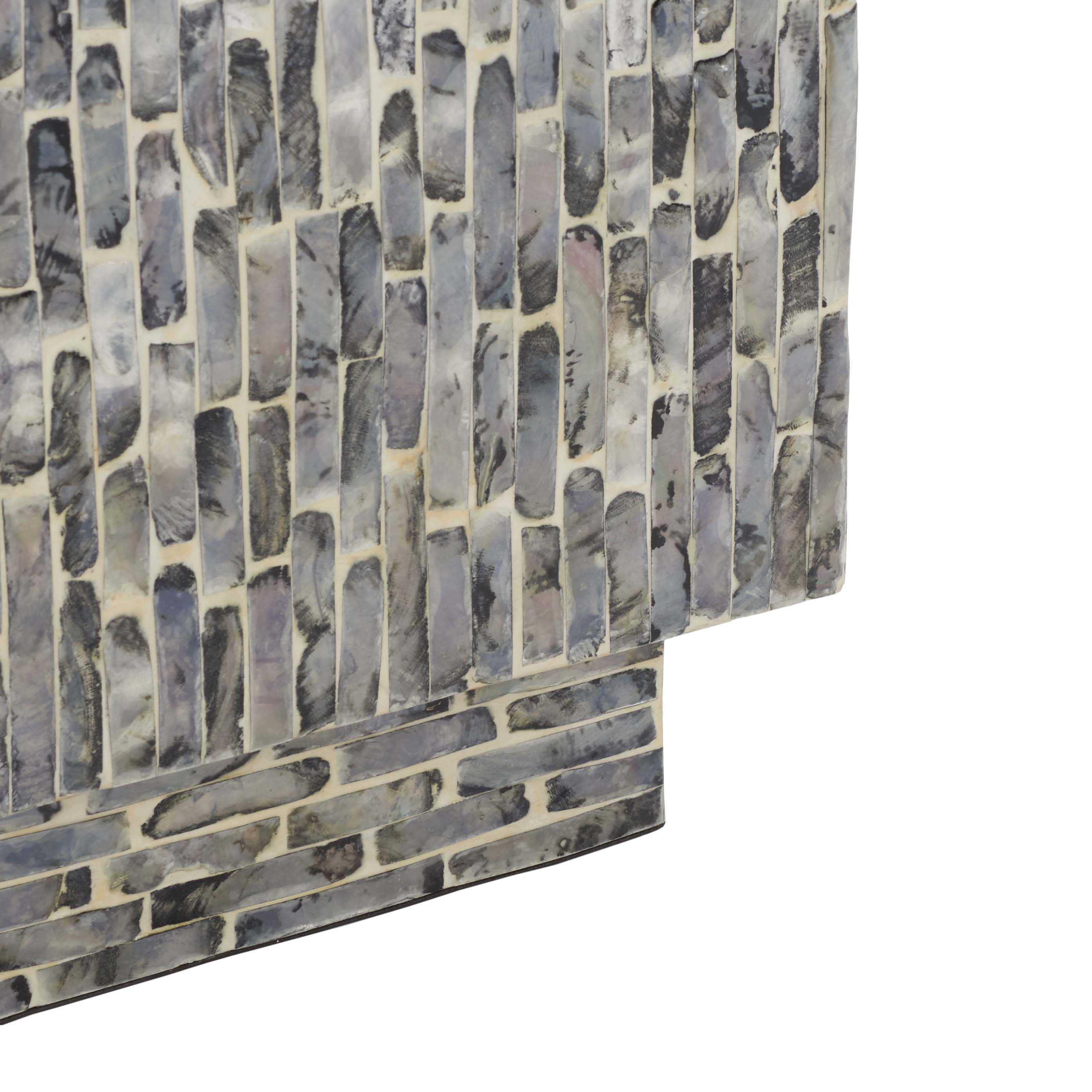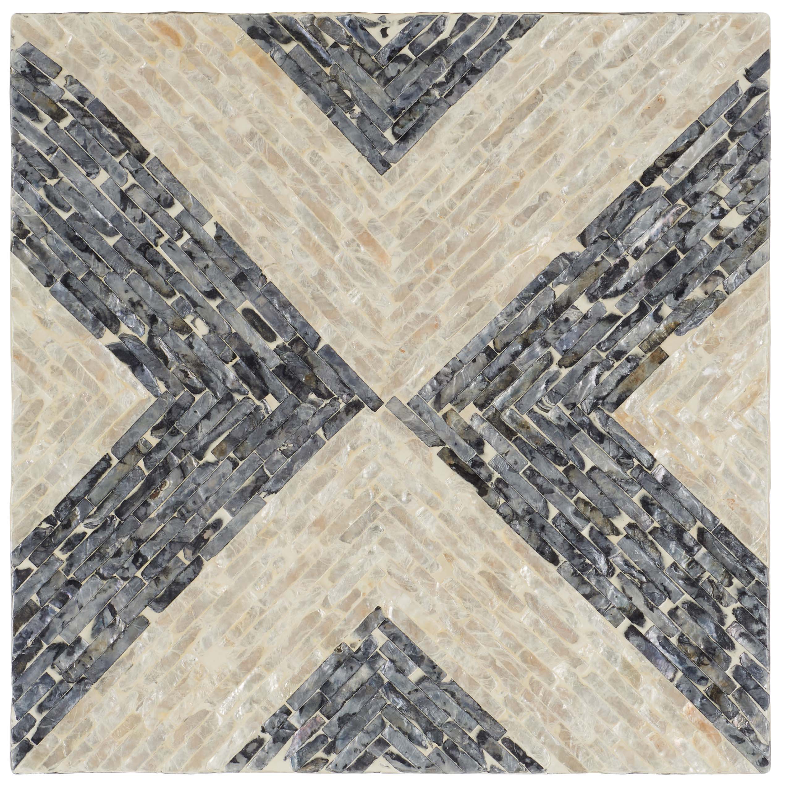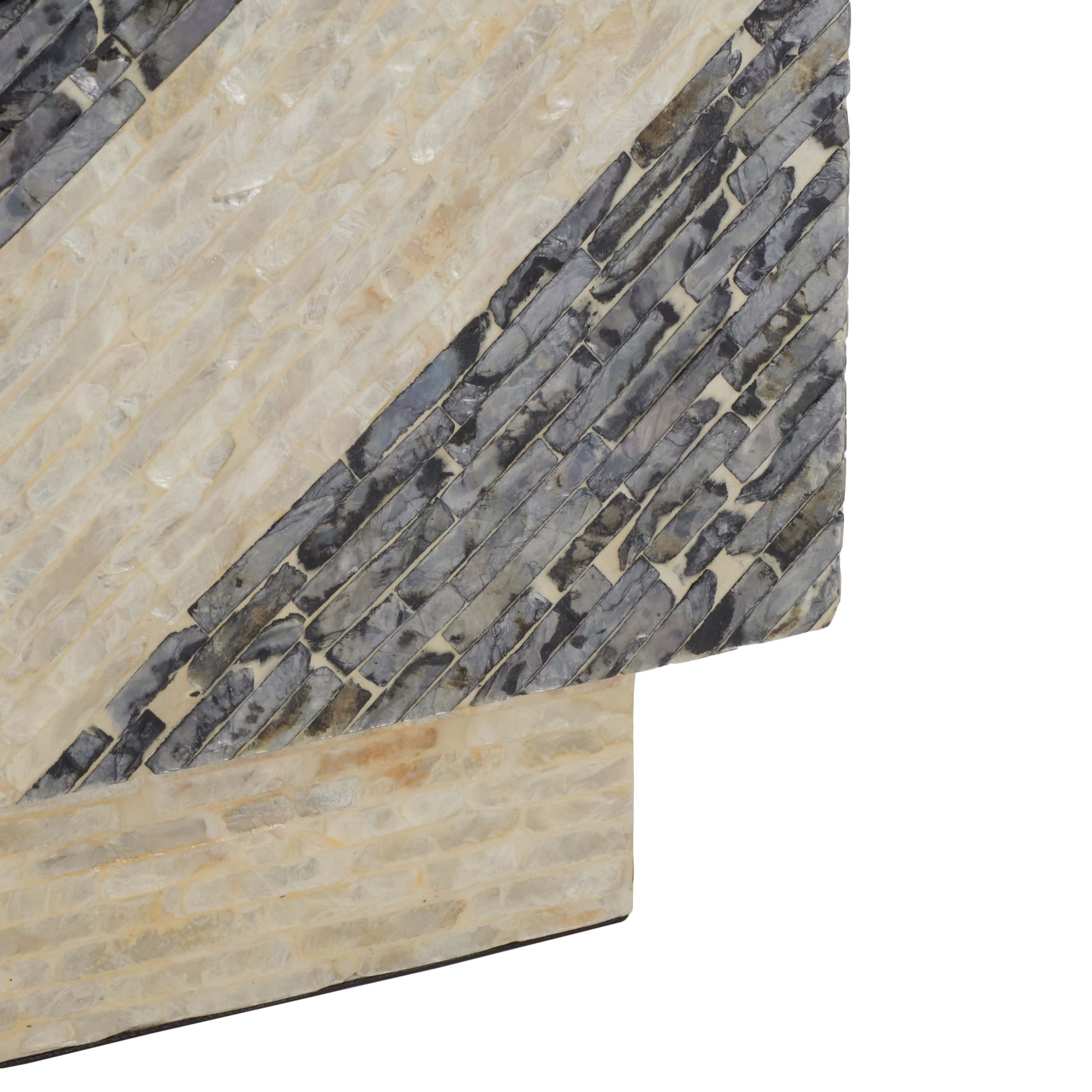 A hypnotic must-have for the elegant artistic interior, this Blythe Stool is absolutely breathtaking. Blythe boasts lavish tonal depth in the white and dark grey tones of its subtly shimmering capiz shell inlay, further enhanced by its eye-catching stepped tile pattern within streaming oversized chevrons.